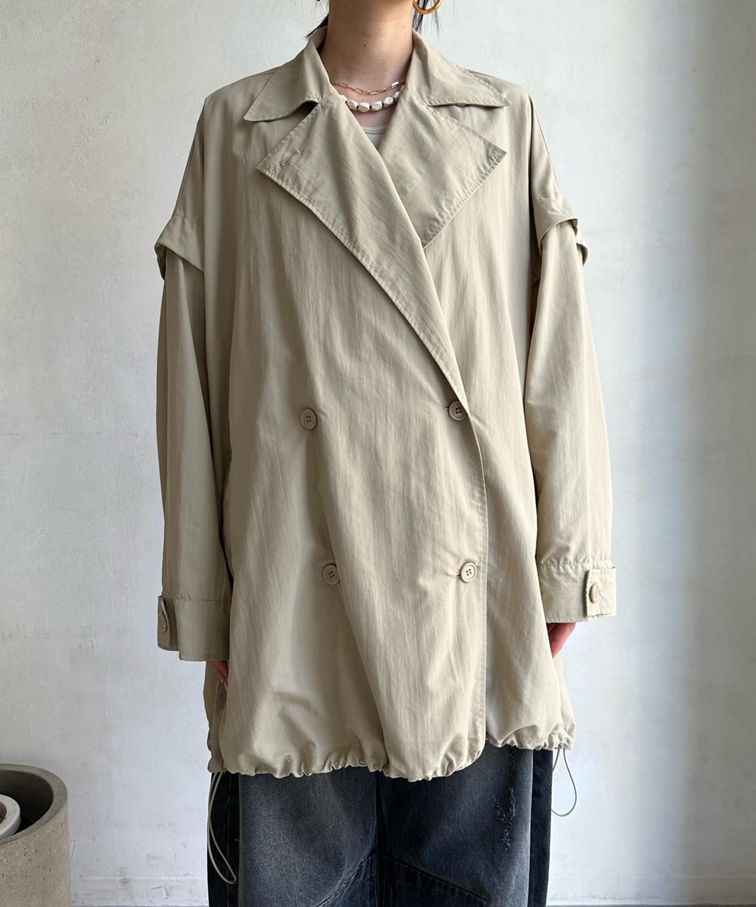 カジュアルなナイロン素材を、大人っぽく見せてくれるダブルテーラードデザインで羽織るだけでお洒落なシルエットに仕上がります。