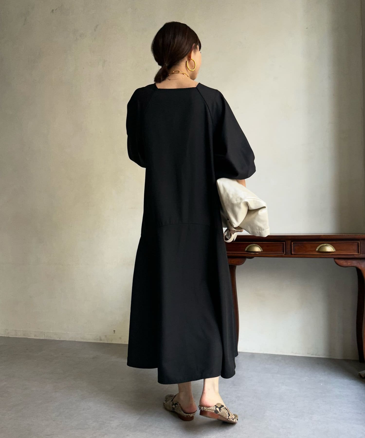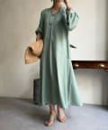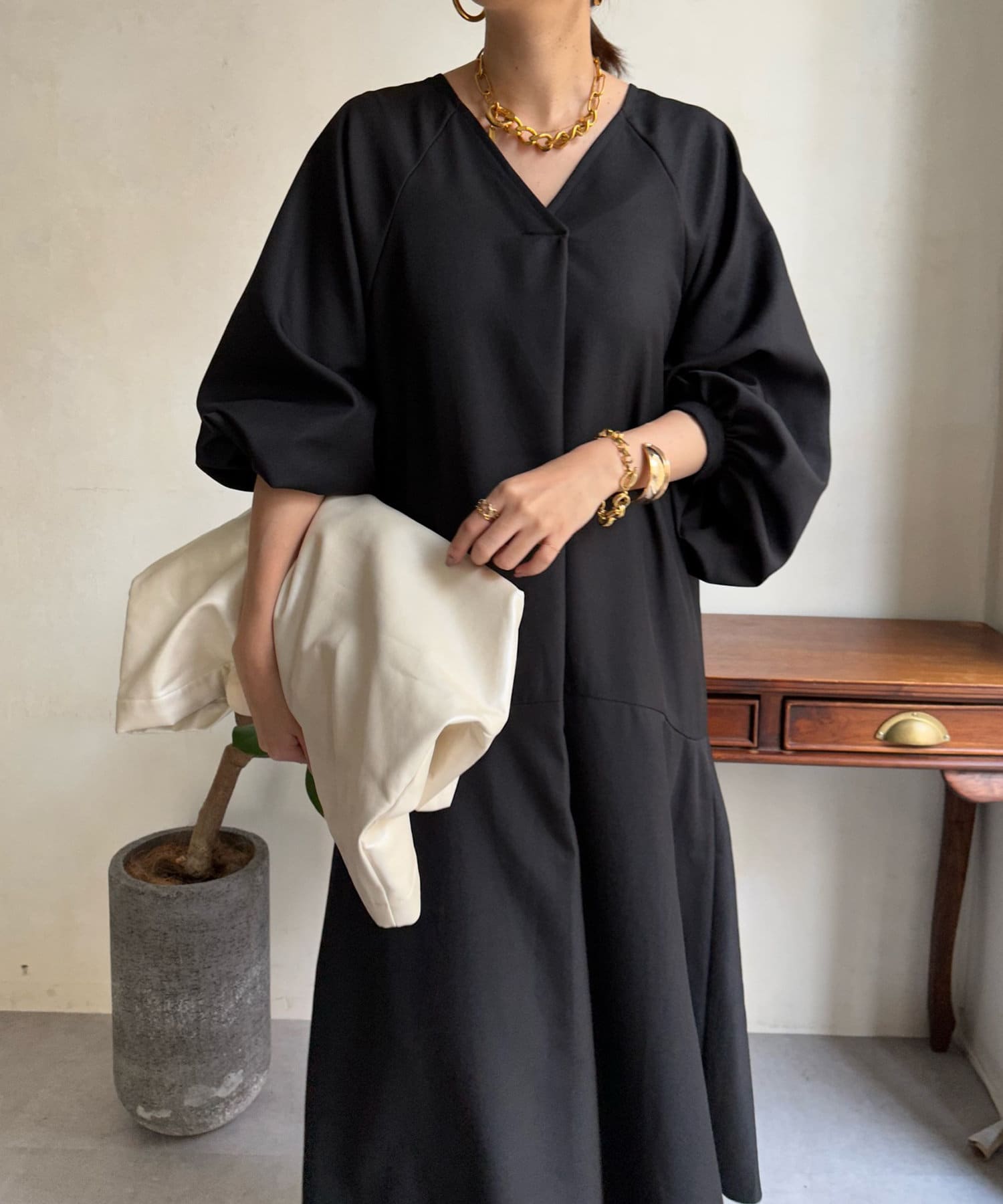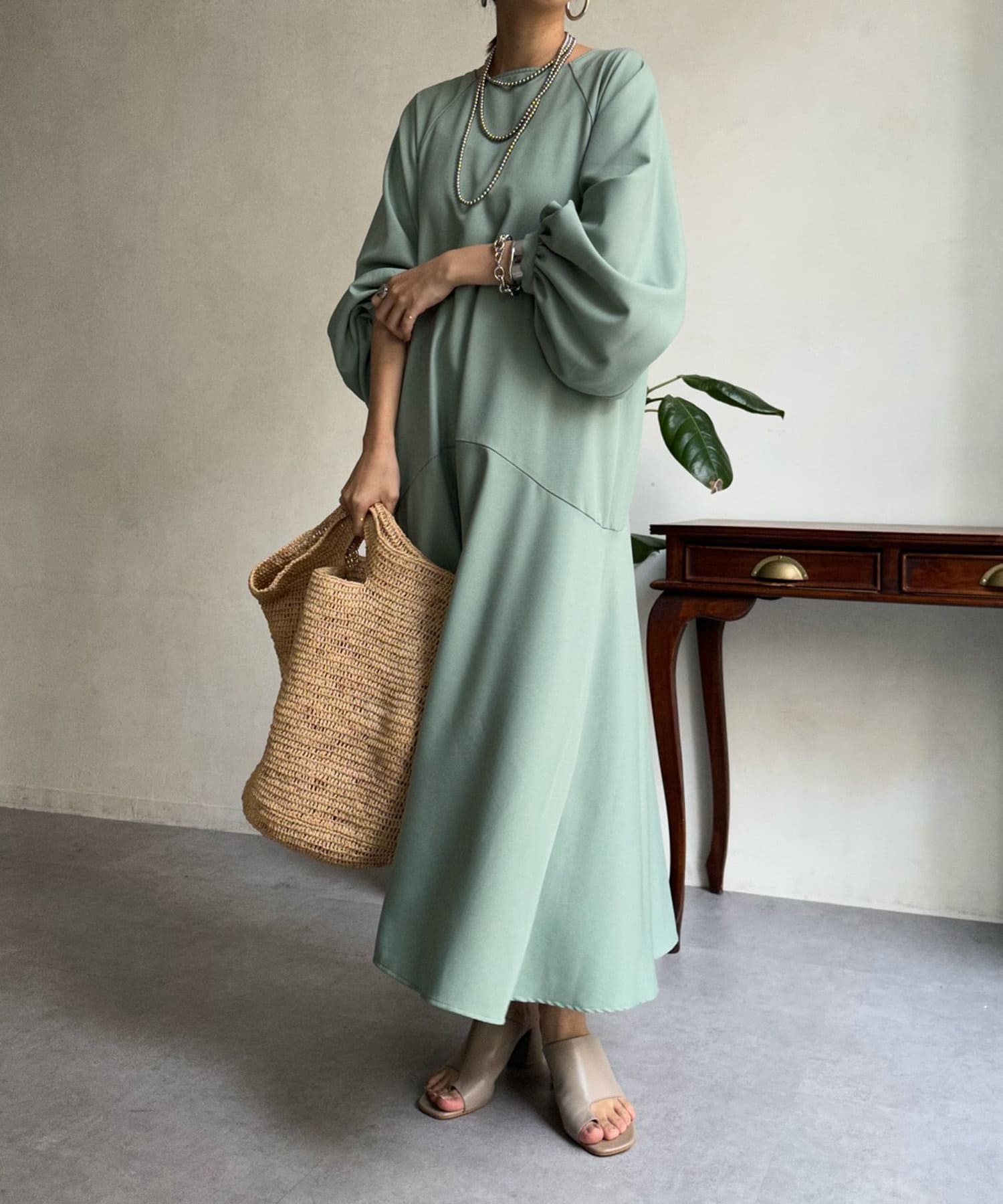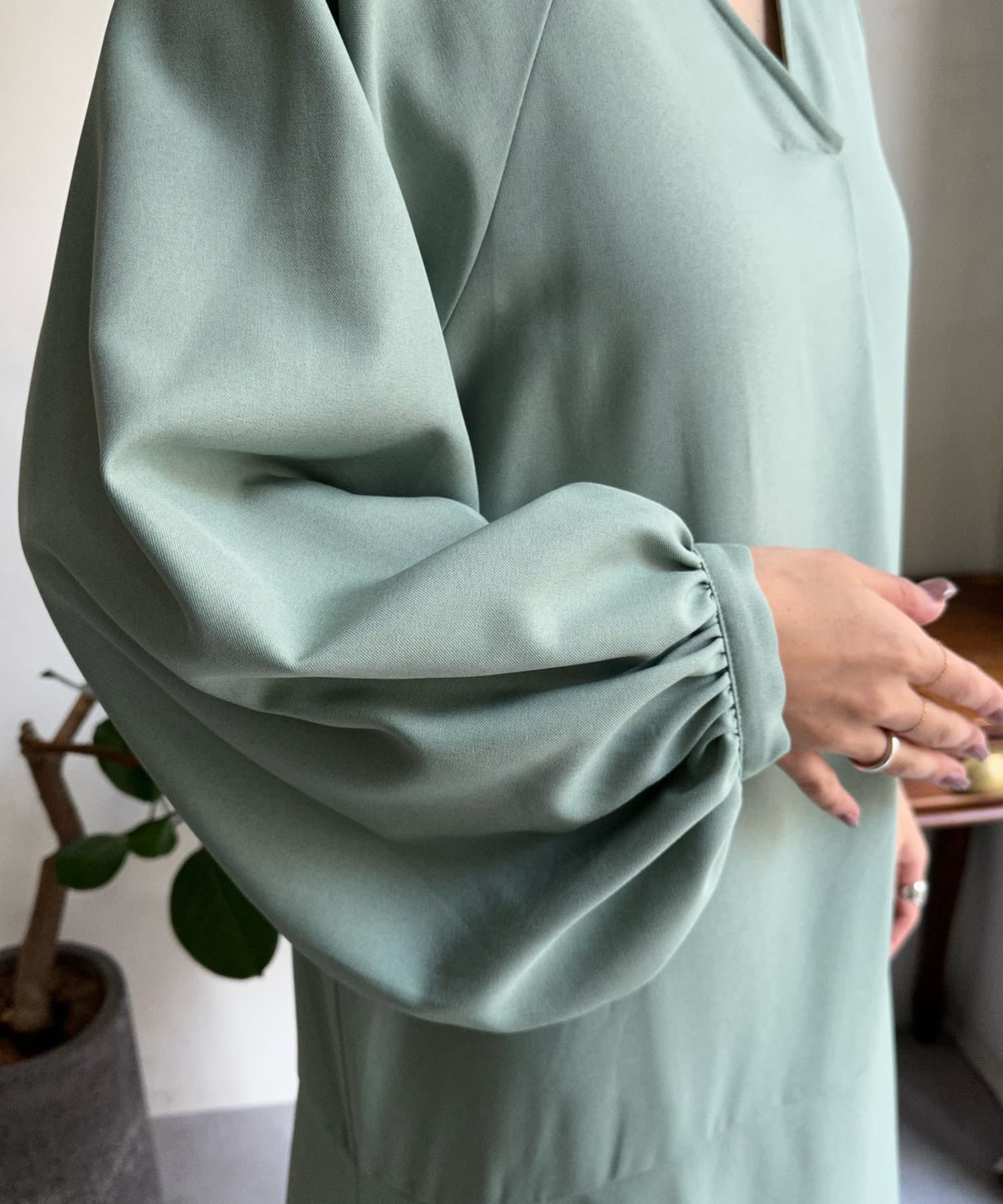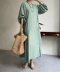 ふんわりと大胆なボリュームスリーブが存在感抜群のワンピース。