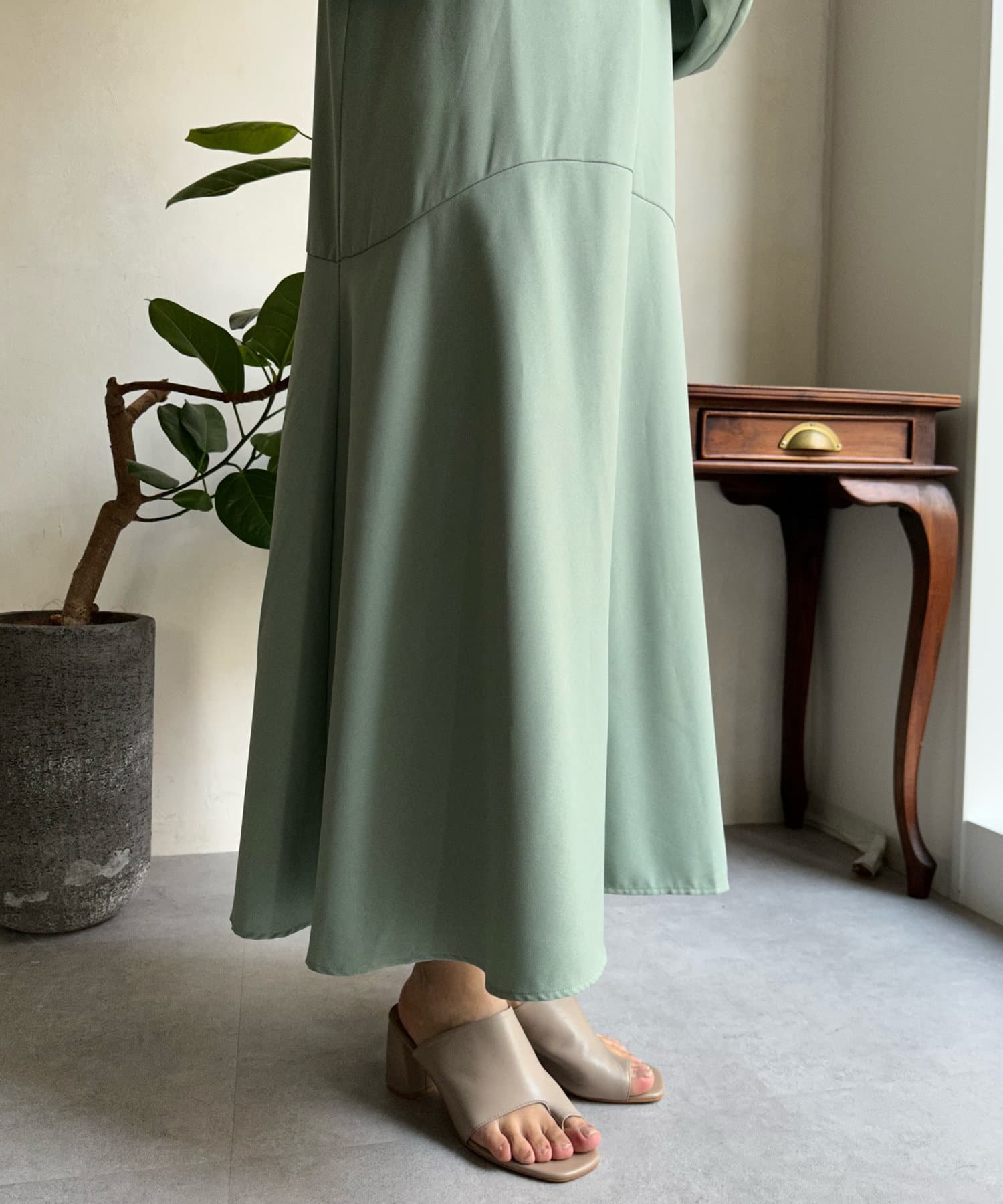 動くたびに揺れる切替の裾フレアシルエットで、着映えすること間違いなしです。