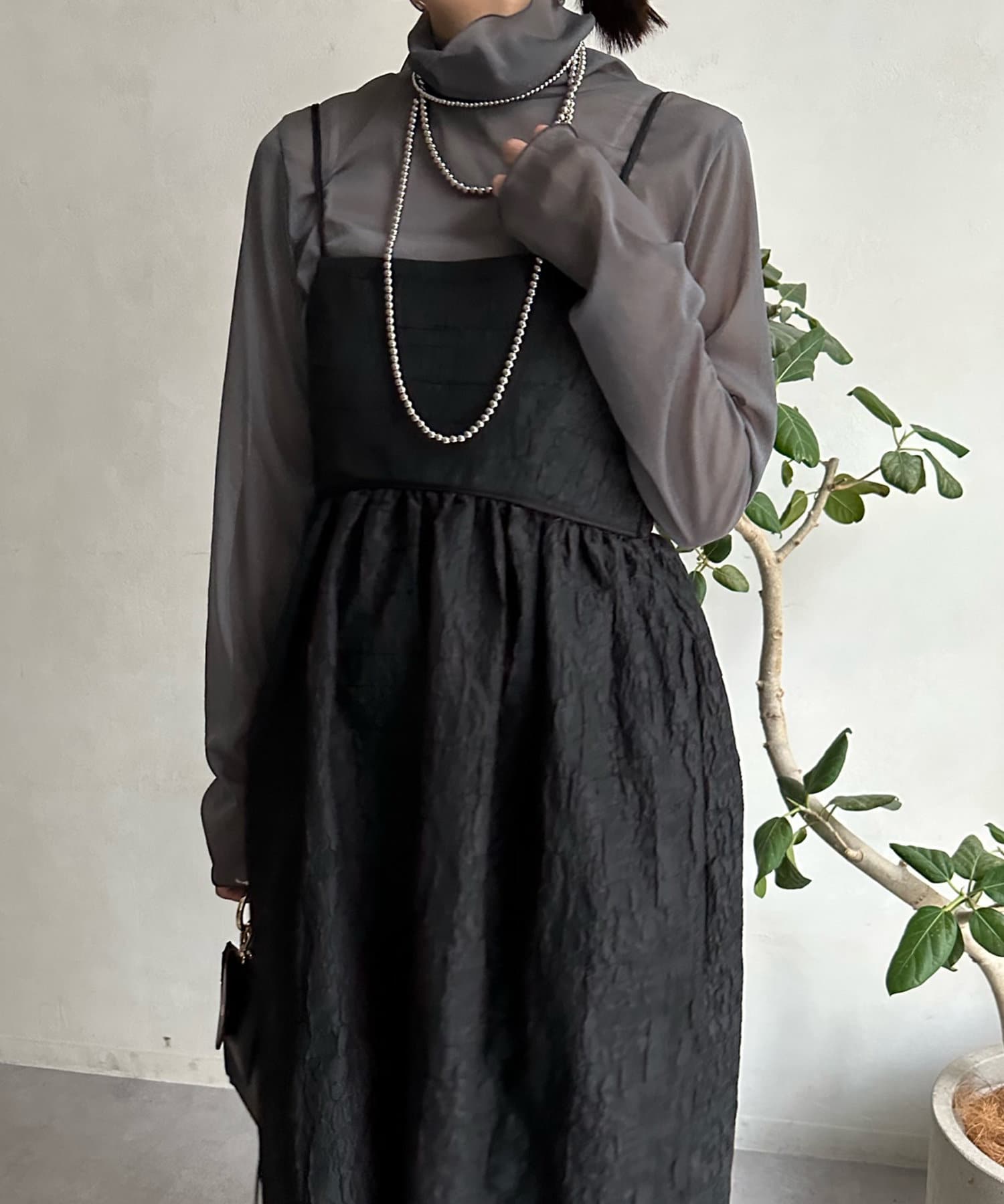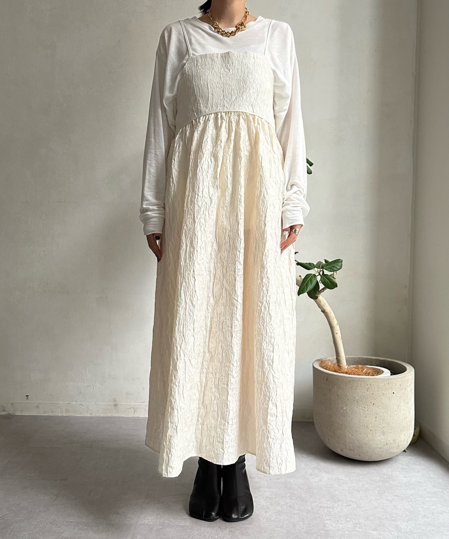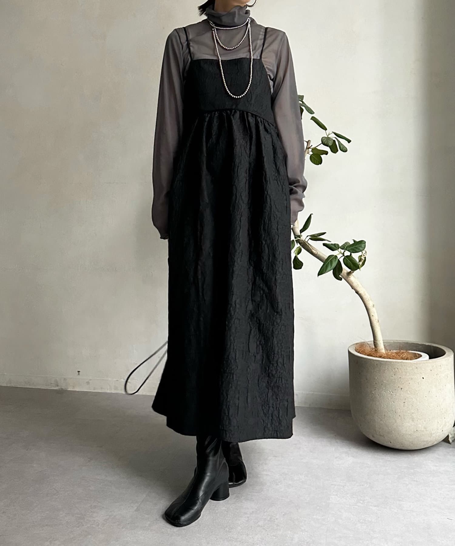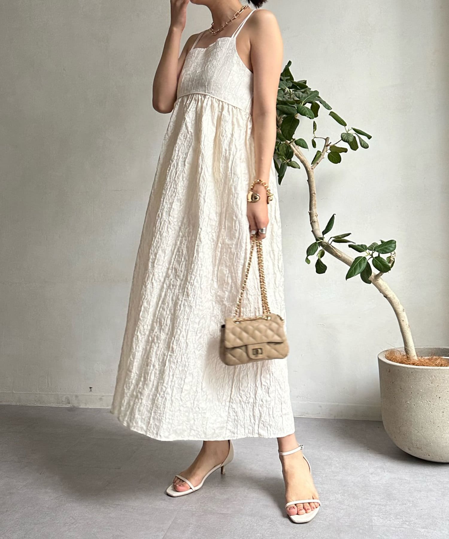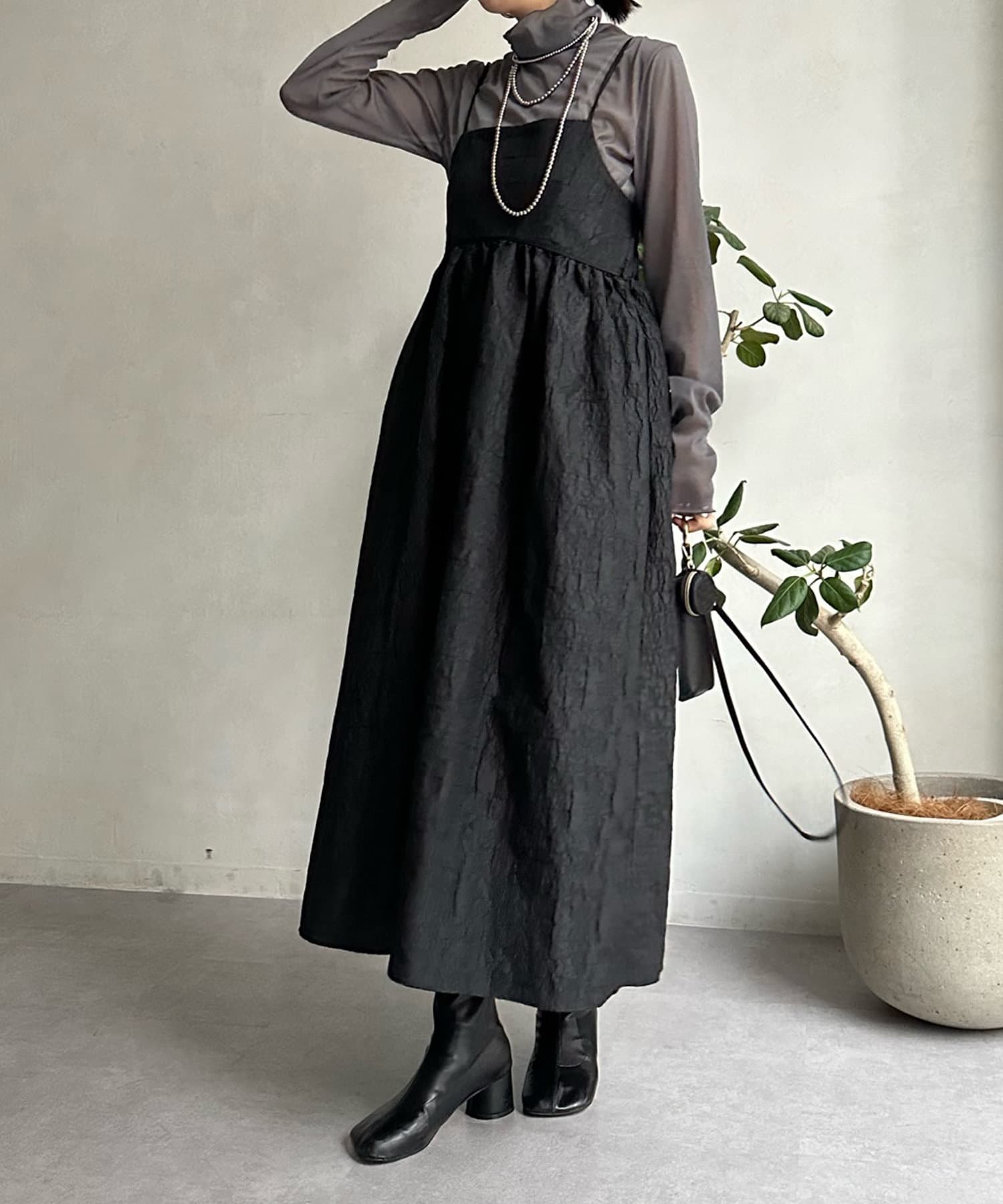 ジャガード織りの素材で品よく仕上がるキャミワンピース。