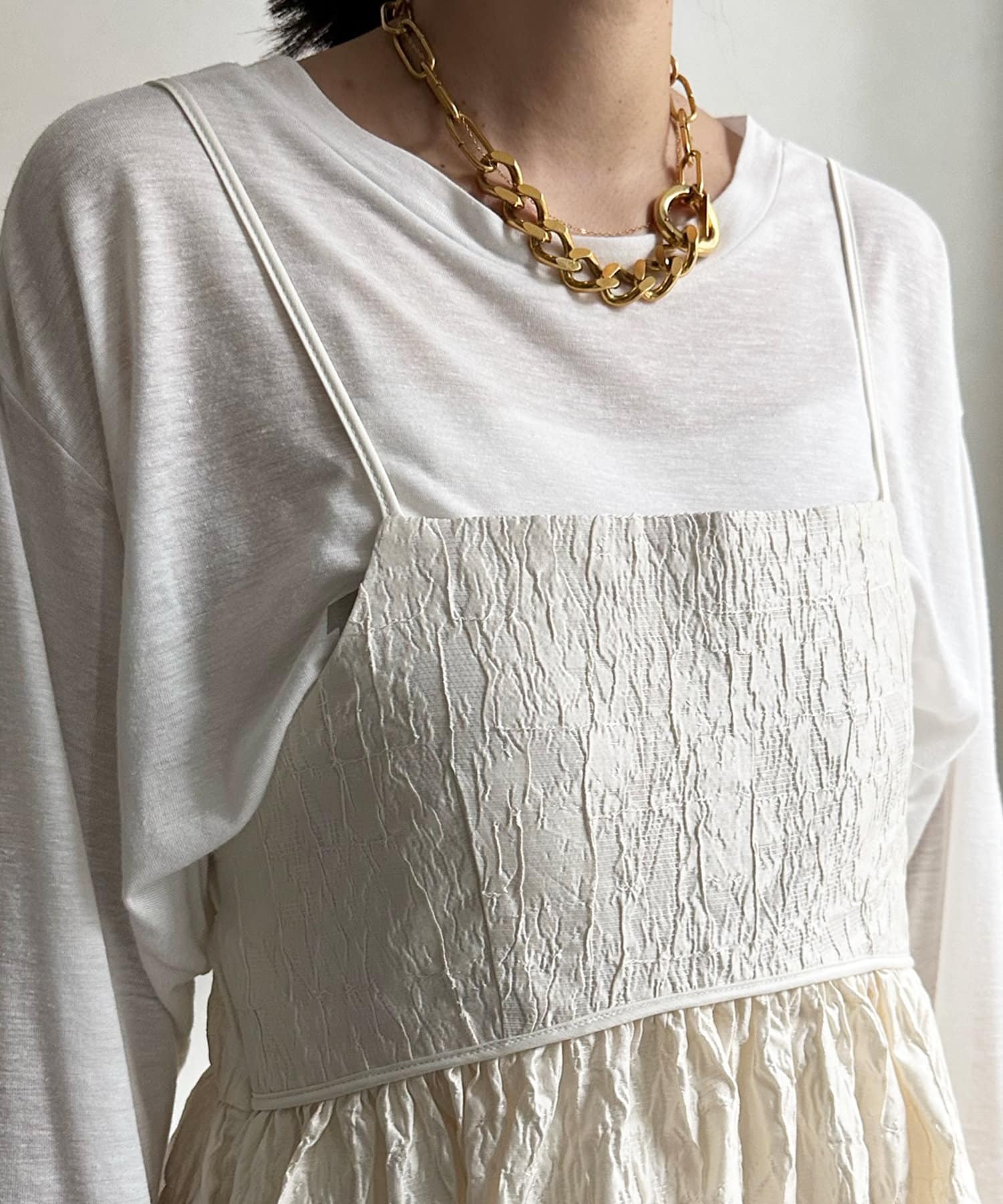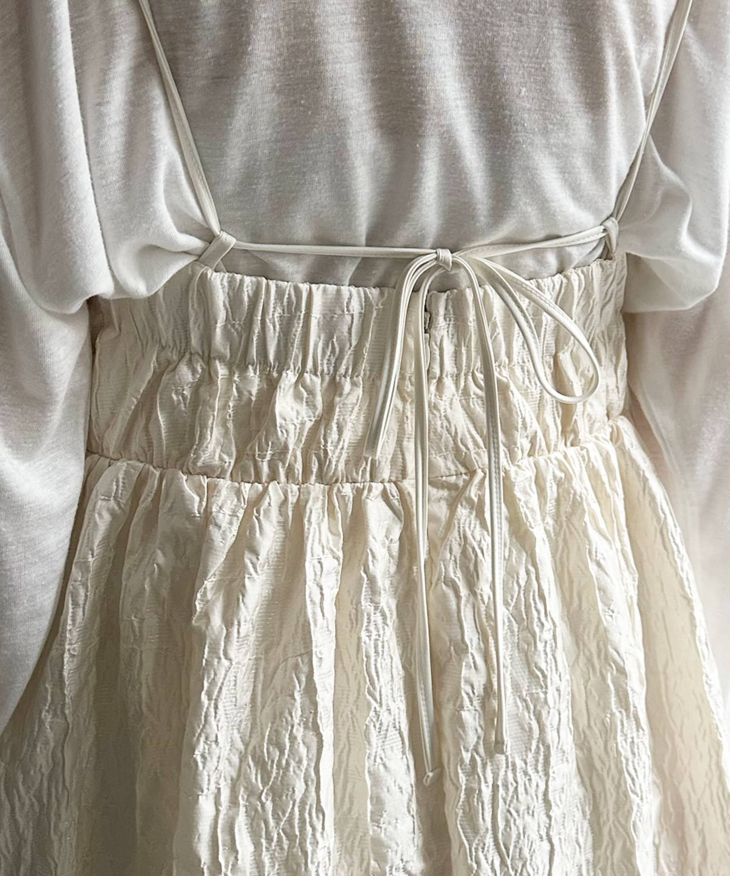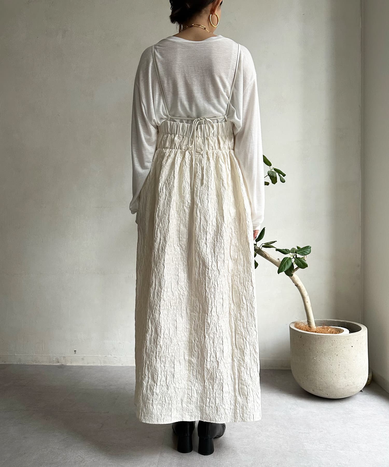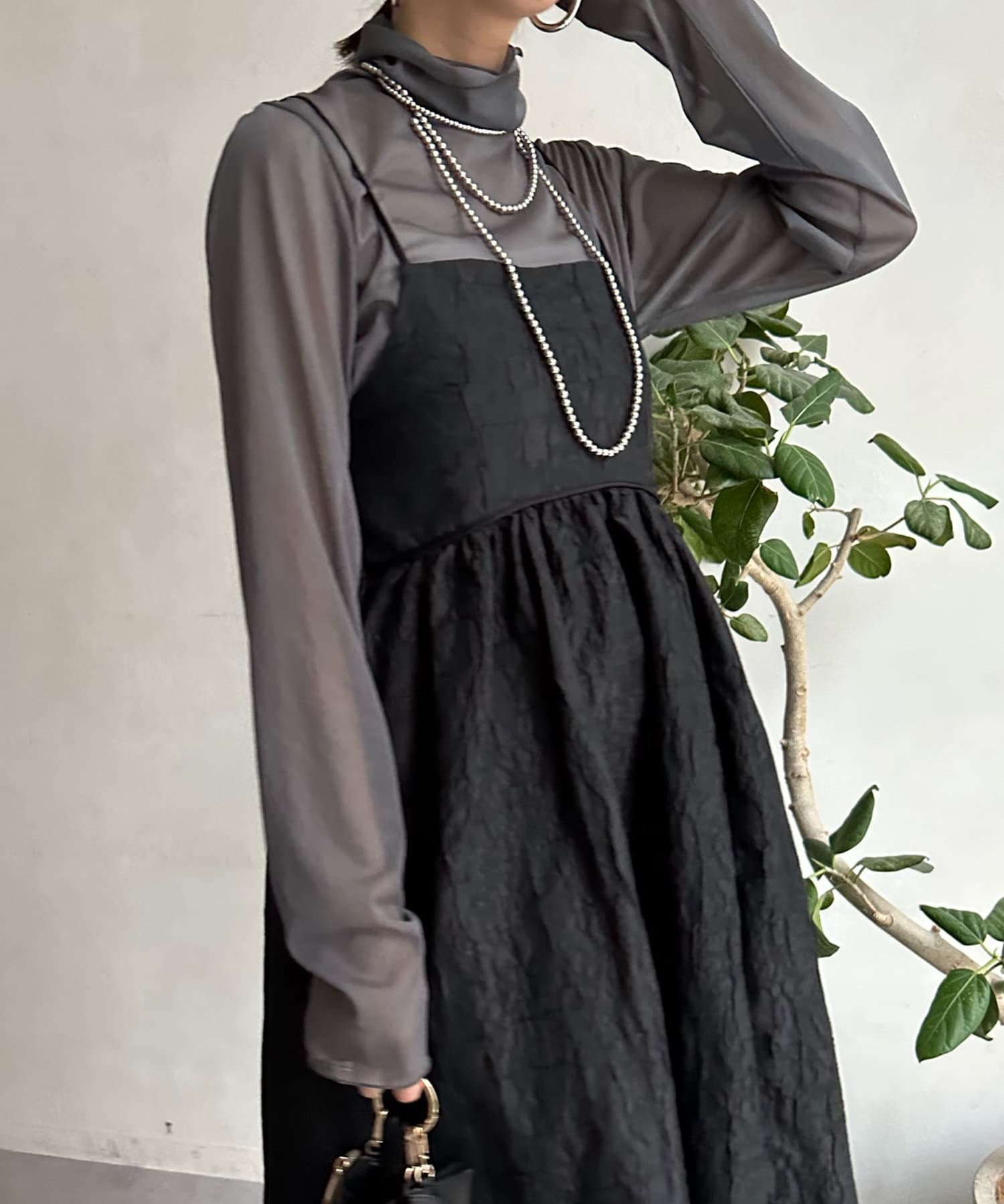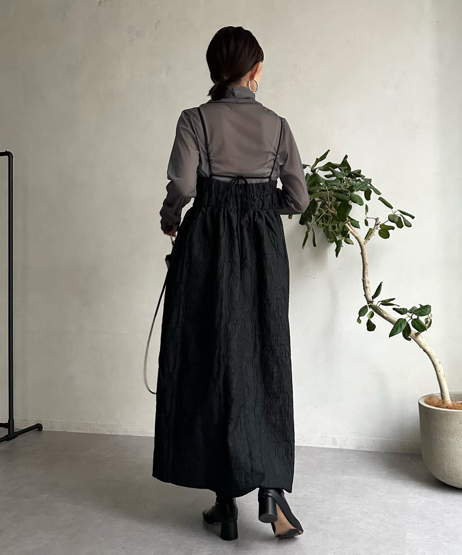 ジャガード織りの素材で品よく仕上がるキャミワンピース。