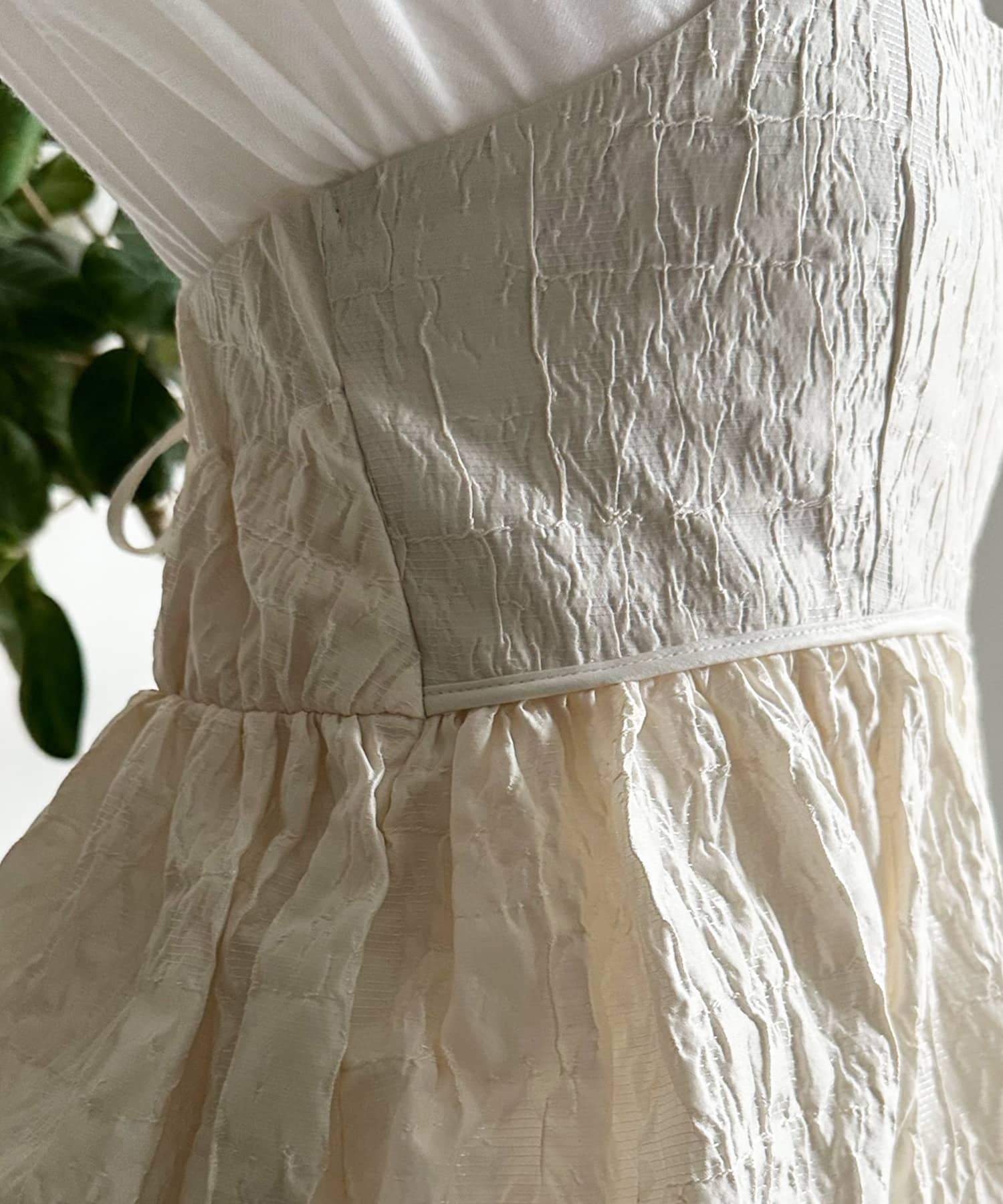 バックのリボンを結ぶデザインは、後ろ姿も抜かりない印象をプラスします。