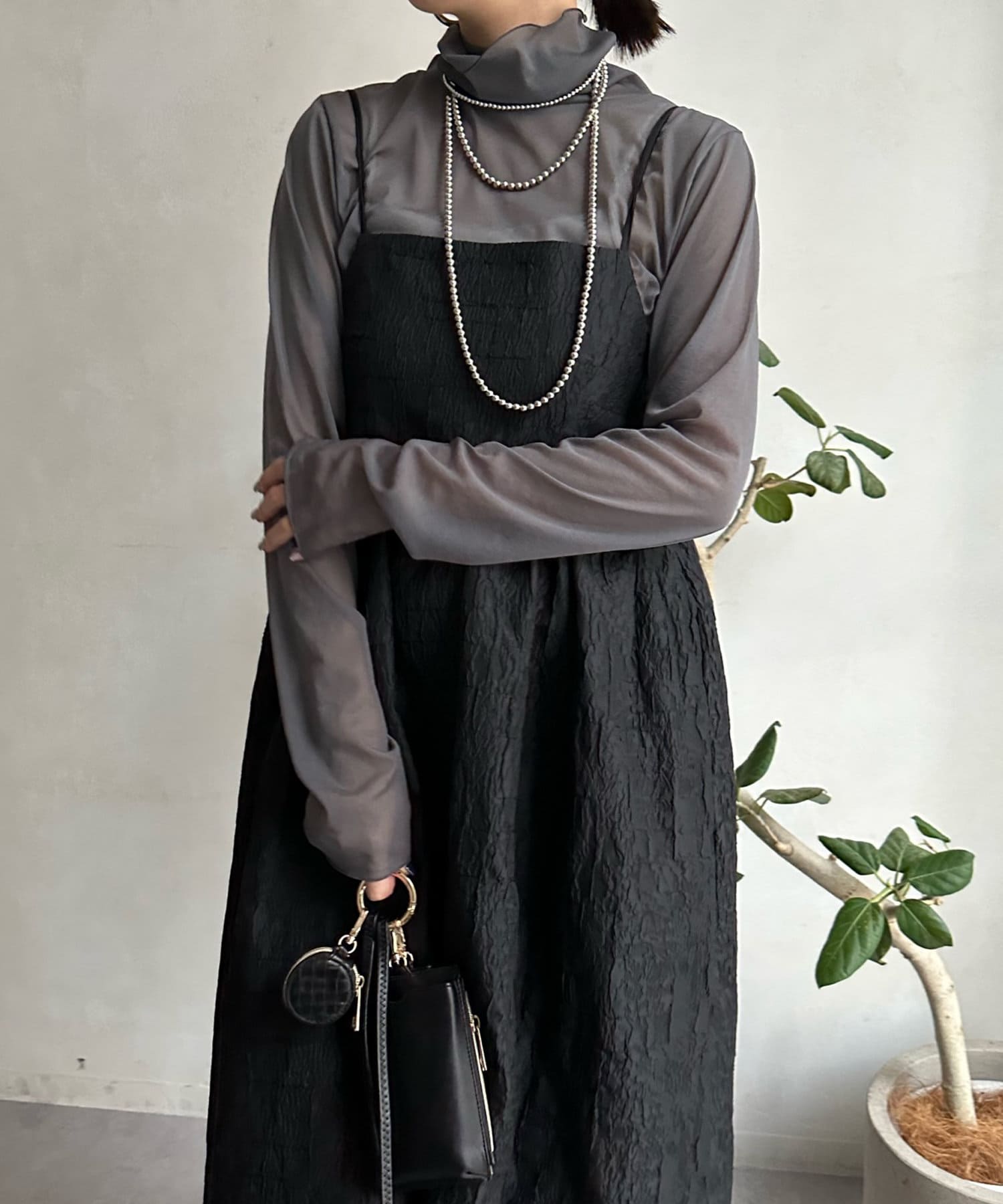 シンプルなトップスとのレイヤードで、サマ見えしてくれるのでコーディネートも楽々。また、華やかなシーンでも活躍してくれるので幅広いシーンでの活躍に期待大!