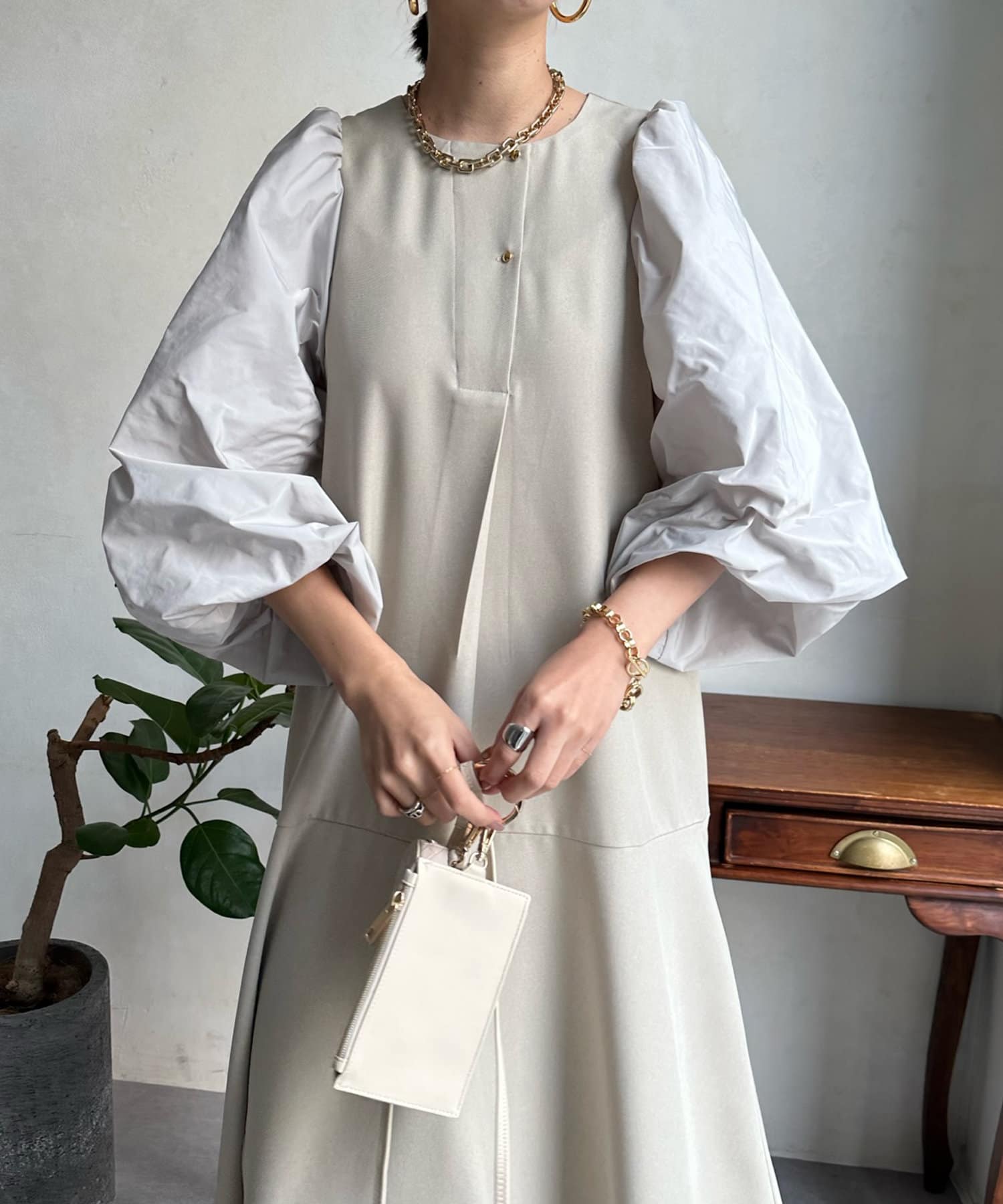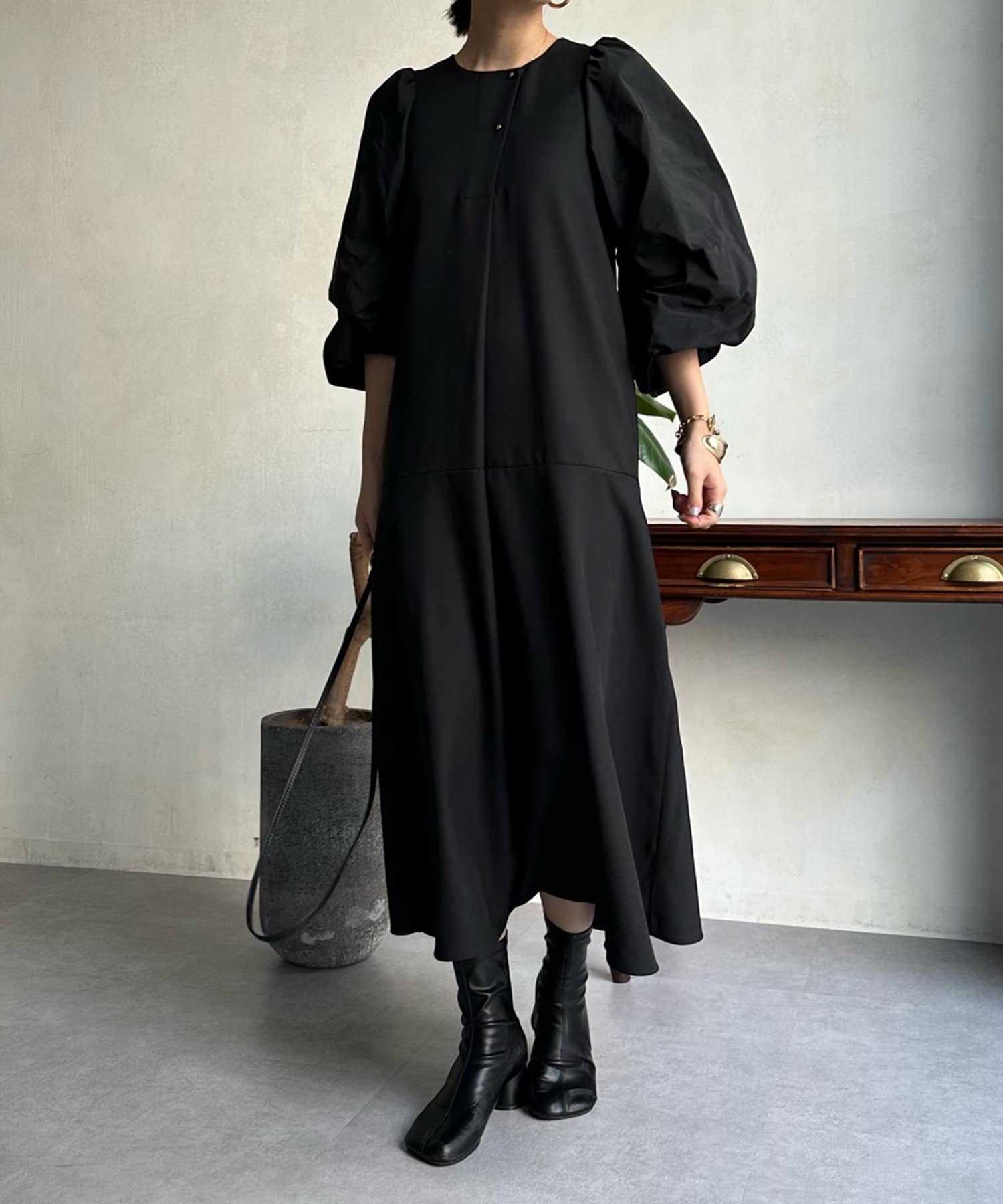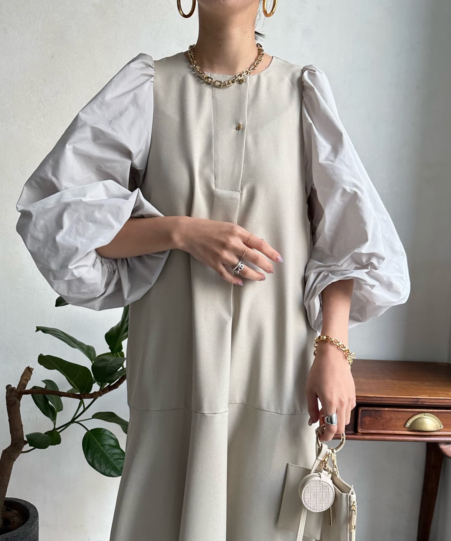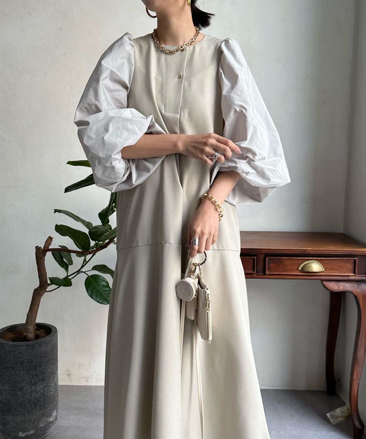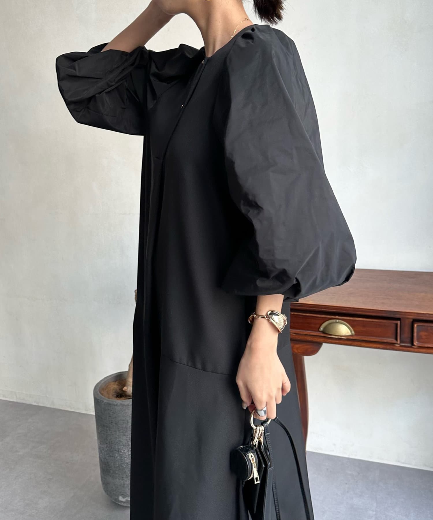 異素材ボリューム袖が印象的なマーメイドワンピース!