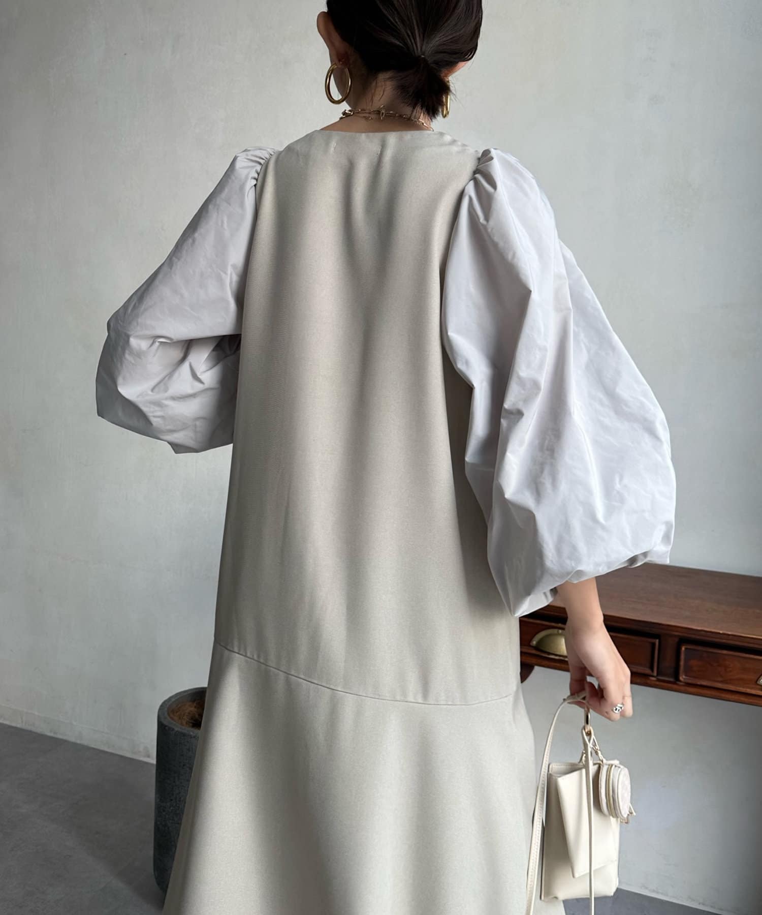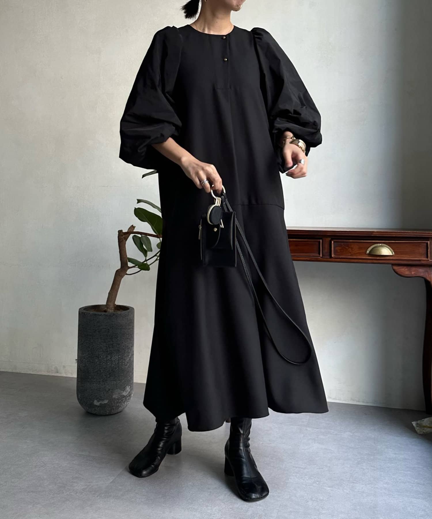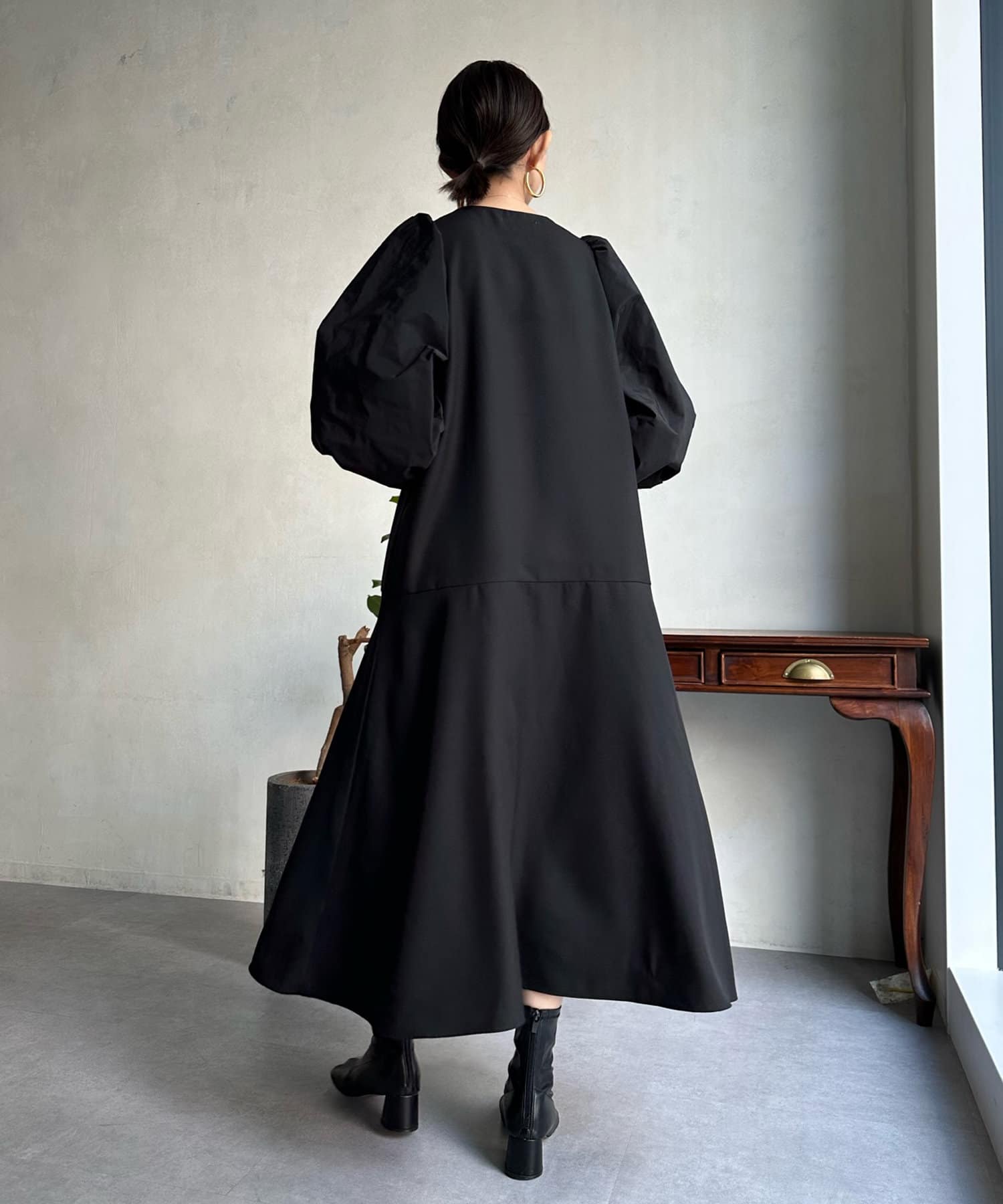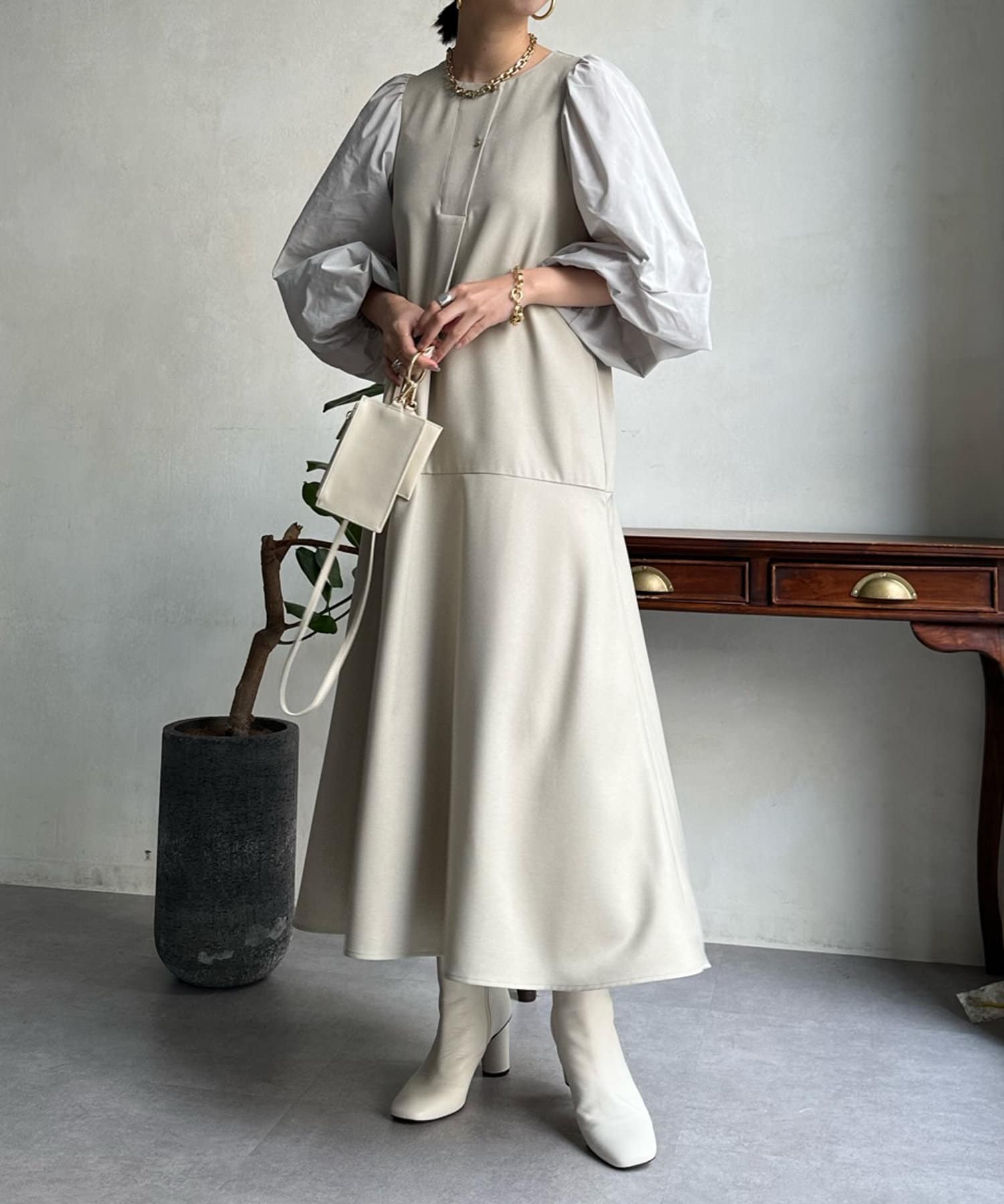 異素材ボリューム袖が印象的なマーメイドワンピース!