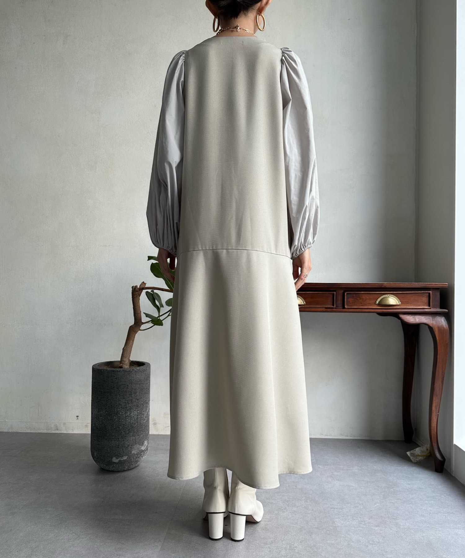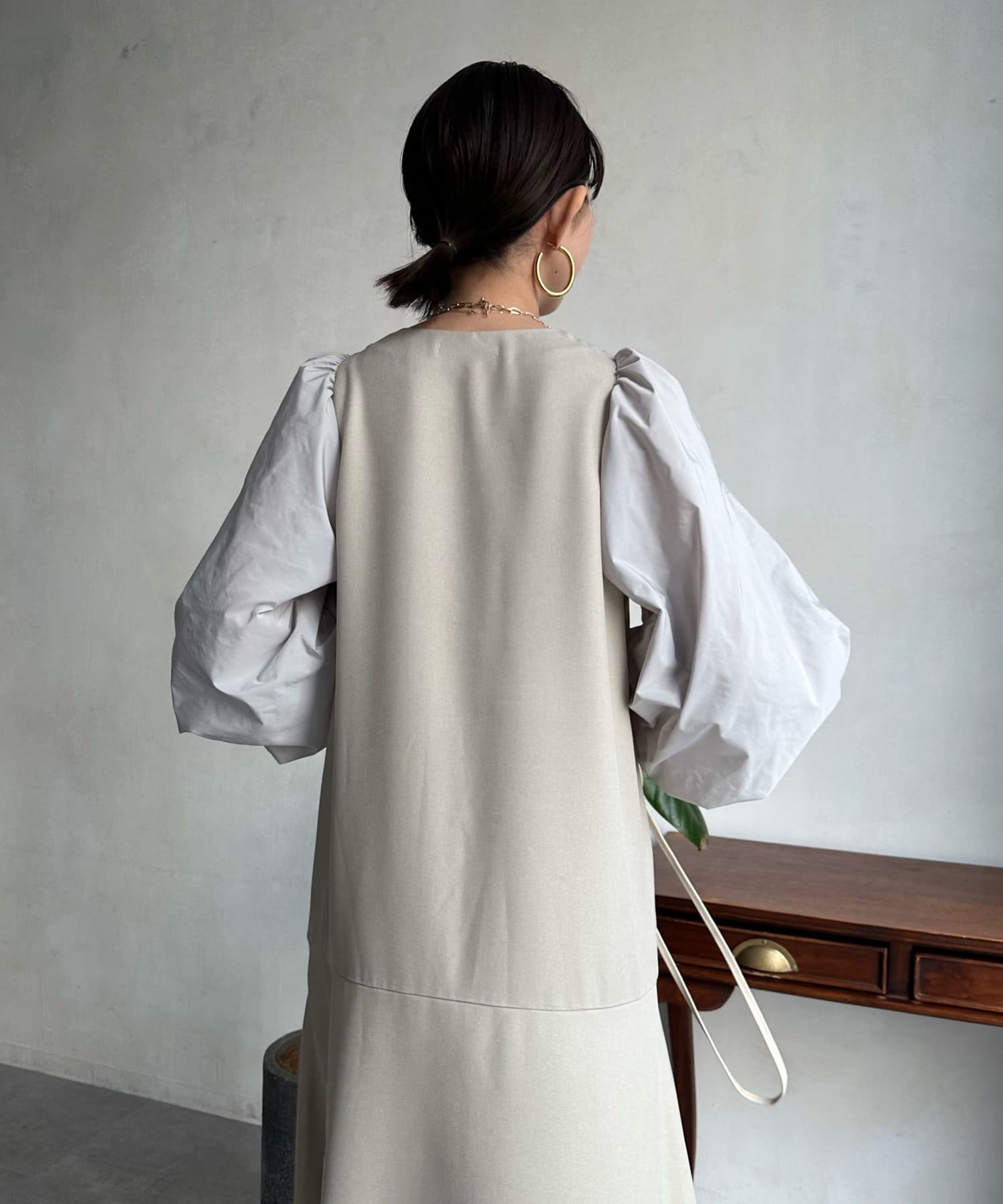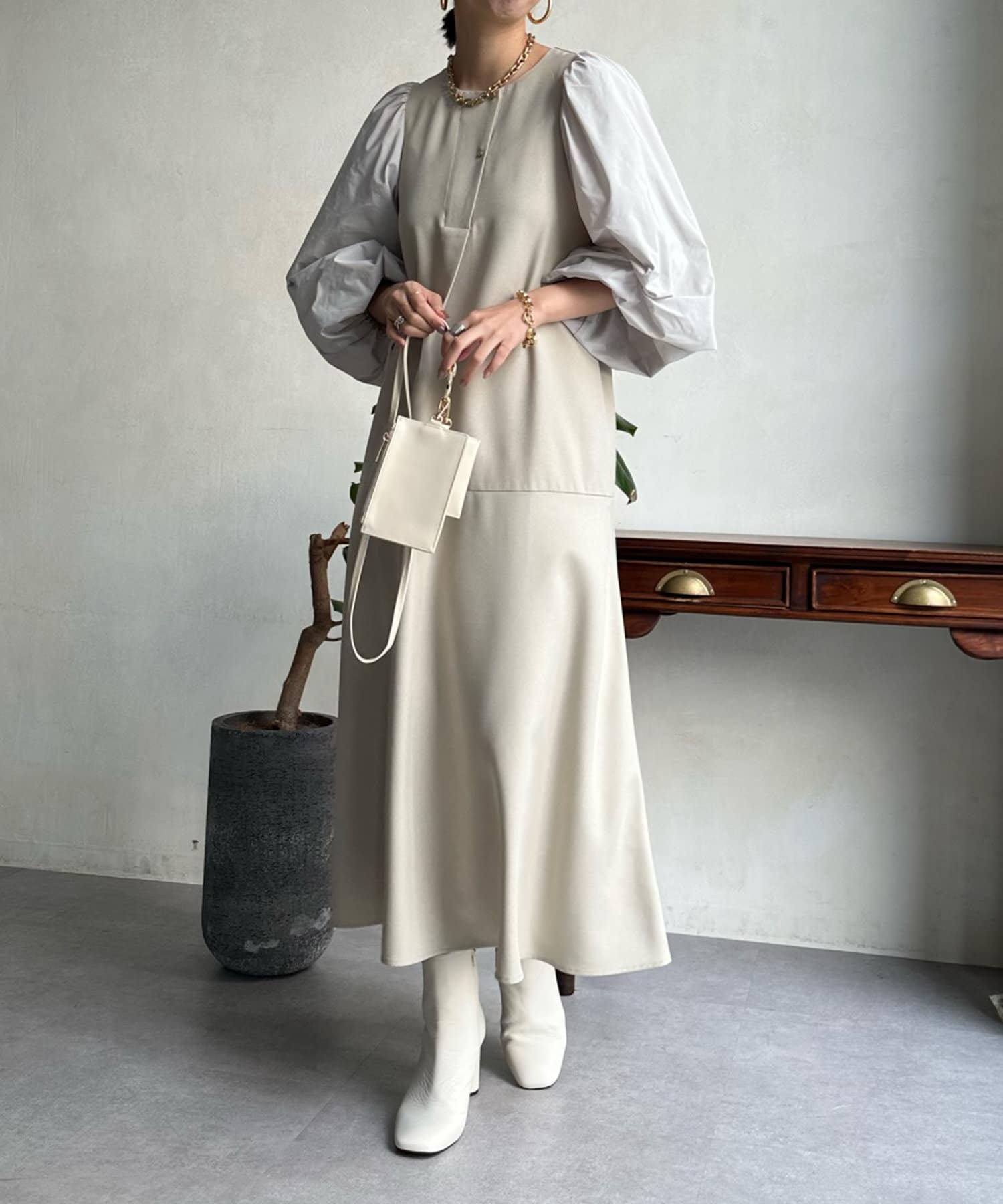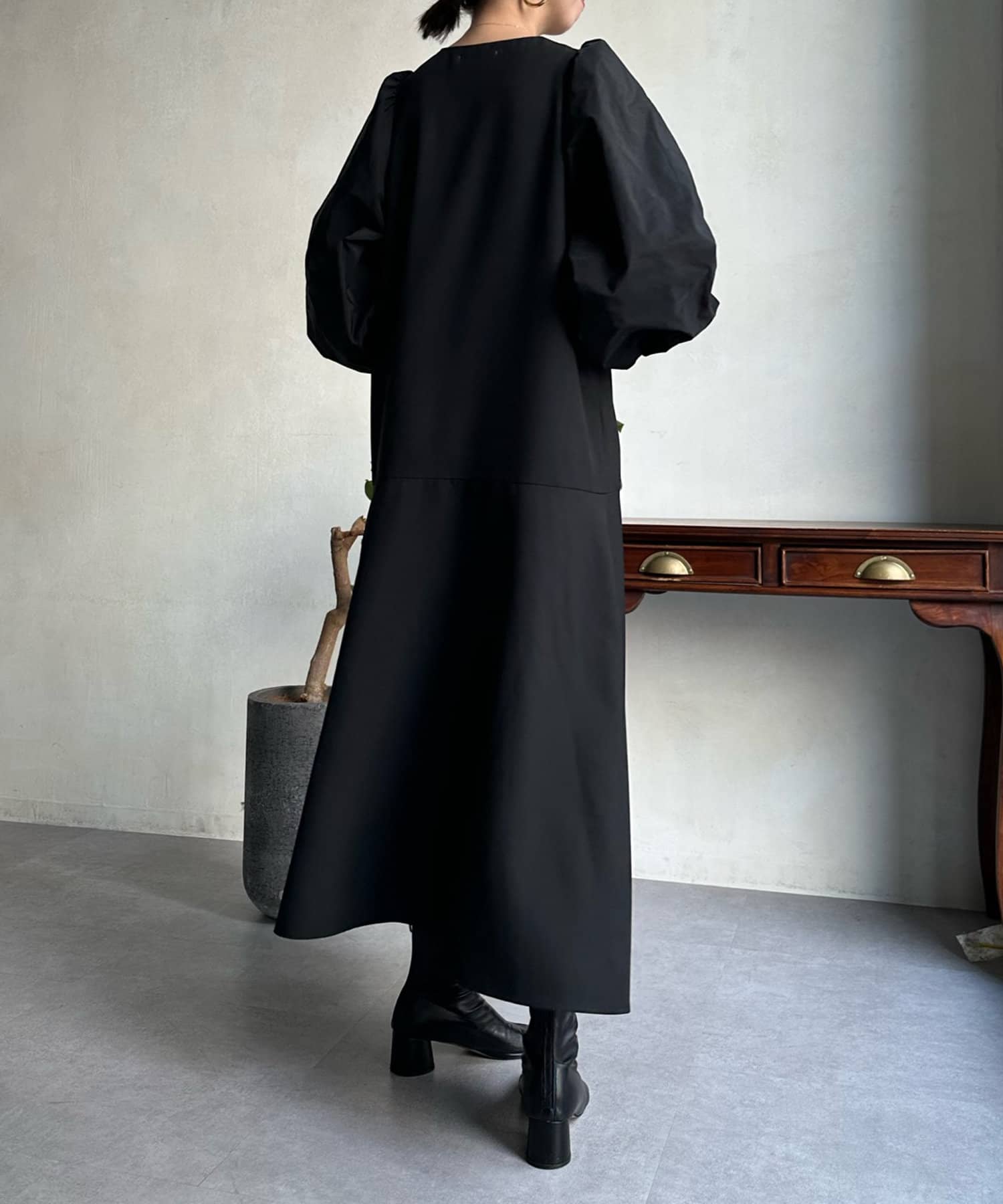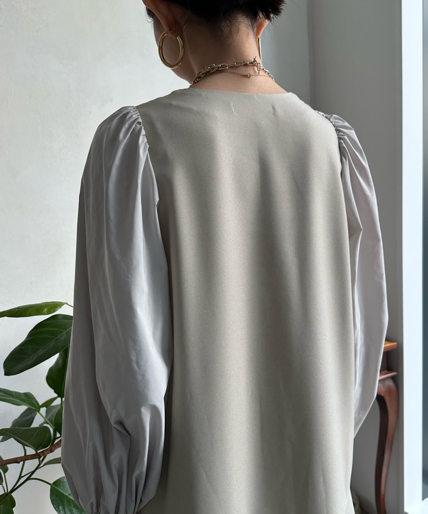 異素材ボリューム袖が印象的なマーメイドワンピース!