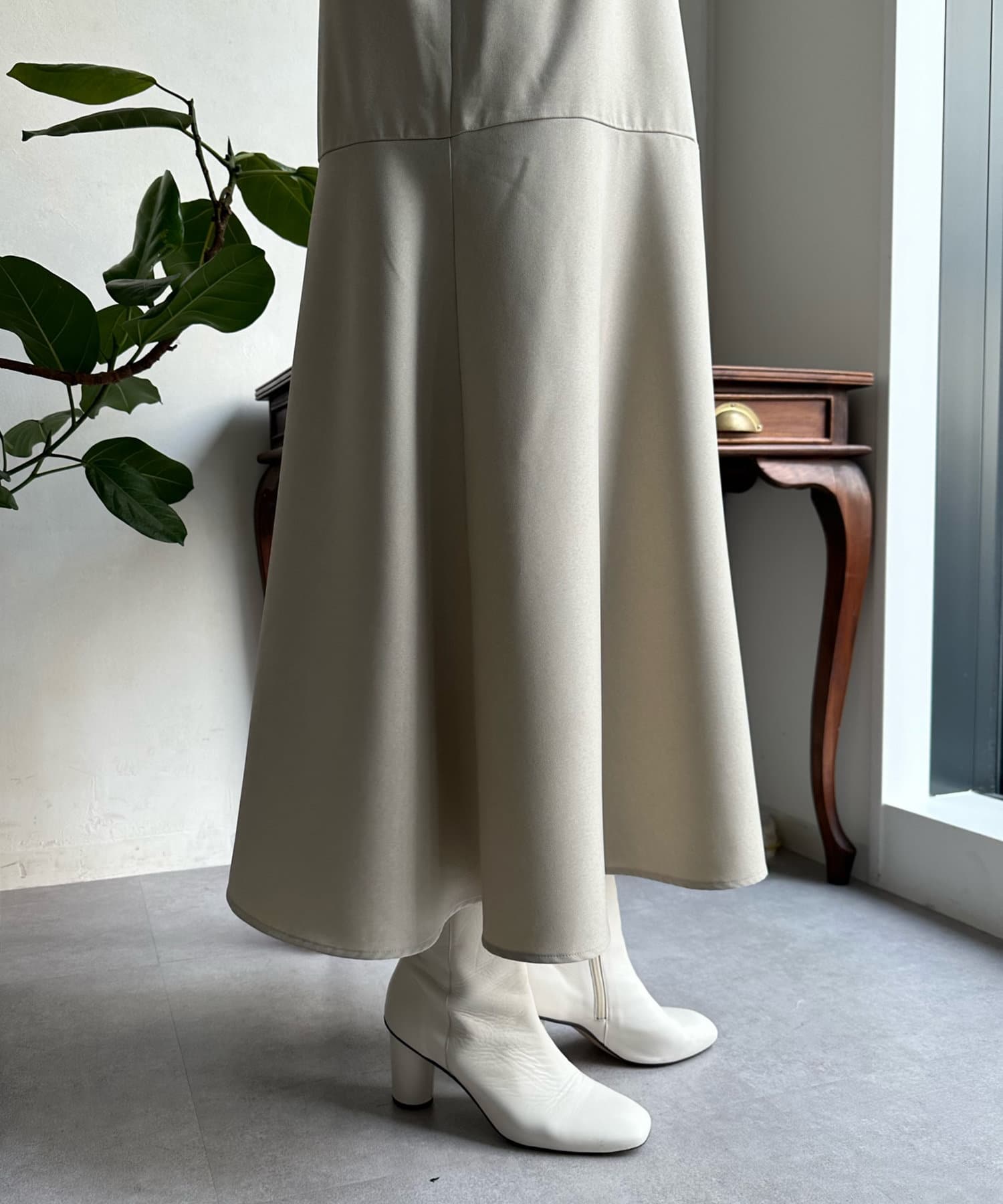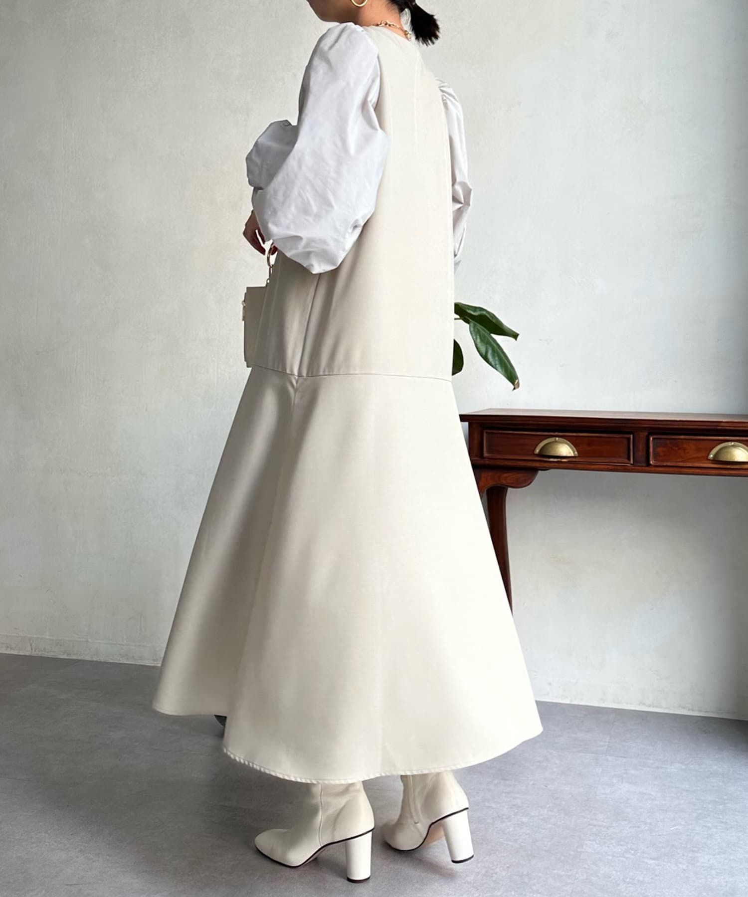 腰回りは程よくフィットし、裾に向かって緩やかに広がるシルエットが女性らしい1枚です。