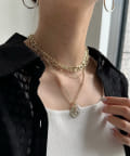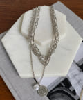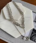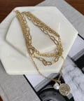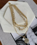 じゃらっと重ね付けしたような、太さの違うチェーンが重なったデザインのネックレス。