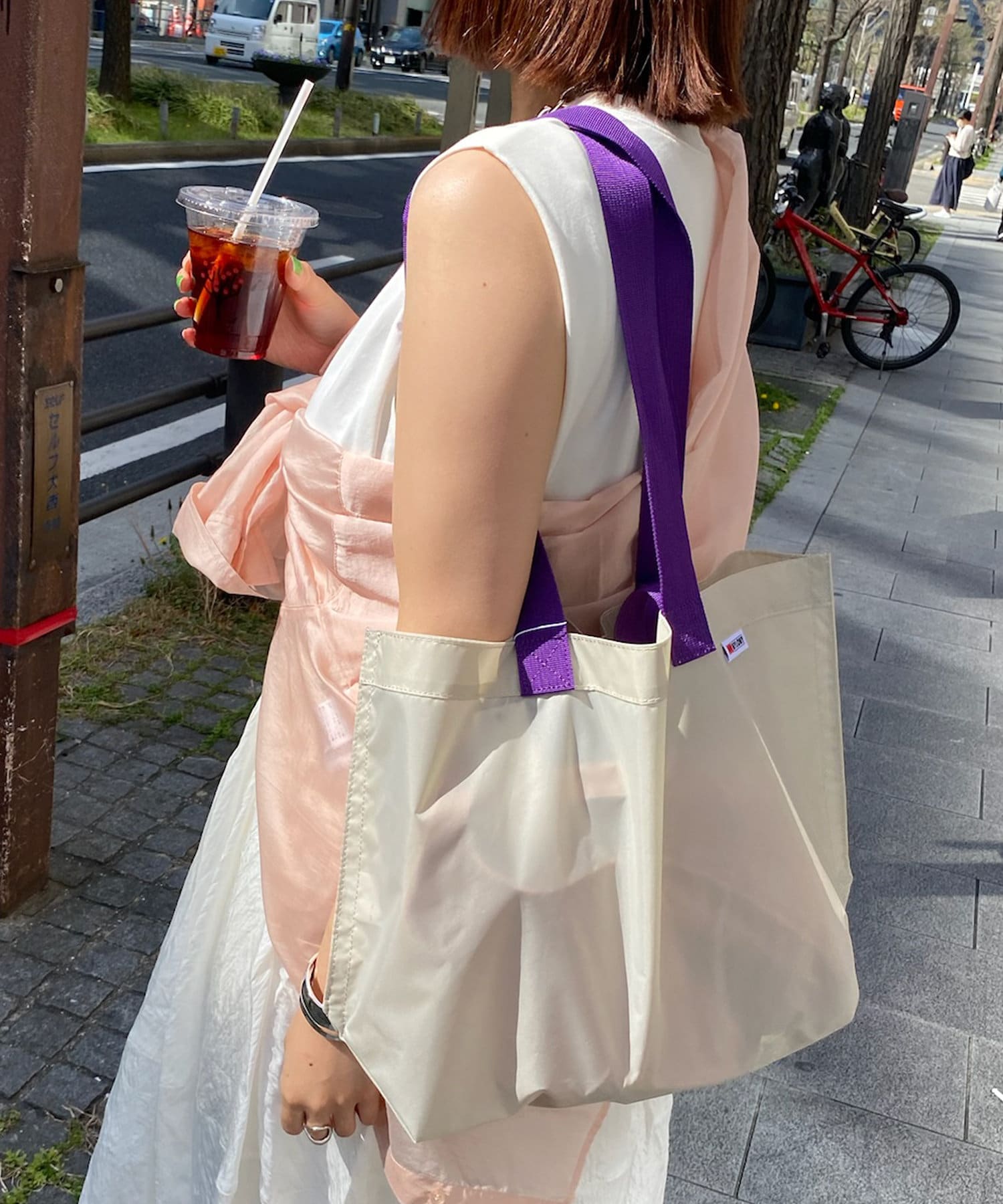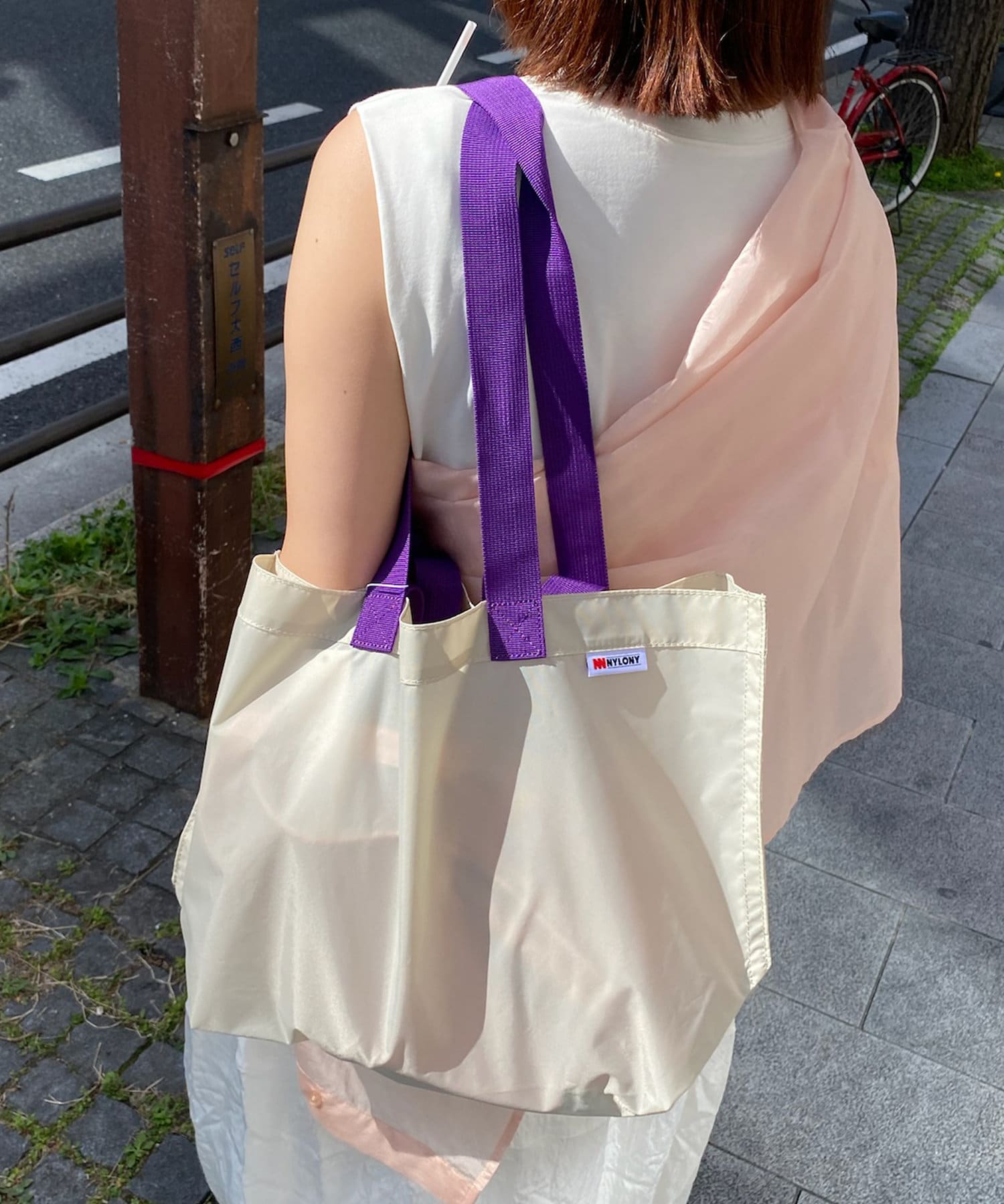 肩掛けでも手持ちスタイルでもお使い頂け、幅広いシーンでお使い頂けるナイロントート。