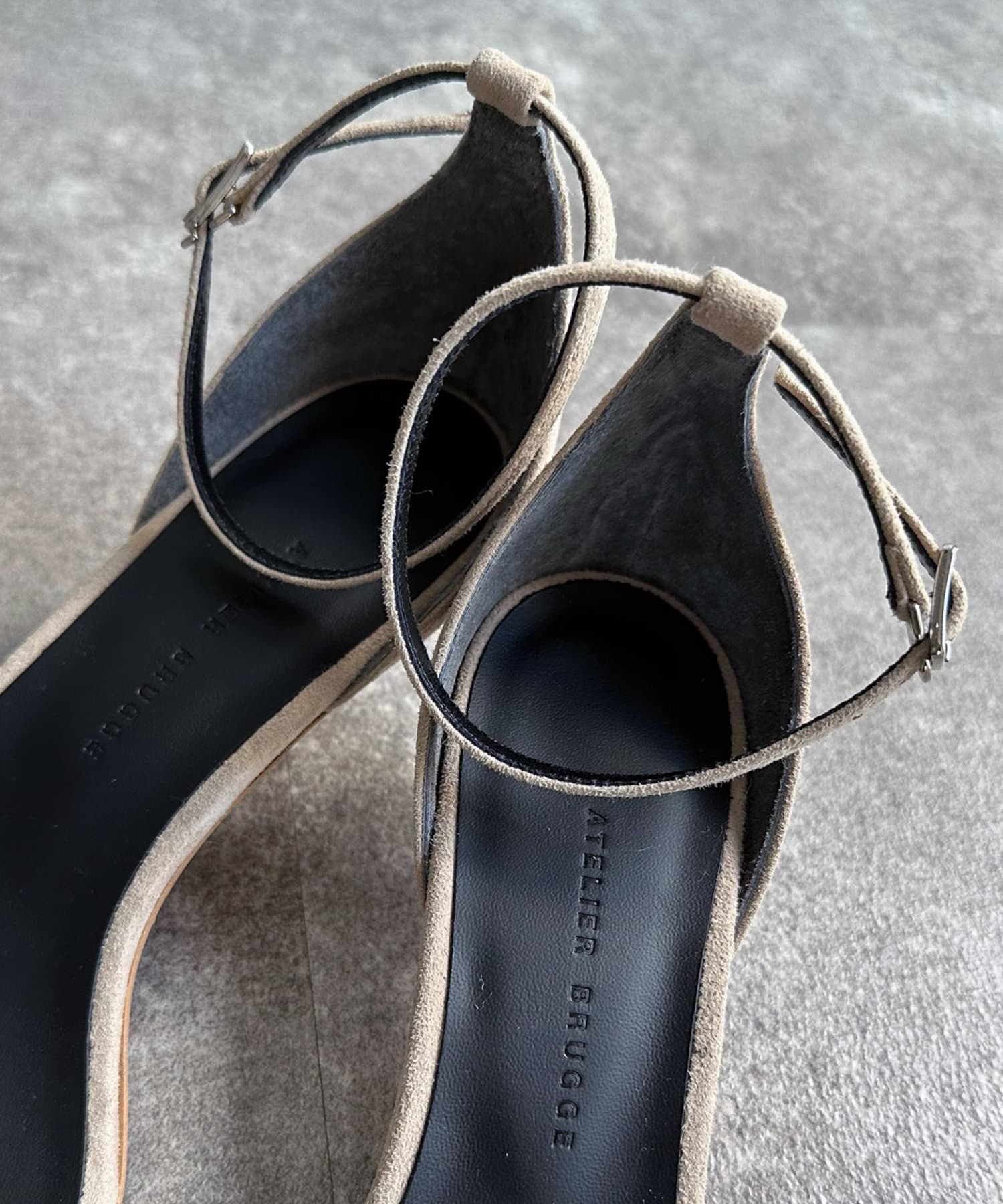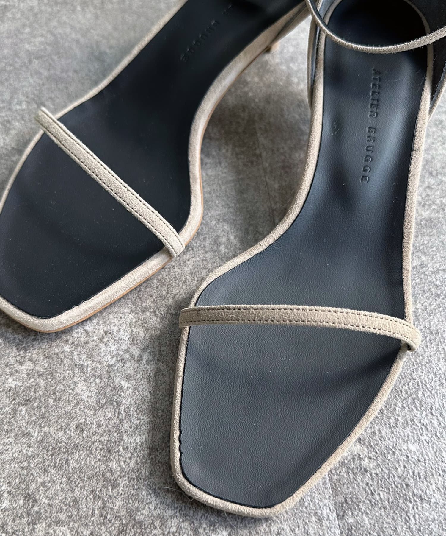 つま先まである中敷きが特徴的なナローストラップサンダル。