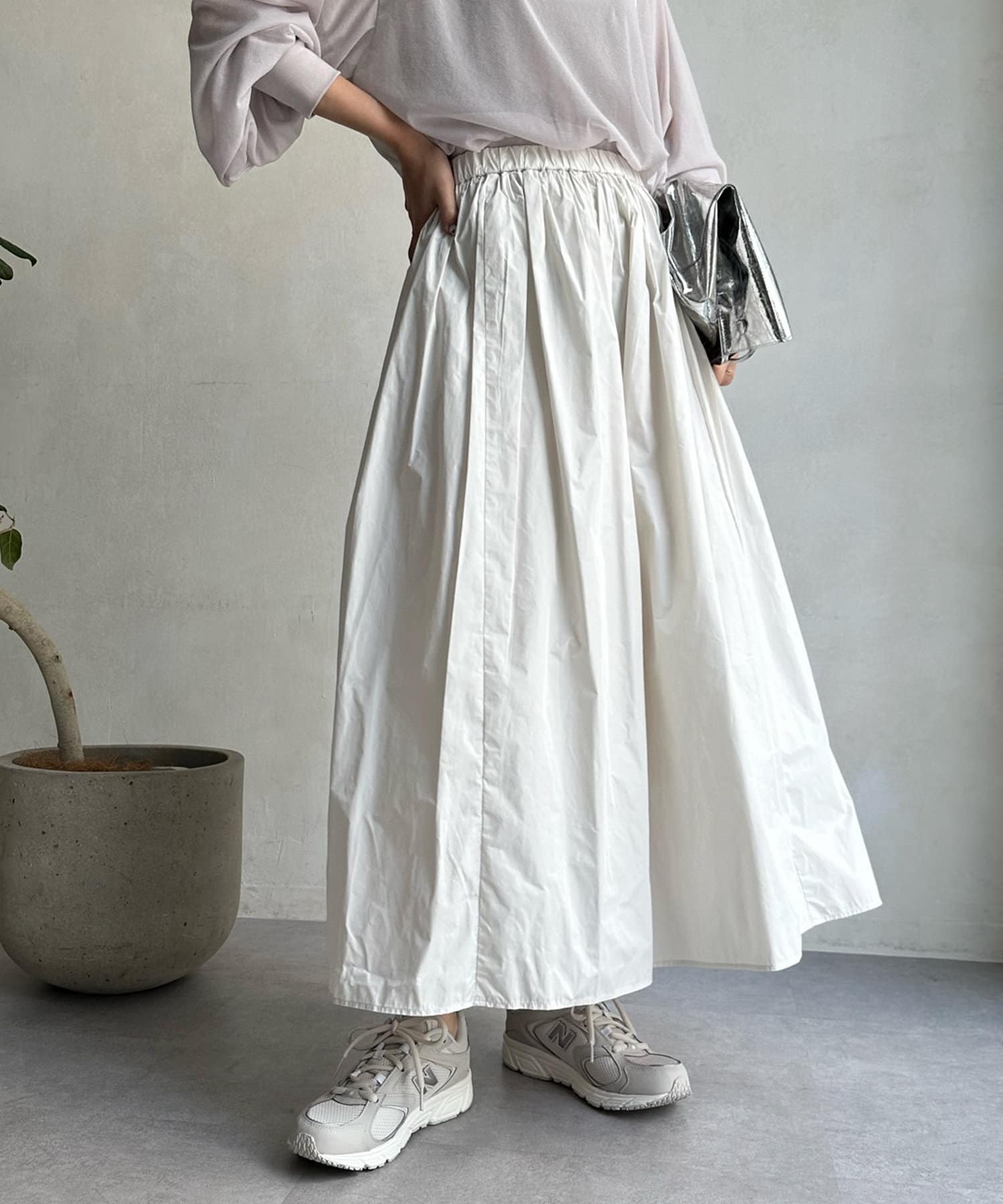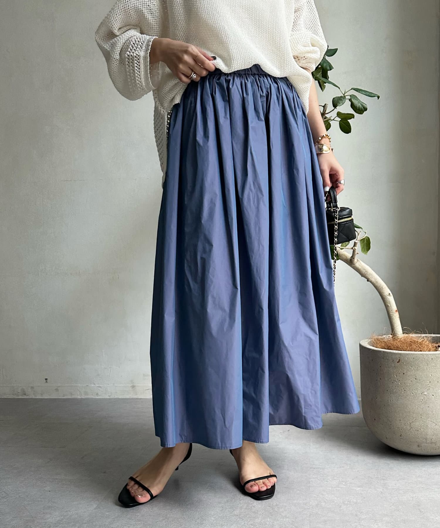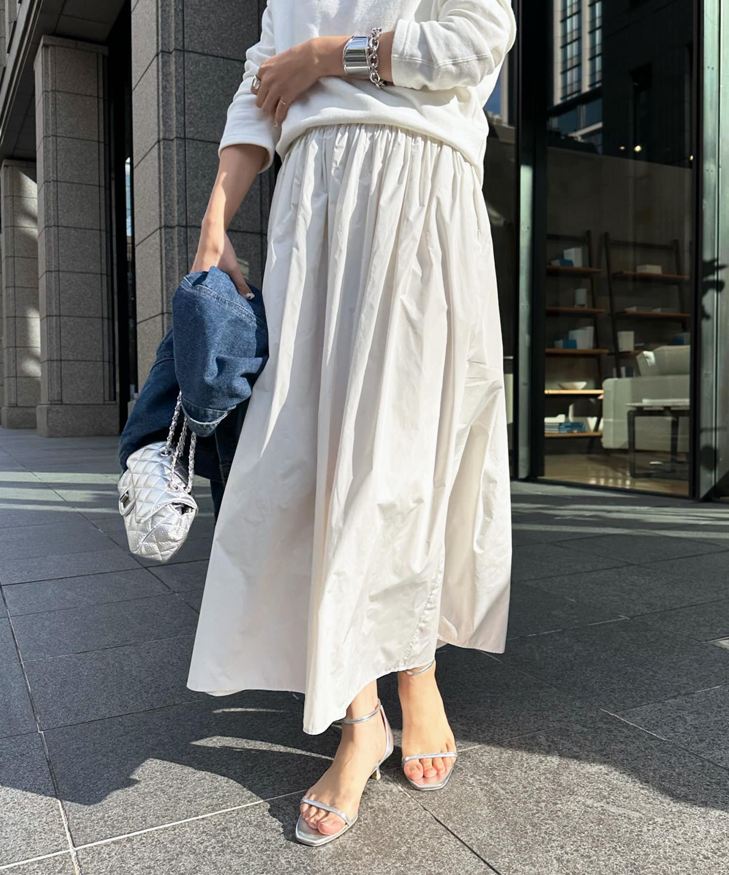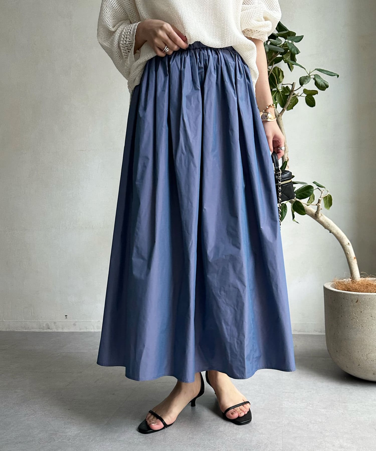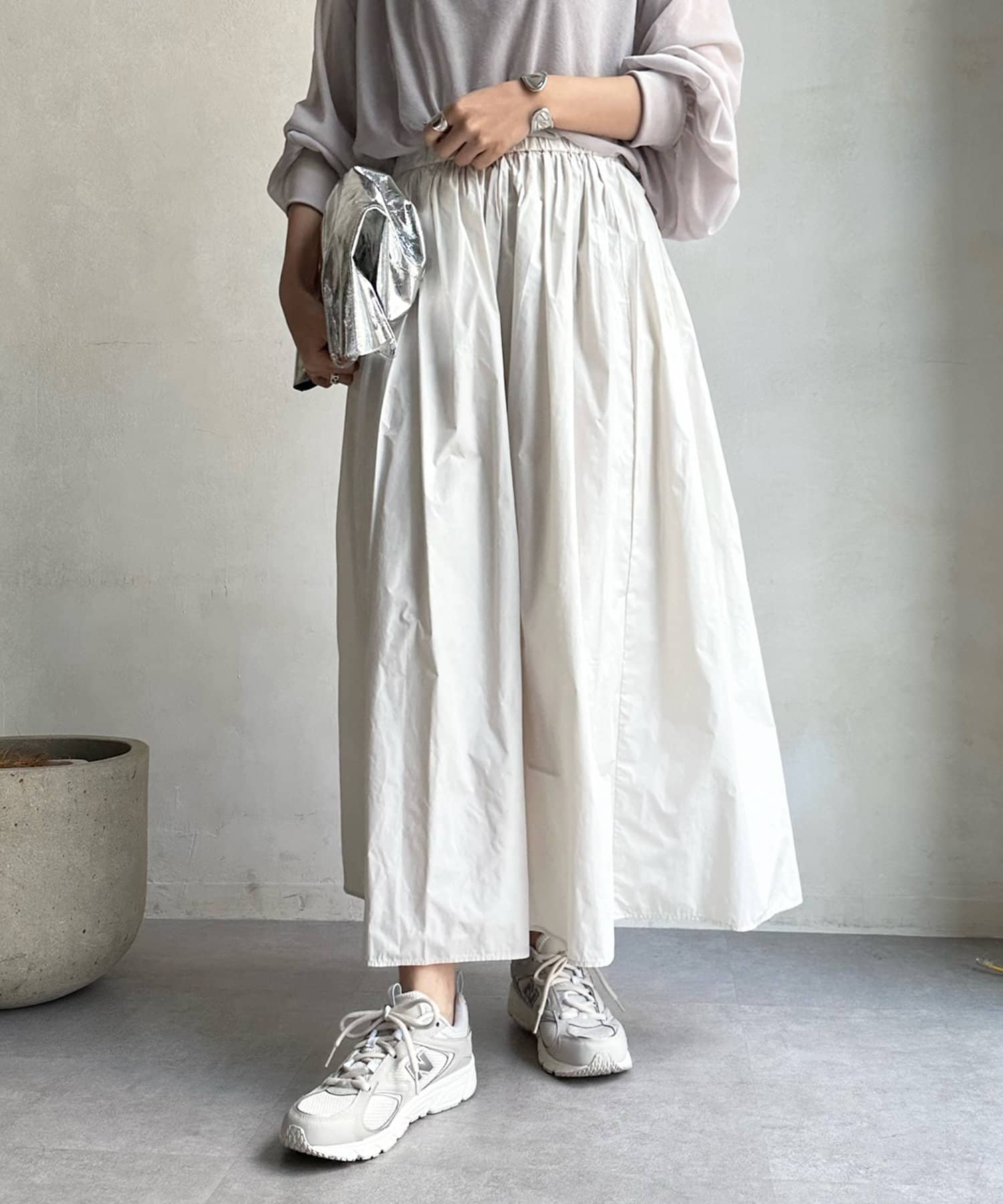 たっぷりのギャザーで、ふんわりとAラインに広がるボリュームが女性らしさとこなれ感を演出するスカート。