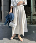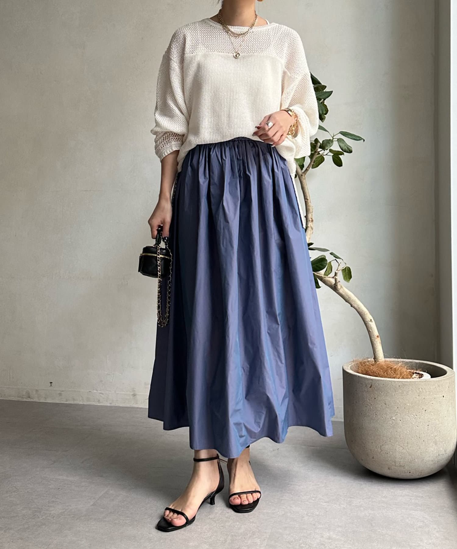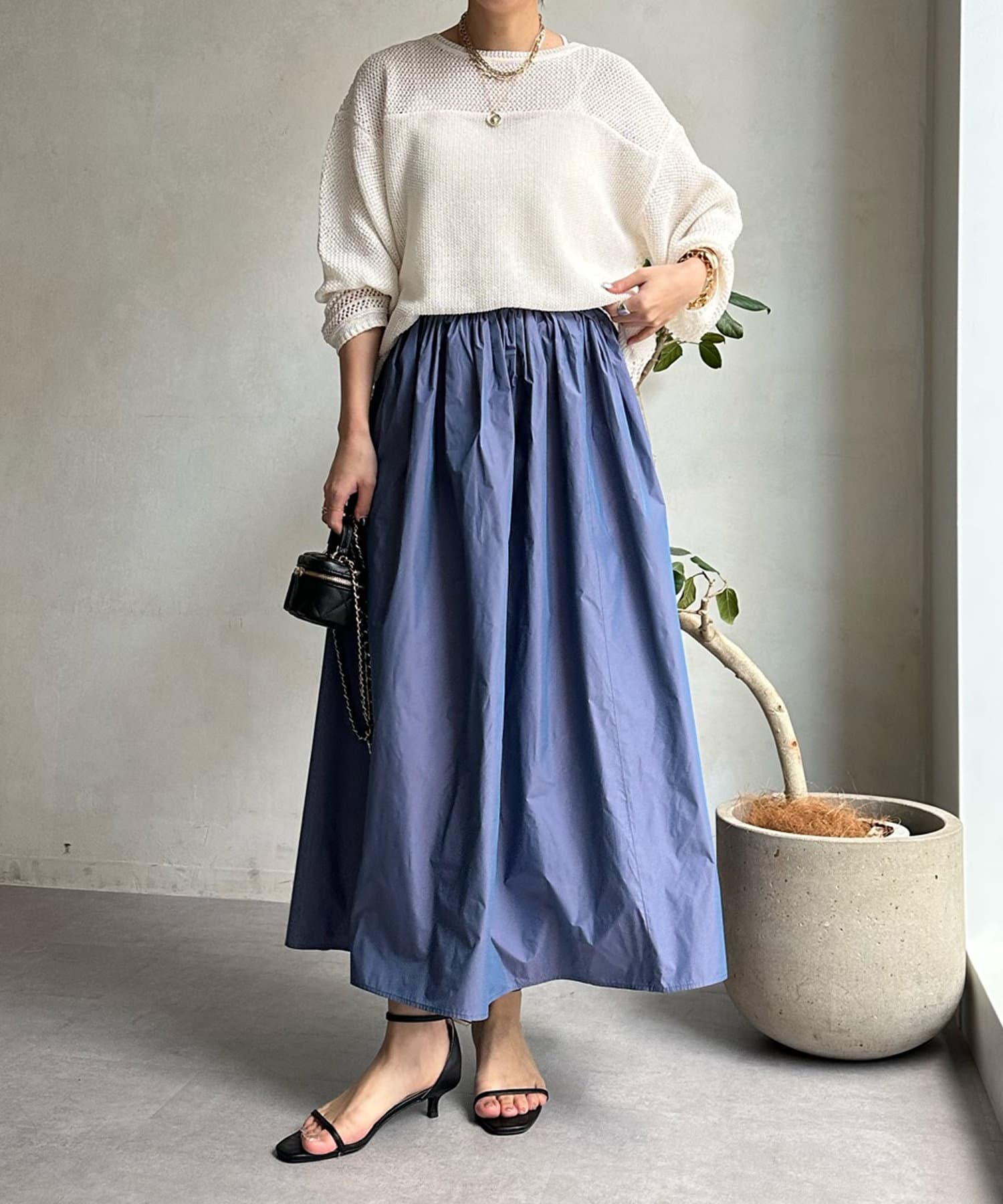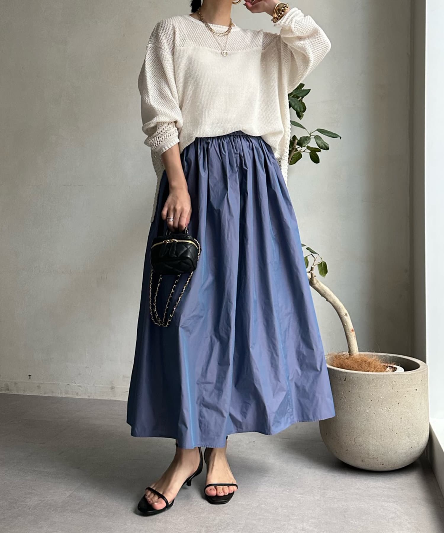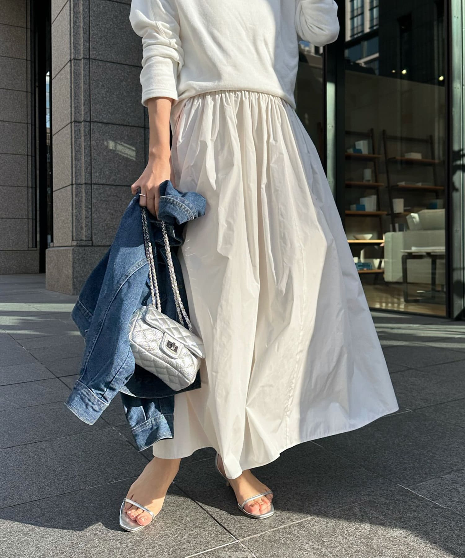 たっぷりのギャザーで、ふんわりとAラインに広がるボリュームが女性らしさとこなれ感を演出するスカート。