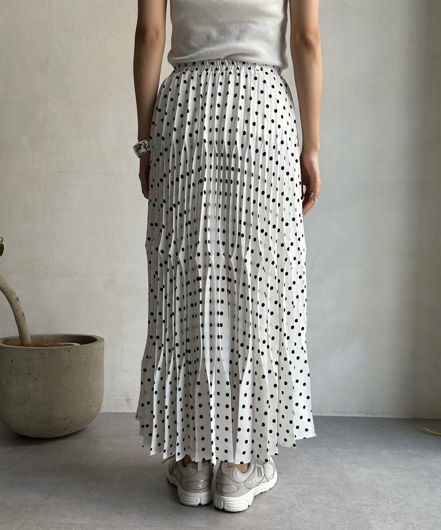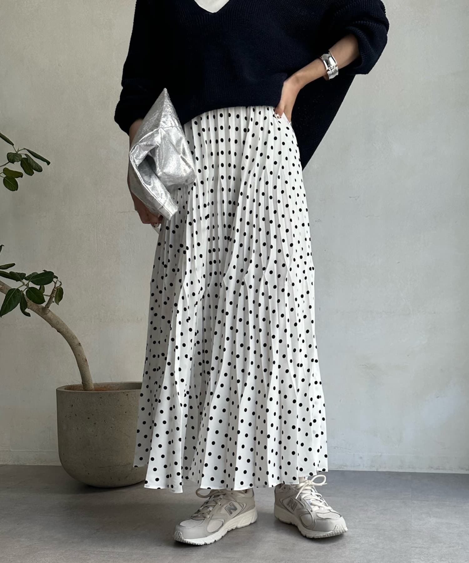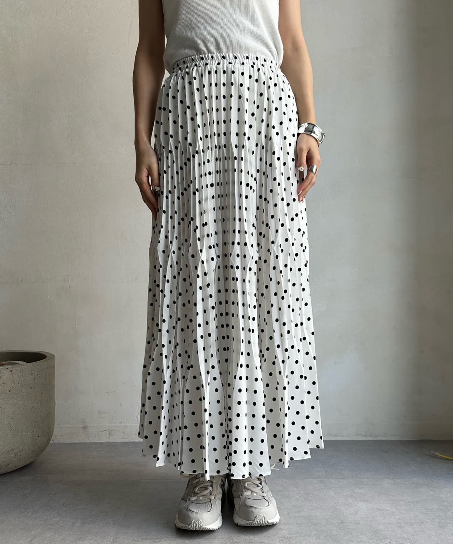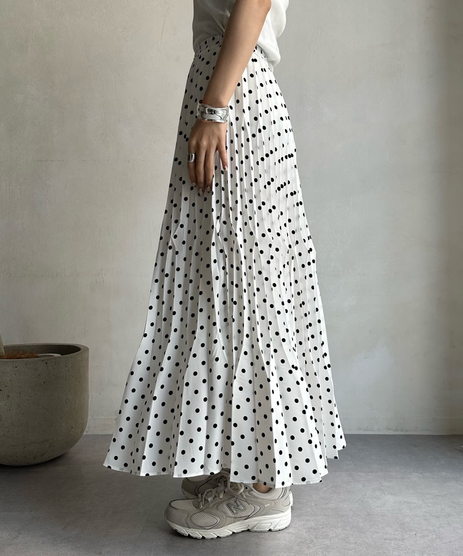 人気のドット柄にプリーツデザインが今年らしいロングスカートが登場しました!
