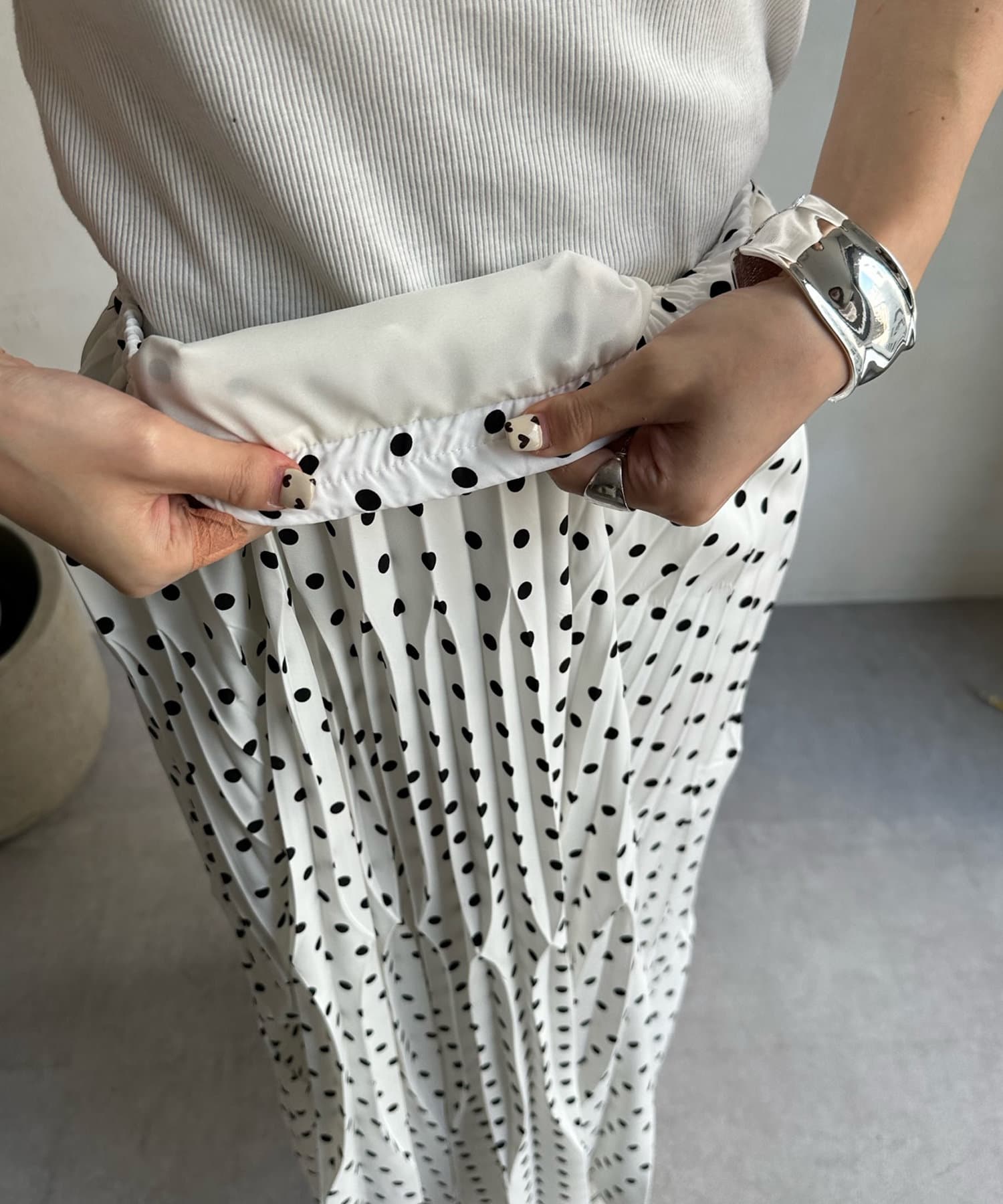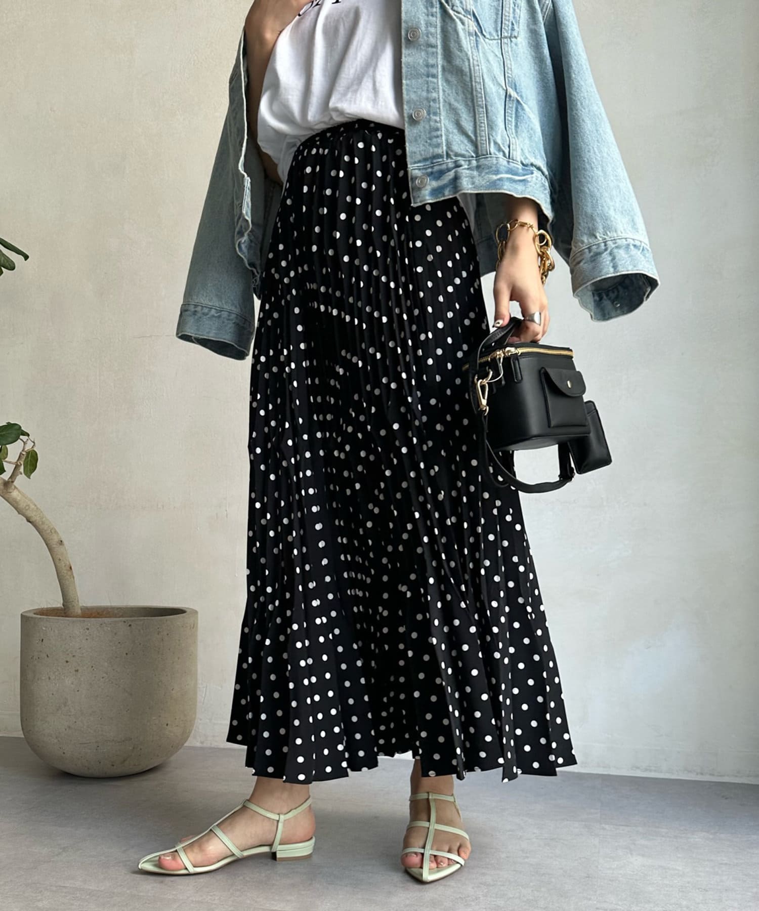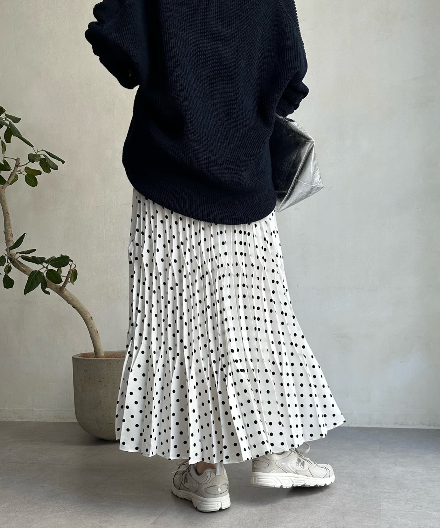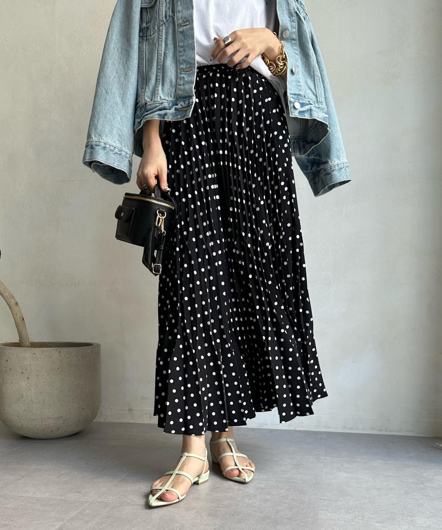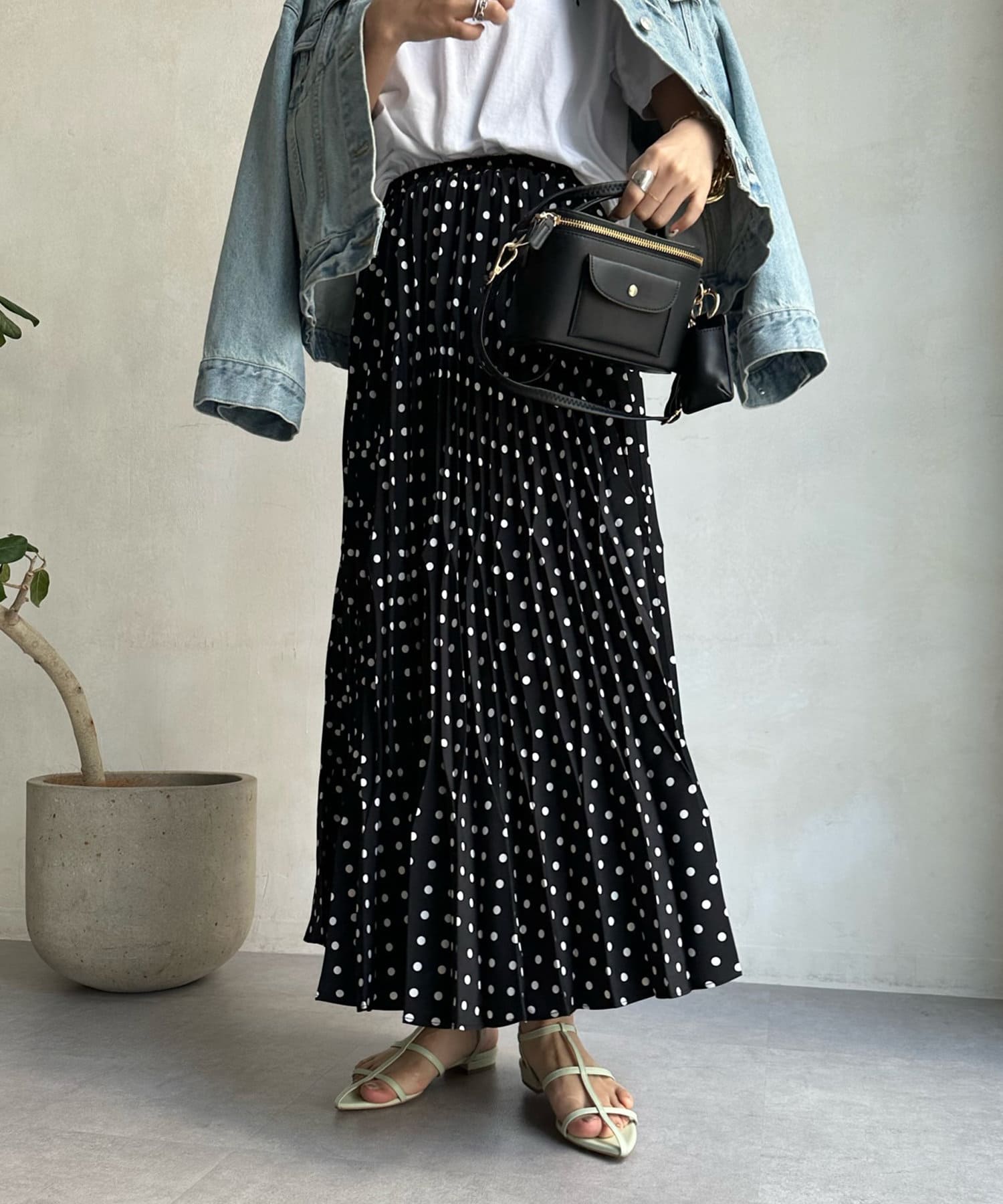 人気のドット柄にプリーツデザインが今年らしいロングスカートが登場しました!