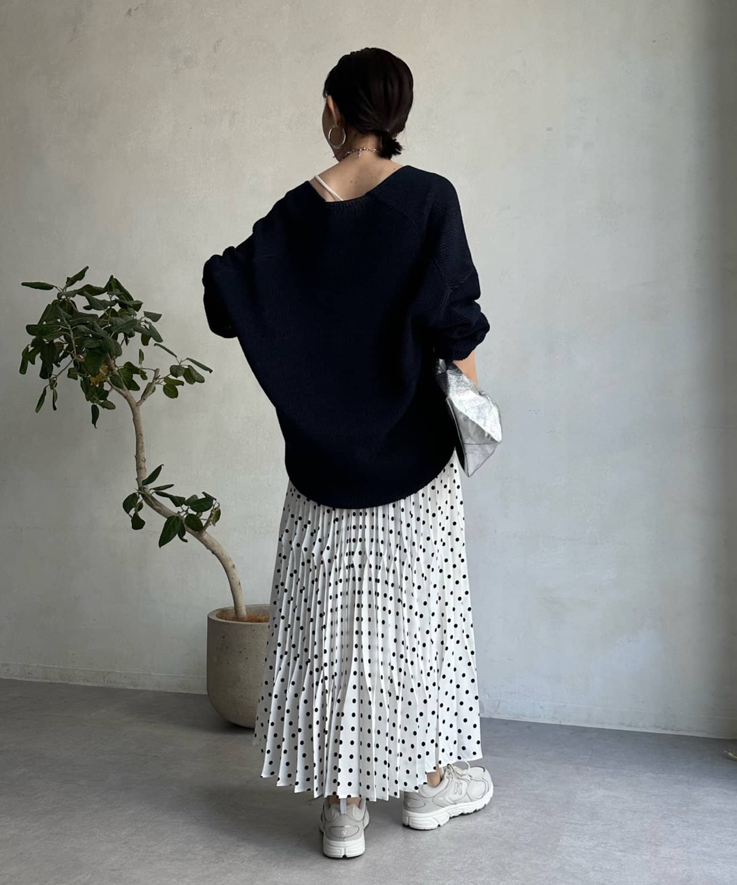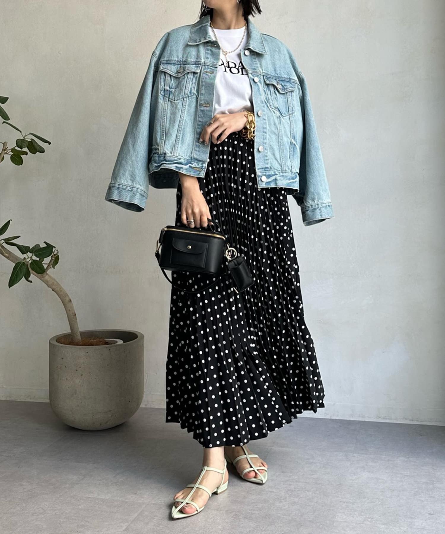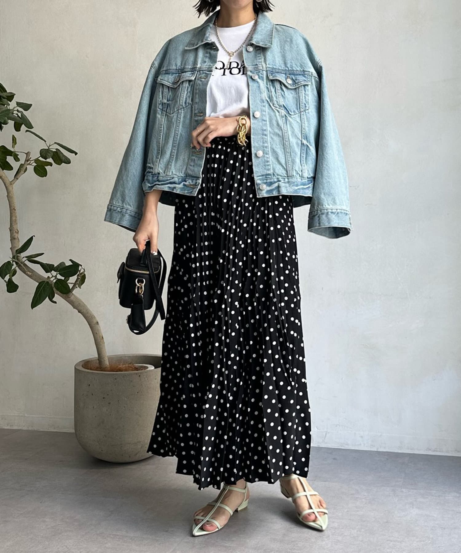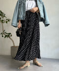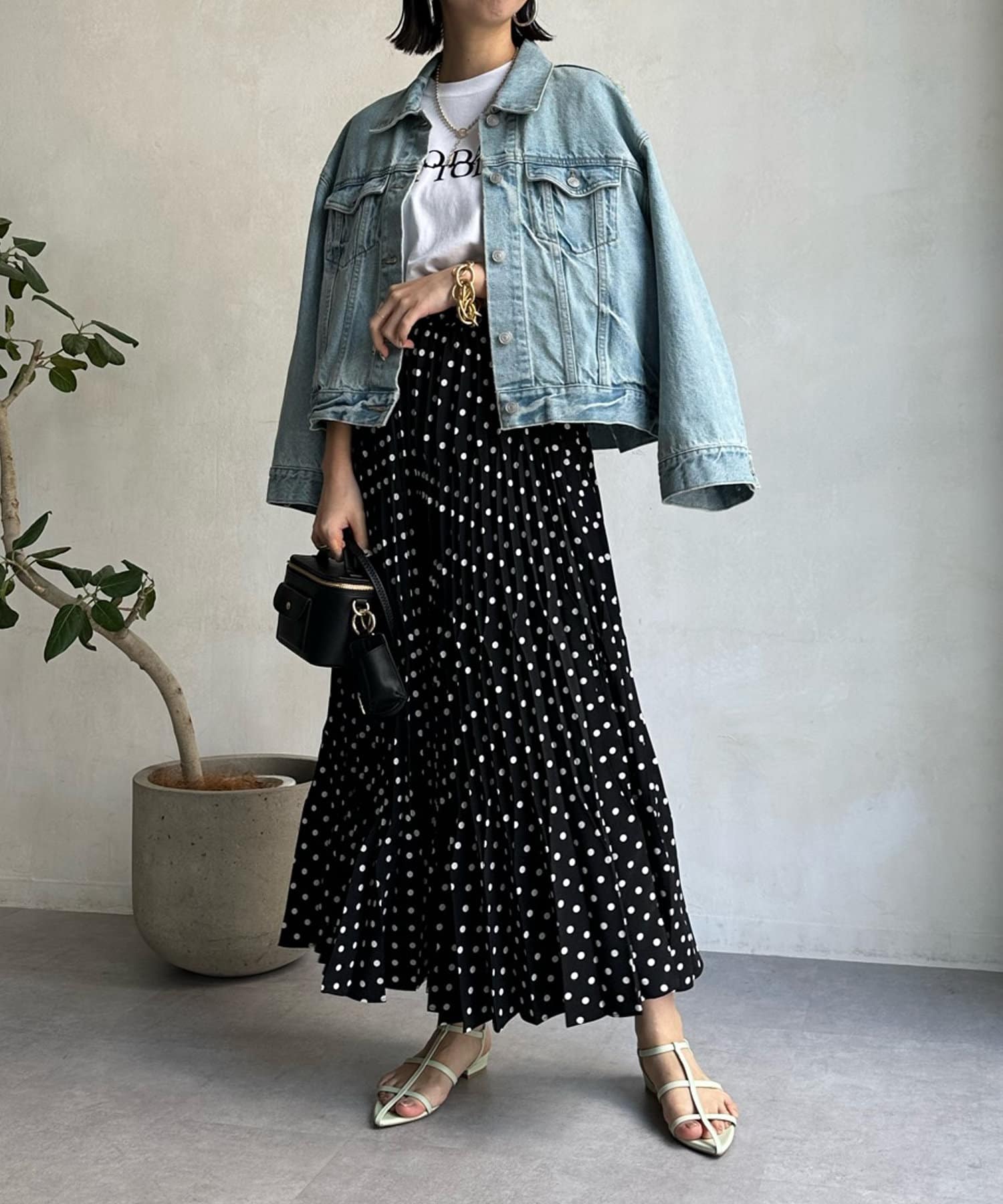 人気のドット柄にプリーツデザインが今年らしいロングスカートが登場しました!