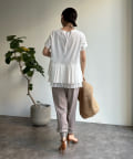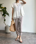 裾のリブ切替で、脚をすっきりと見せてくれるので、ボリューム感のあるブラウスなどともバランス◎