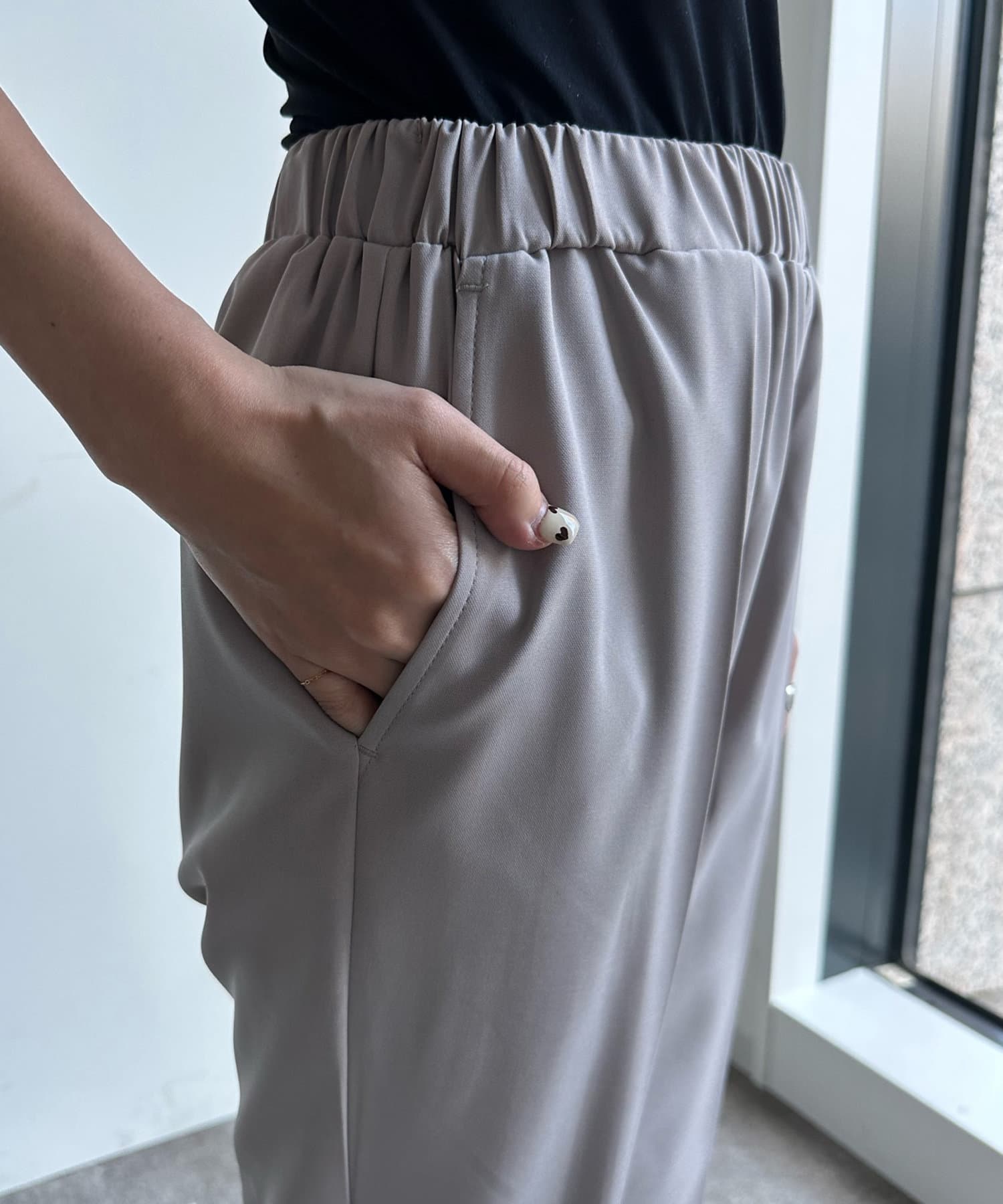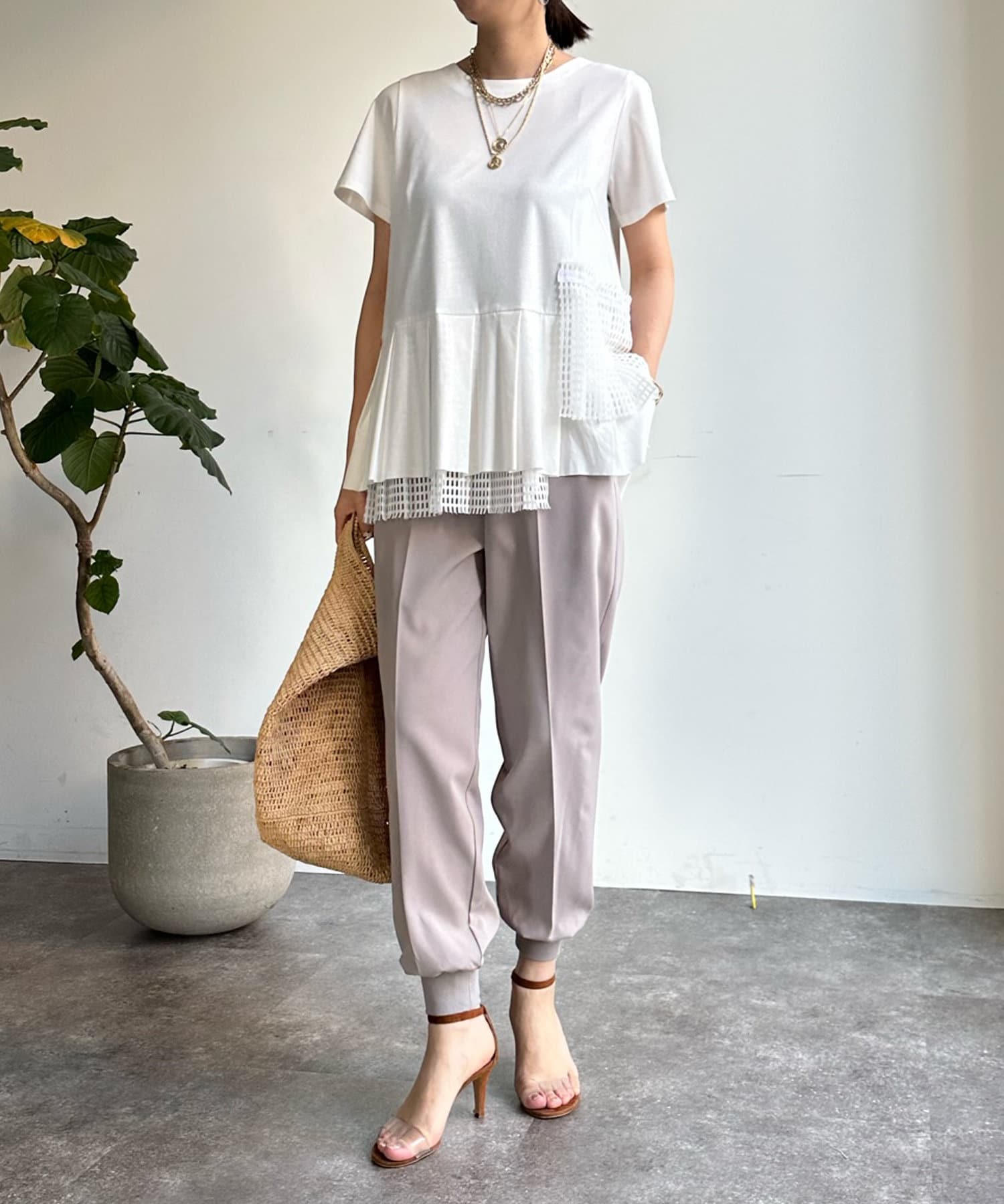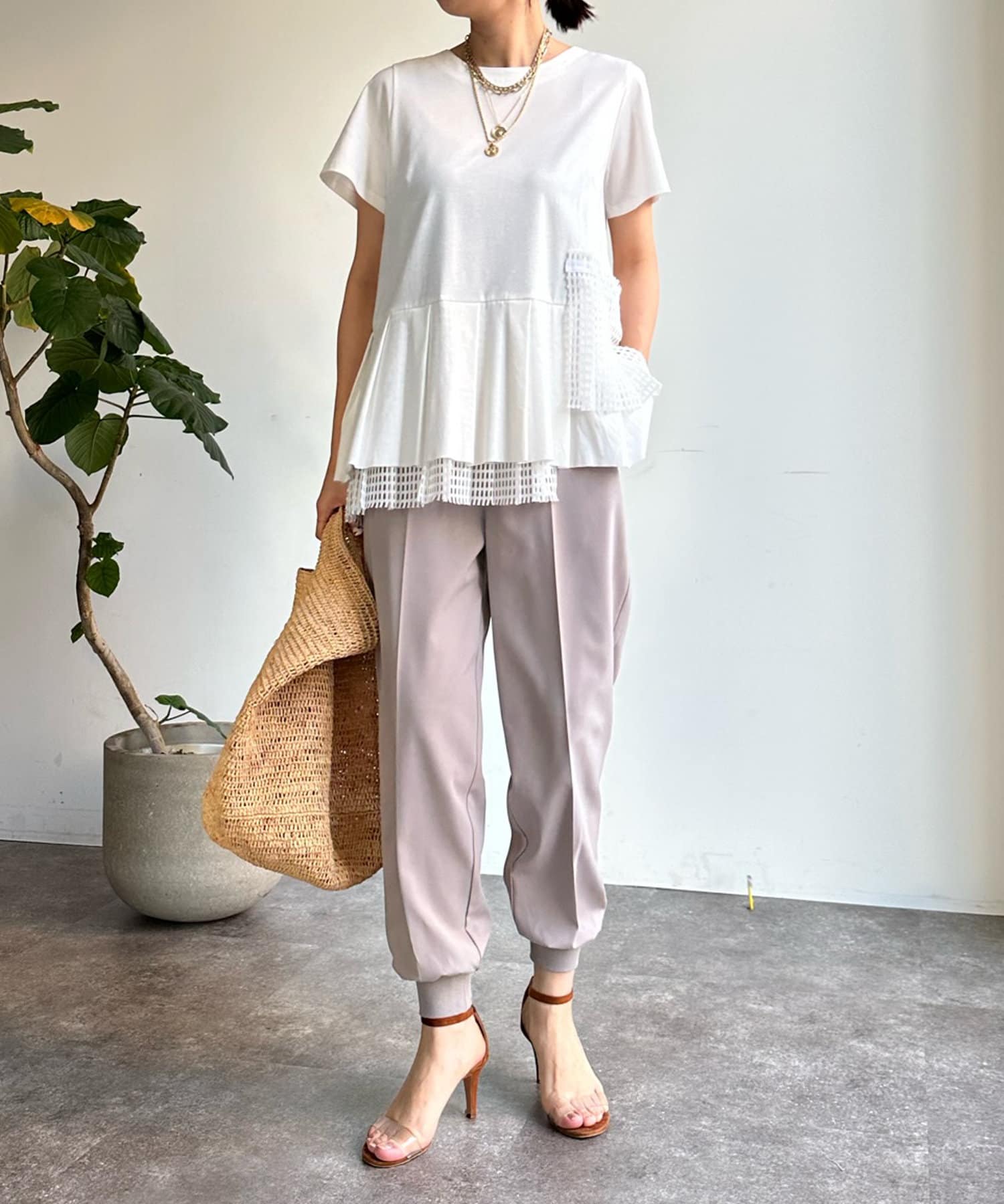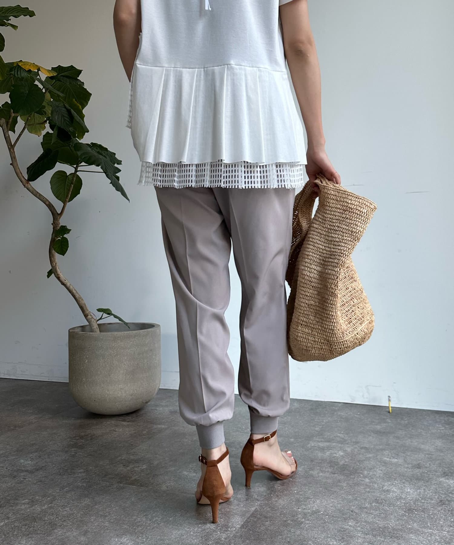 落ち感がありテロっととしたリブ素材は、楽なのにおしゃれな印象を与えてくれるトレンドのシルエット。