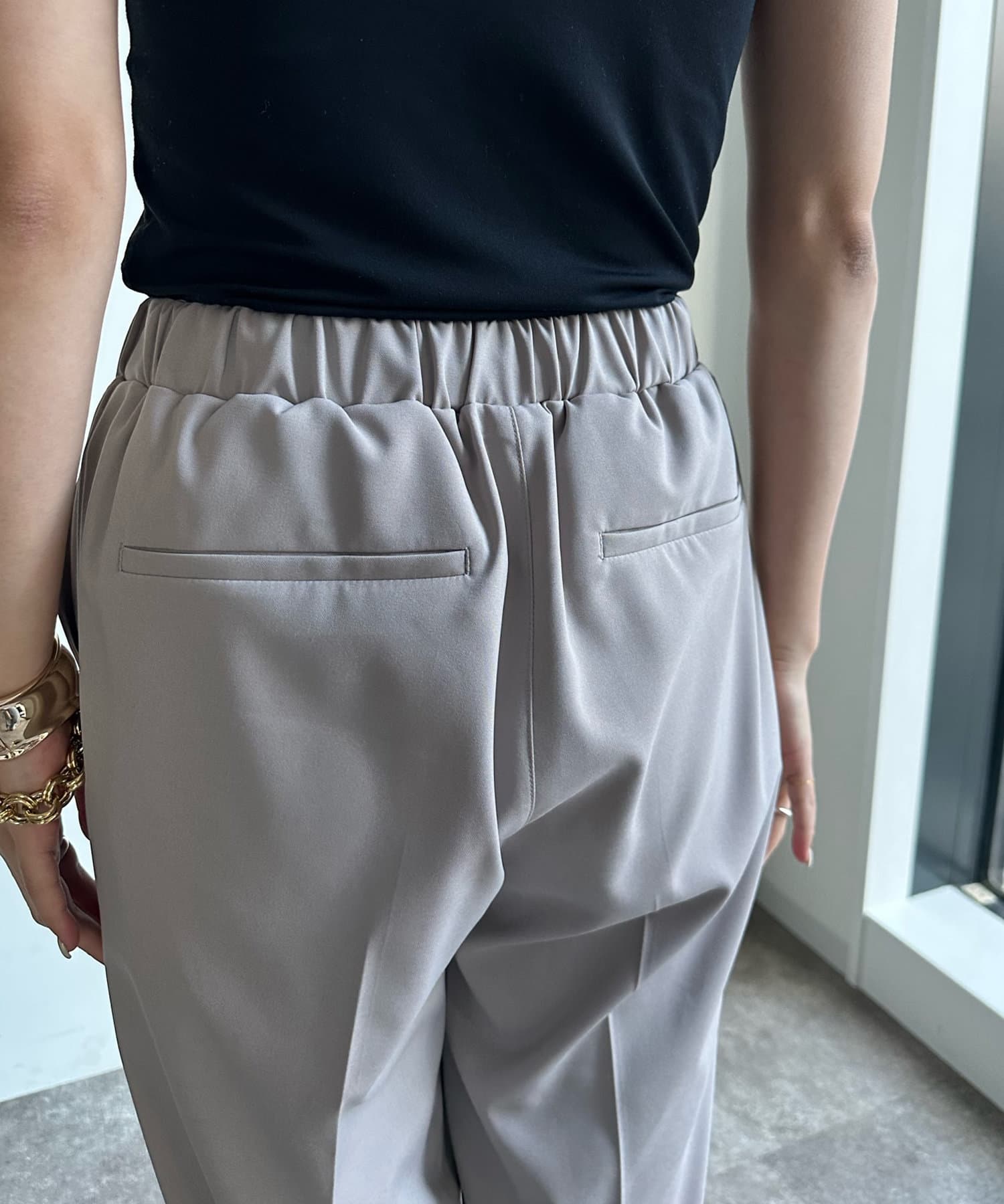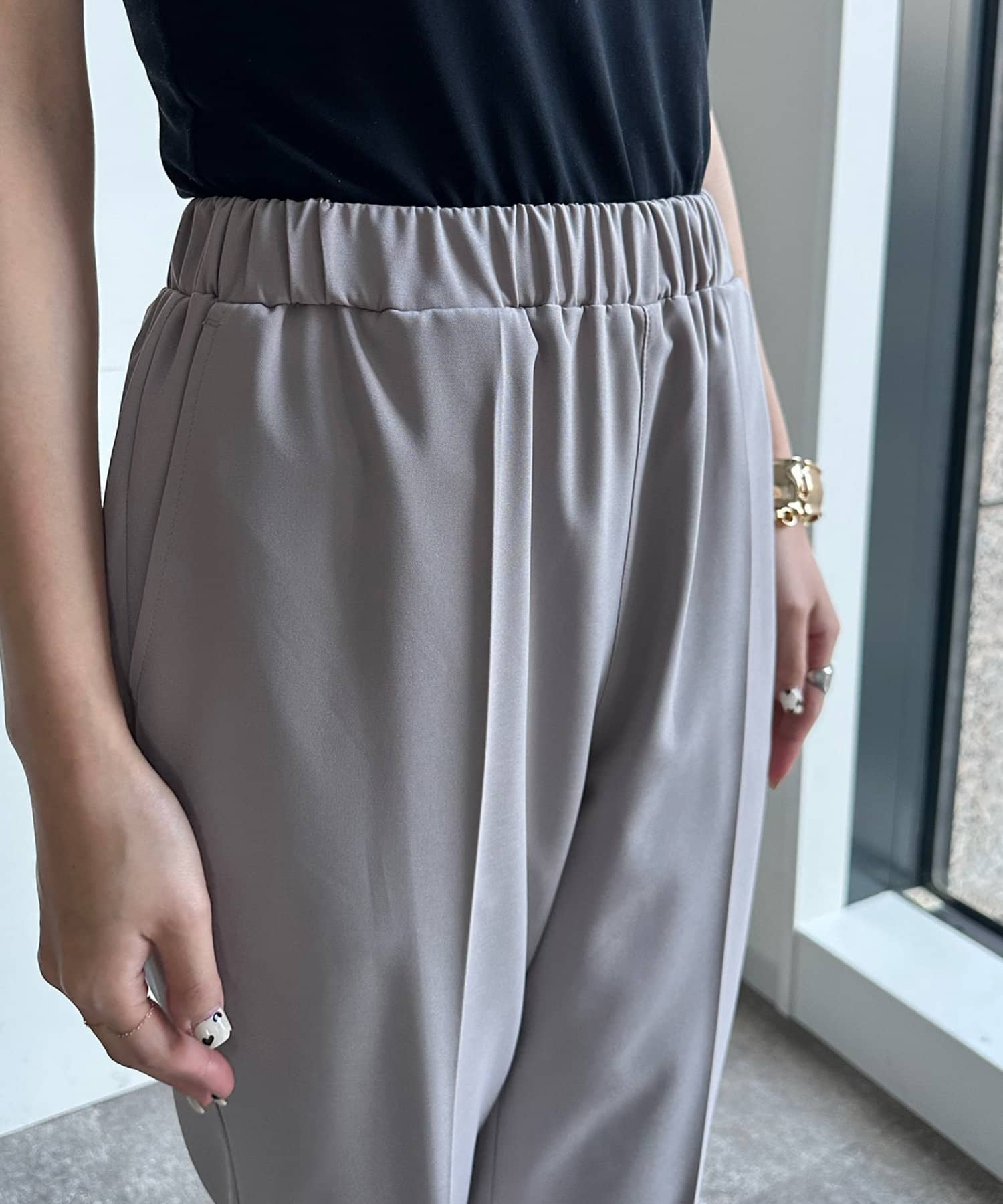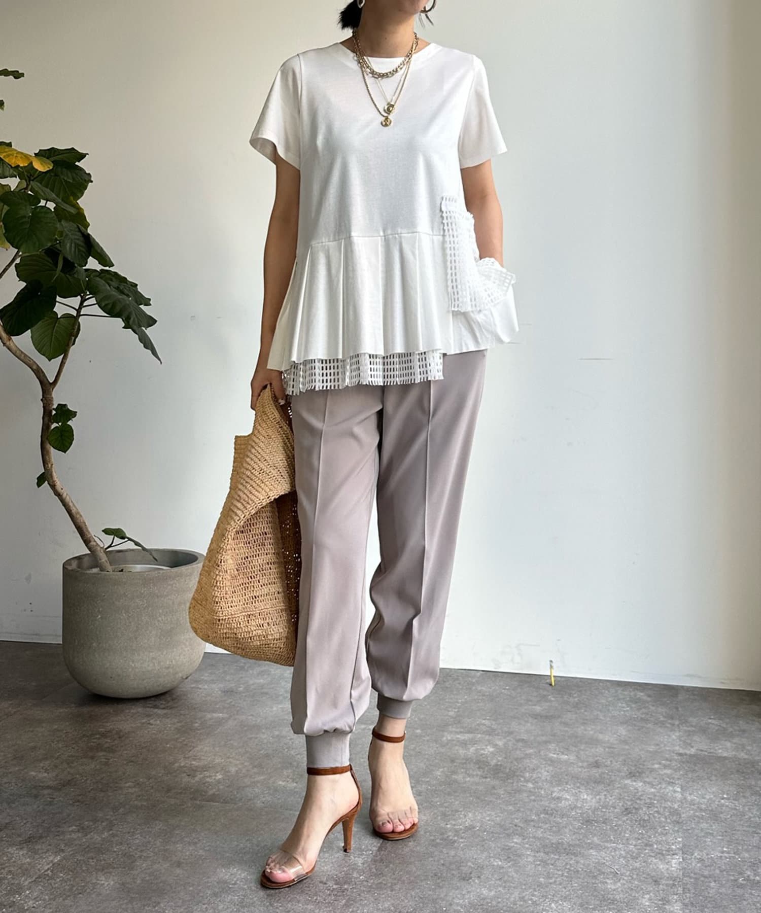 落ち感がありテロっととしたリブ素材は、楽なのにおしゃれな印象を与えてくれるトレンドのシルエット。