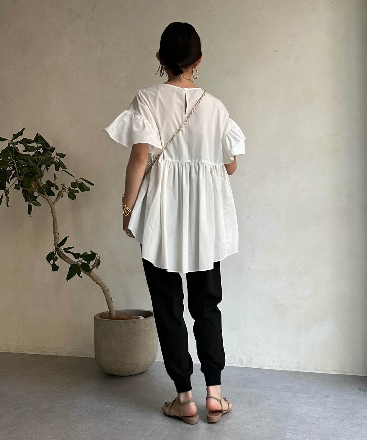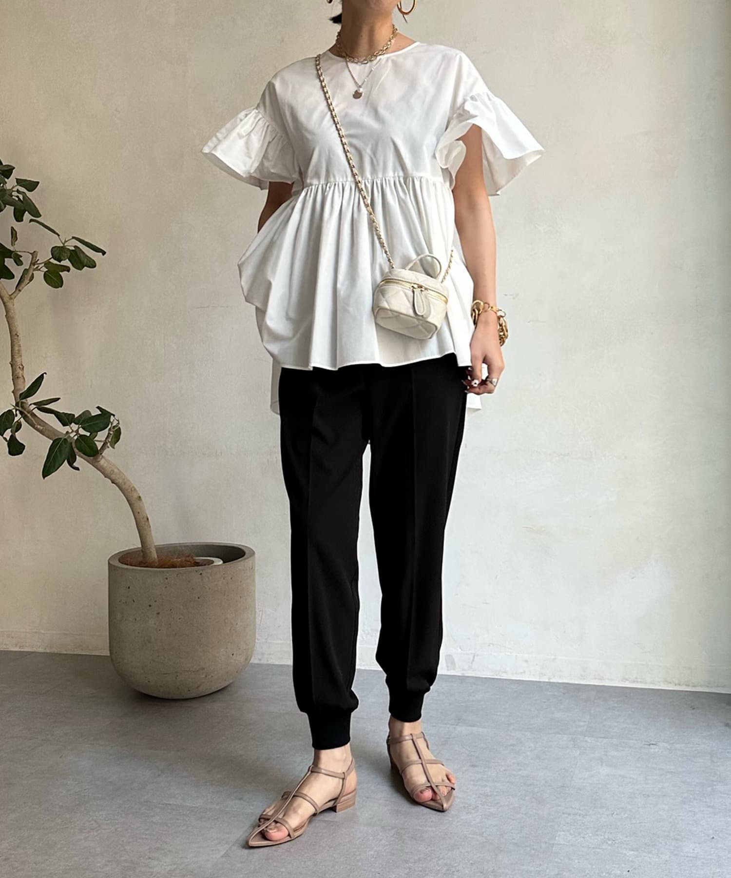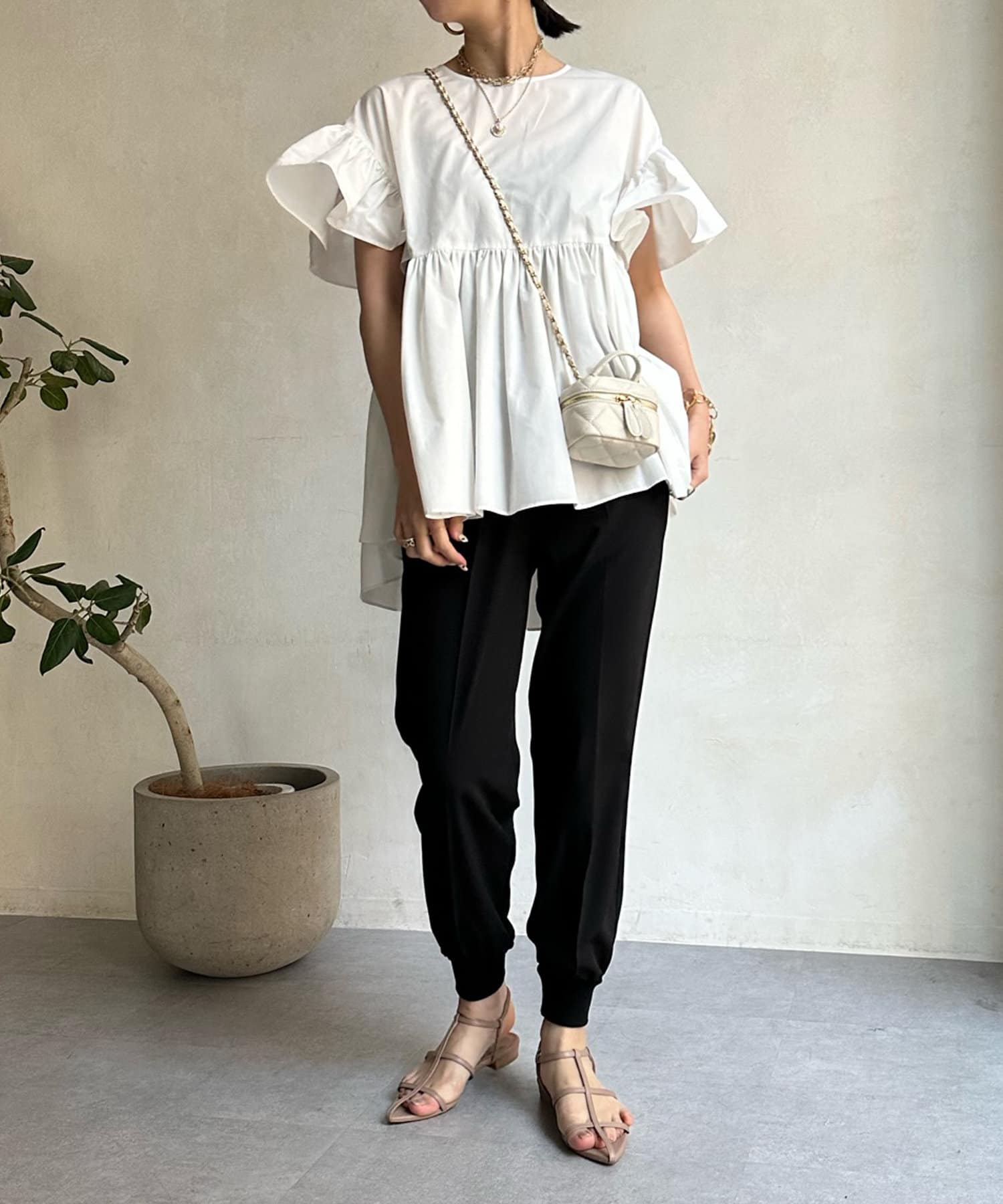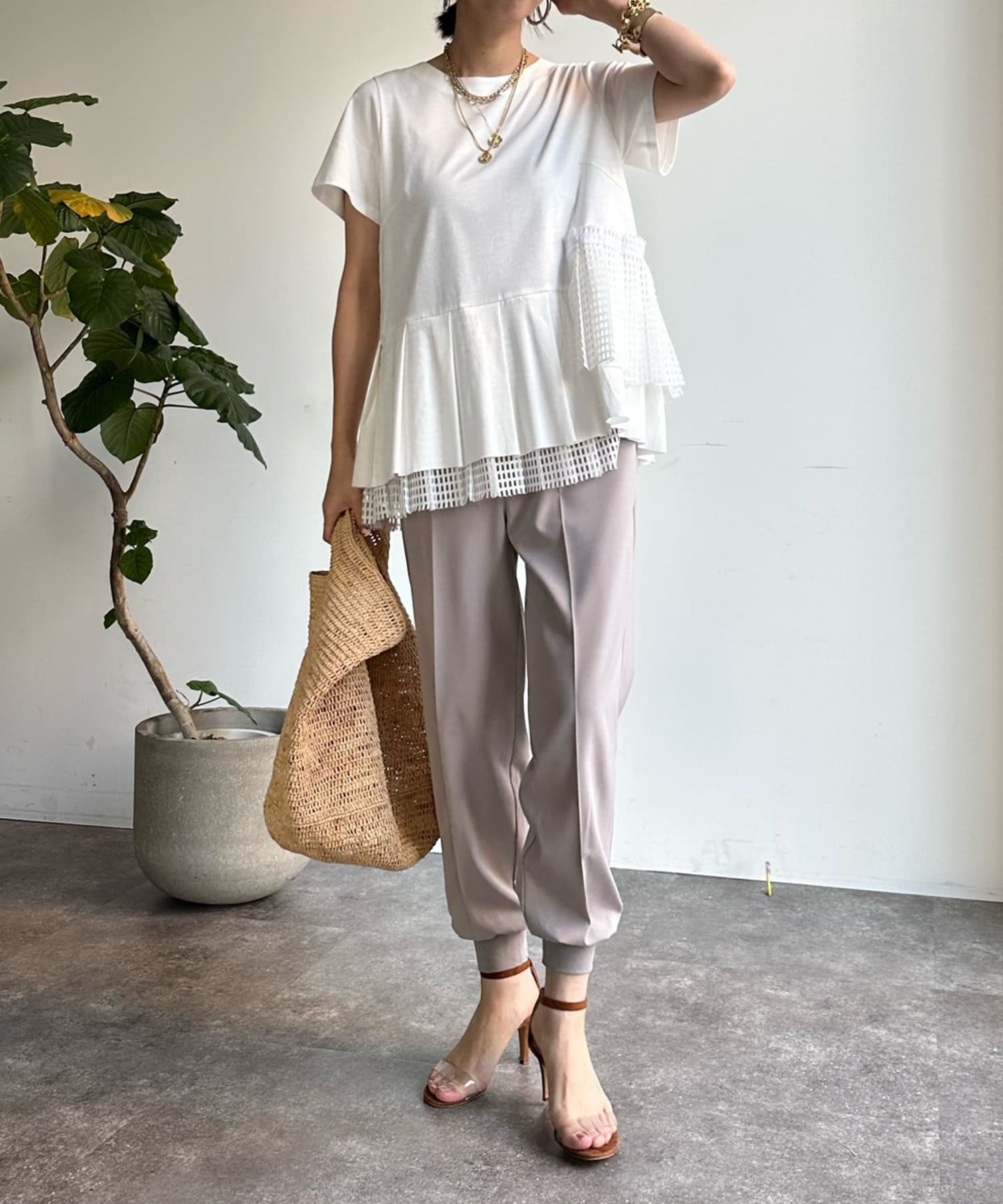 落ち感がありテロっととしたリブ素材は、楽なのにおしゃれな印象を与えてくれるトレンドのシルエット。