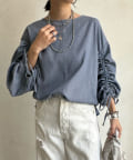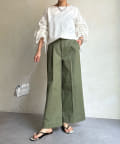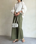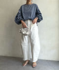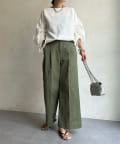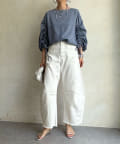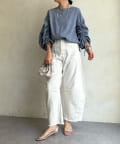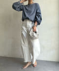 スカートからパンツまで幅広いアイテムとマッチ。フロントのみボトムインしたスタイルもおすすめですよ◎