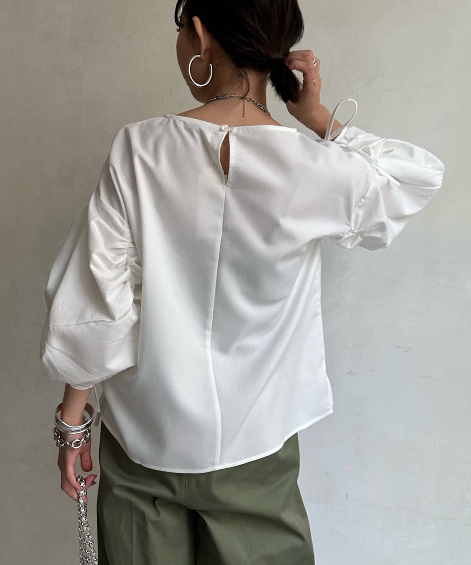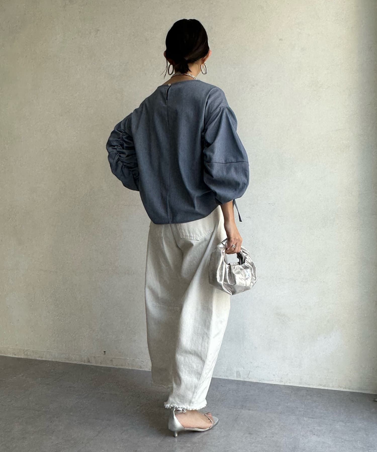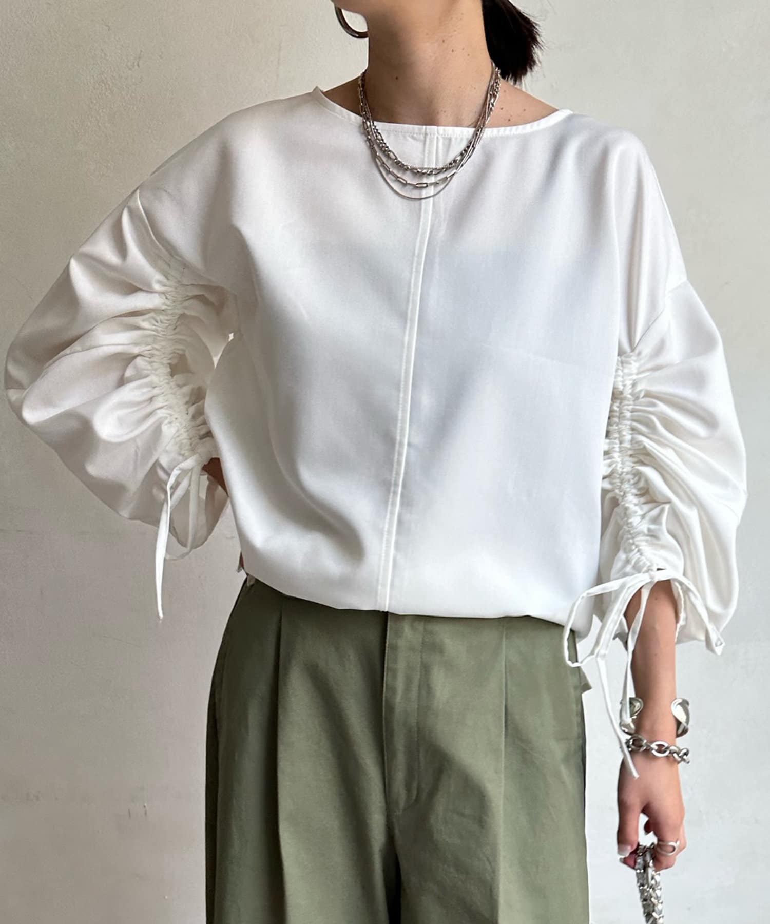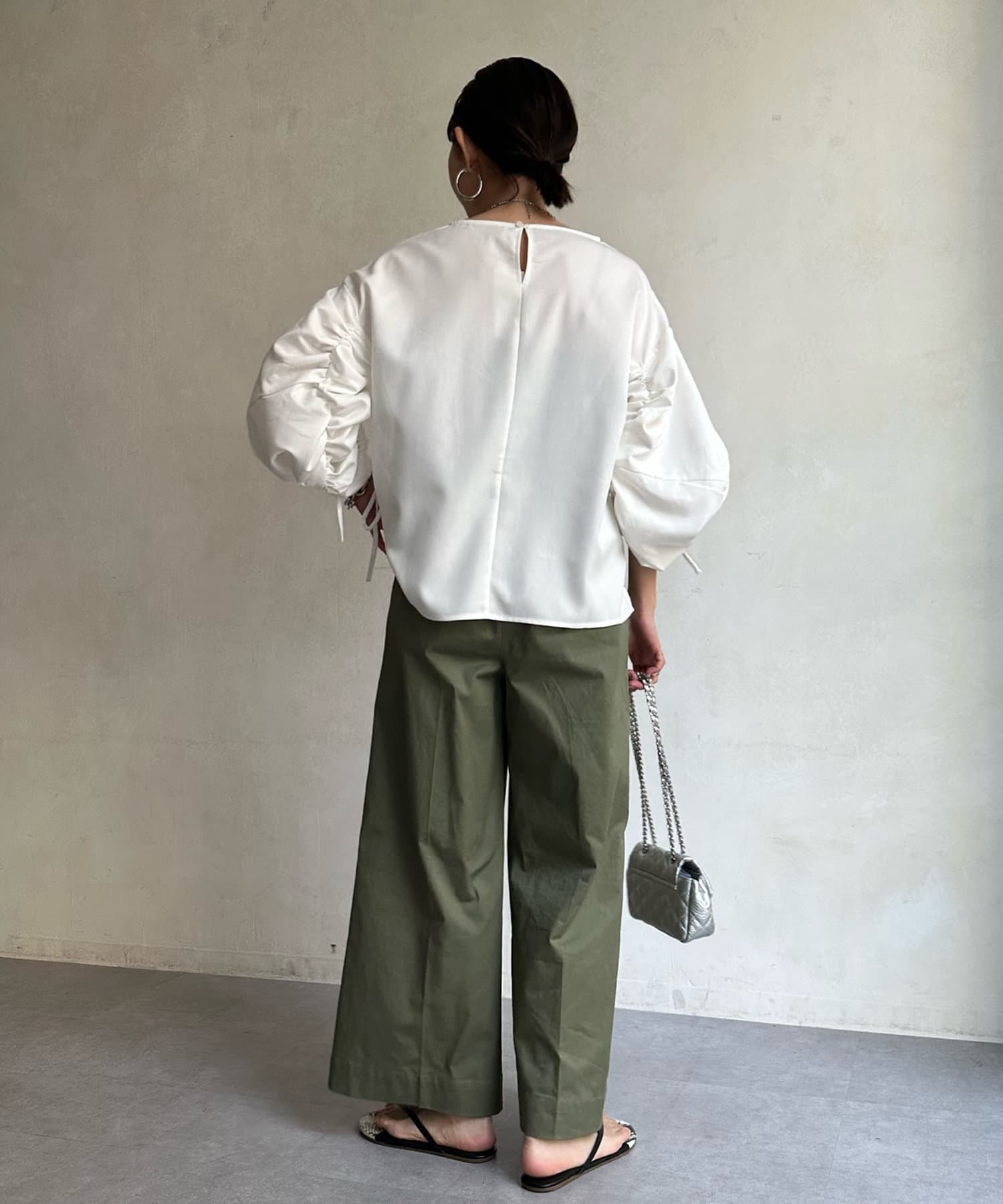 たっぷりと身幅をとった余裕感のあるサイジングで、袖のギャザーが今年らしい印象に。