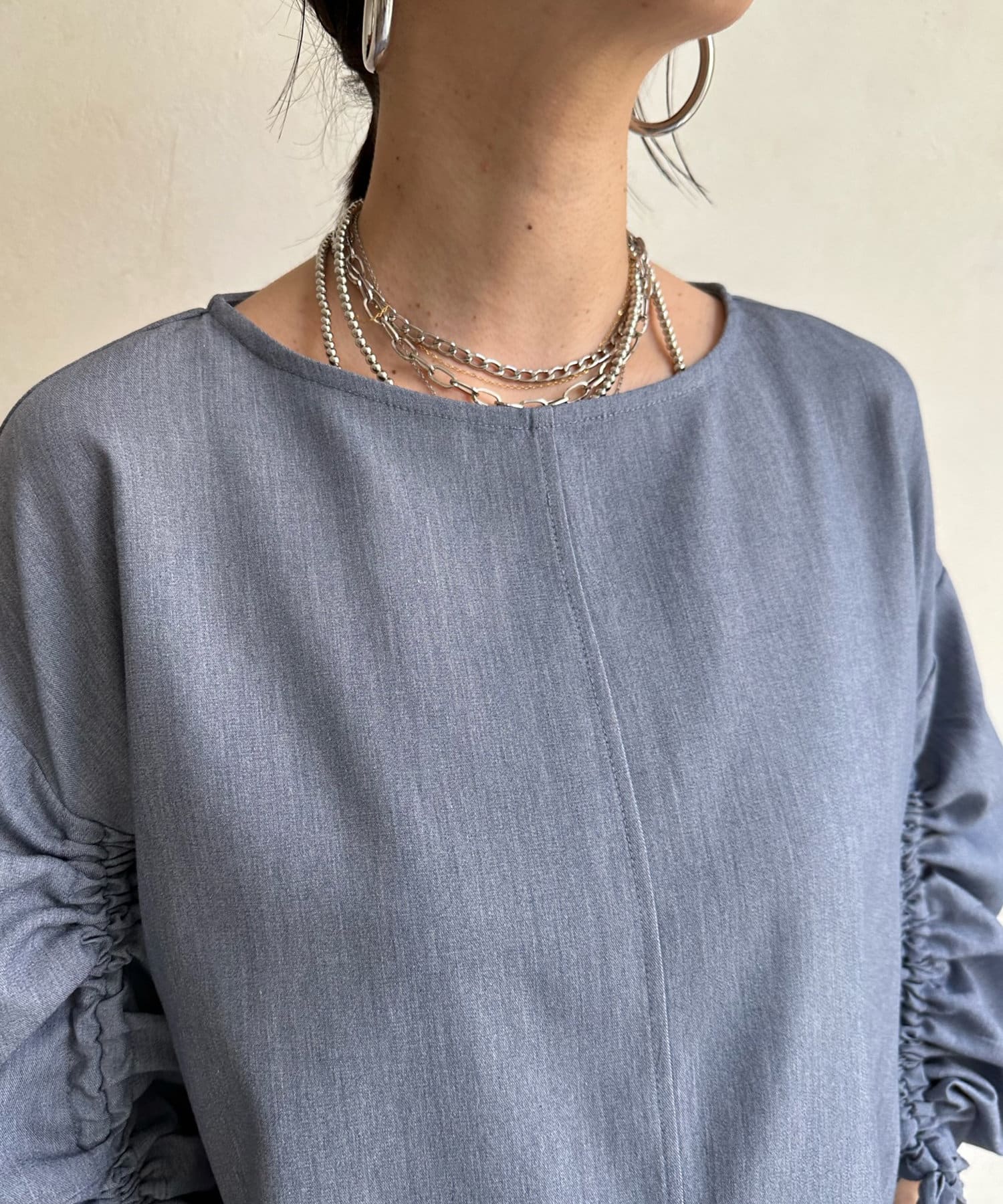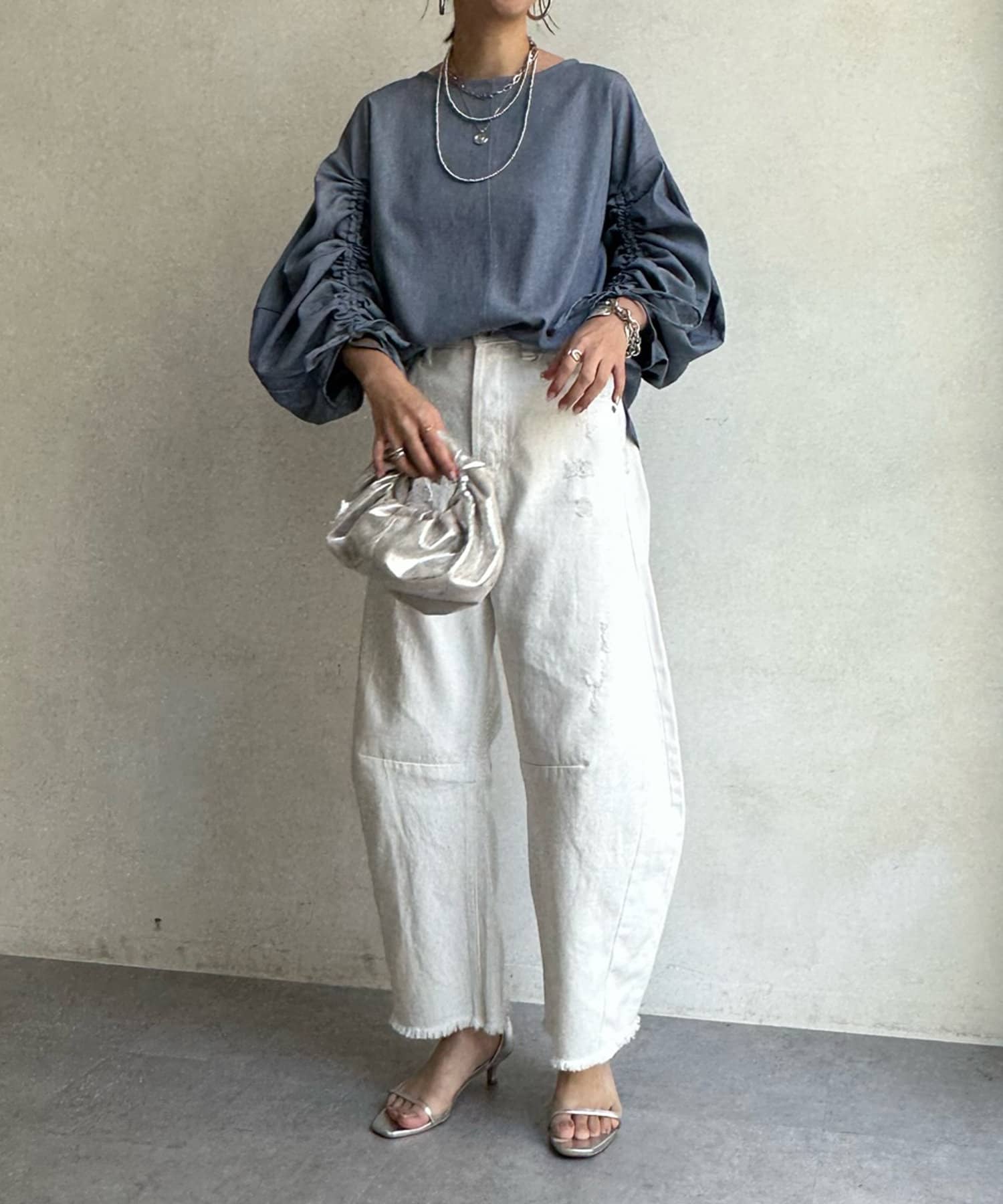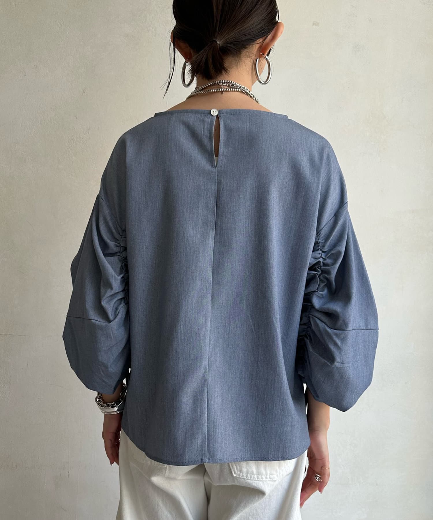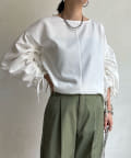 たっぷりと身幅をとった余裕感のあるサイジングで、袖のギャザーが今年らしい印象に。