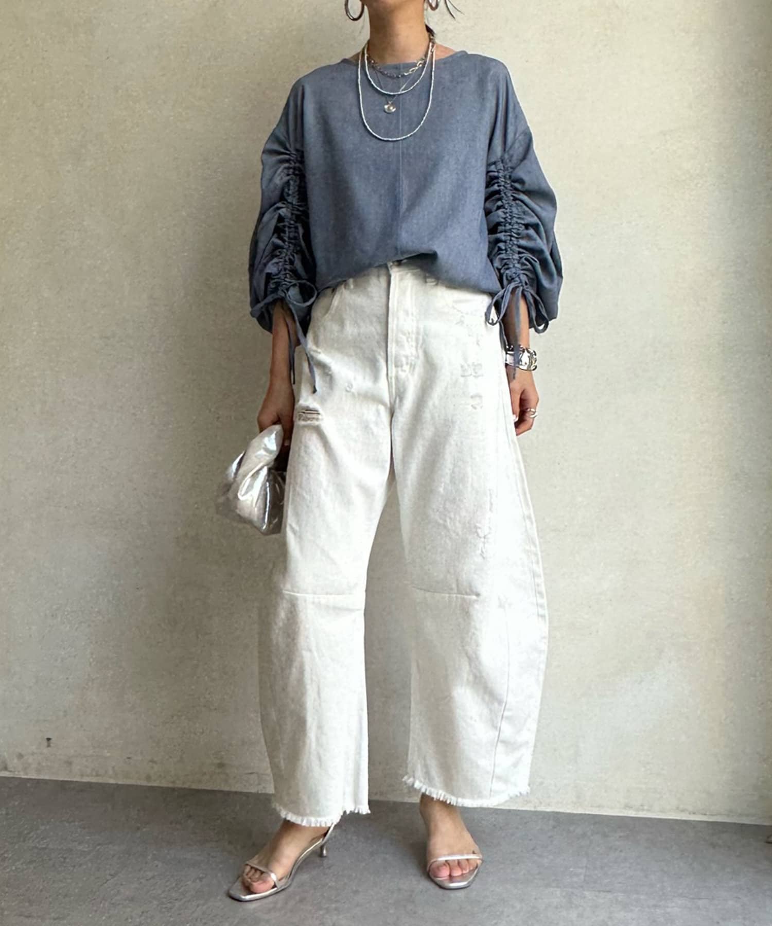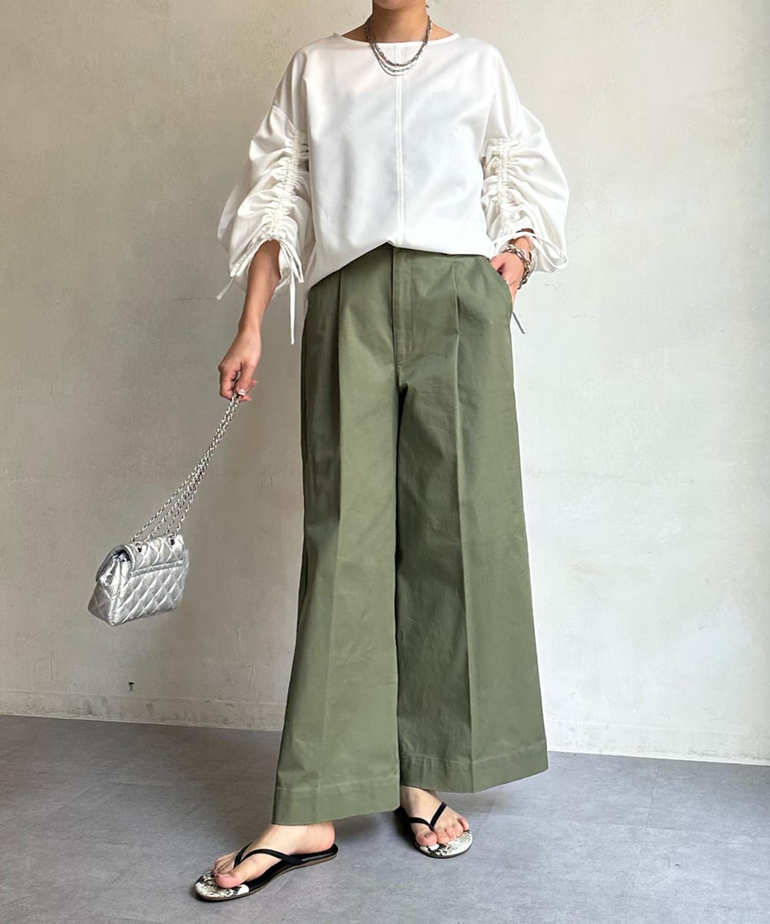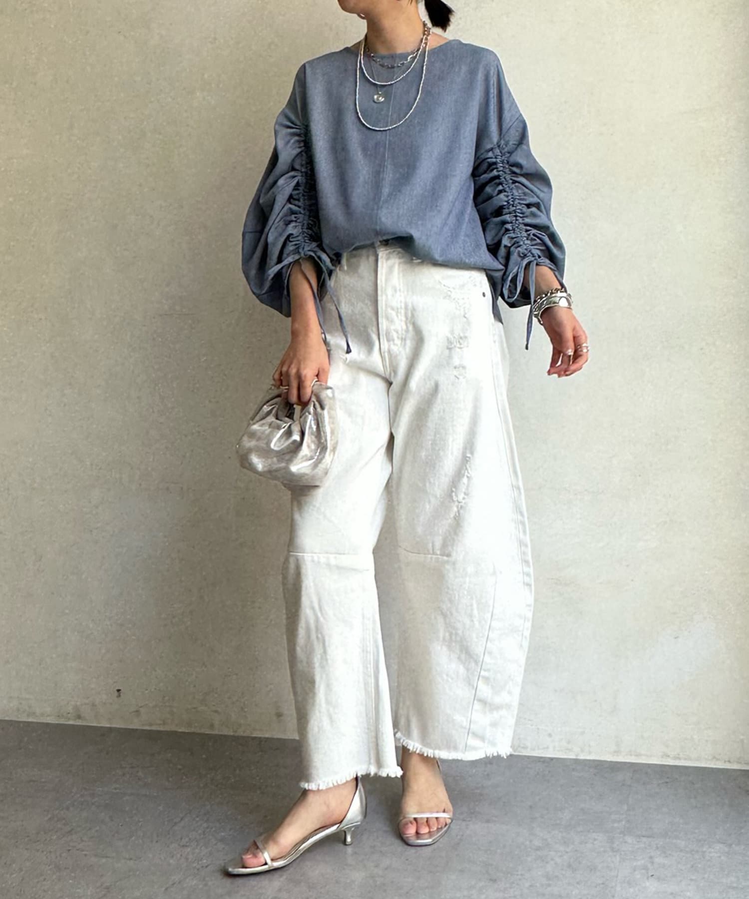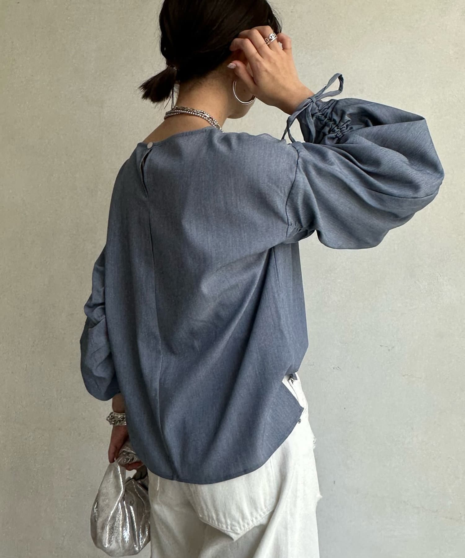 たっぷりと身幅をとった余裕感のあるサイジングで、袖のギャザーが今年らしい印象に。