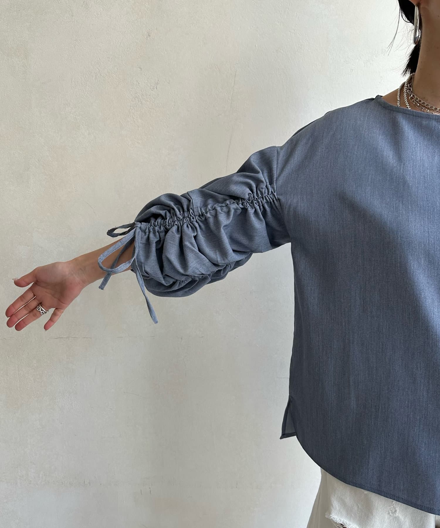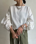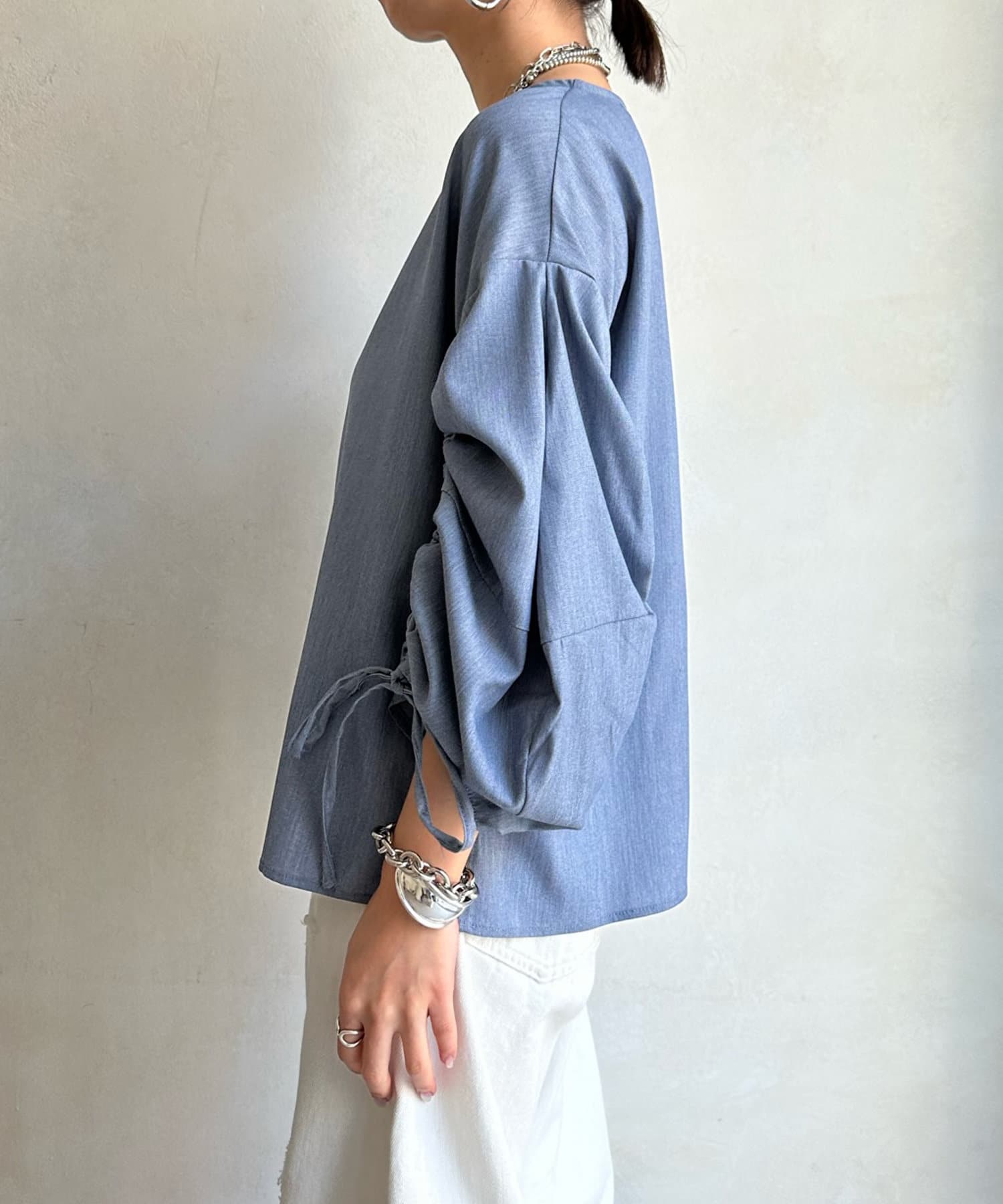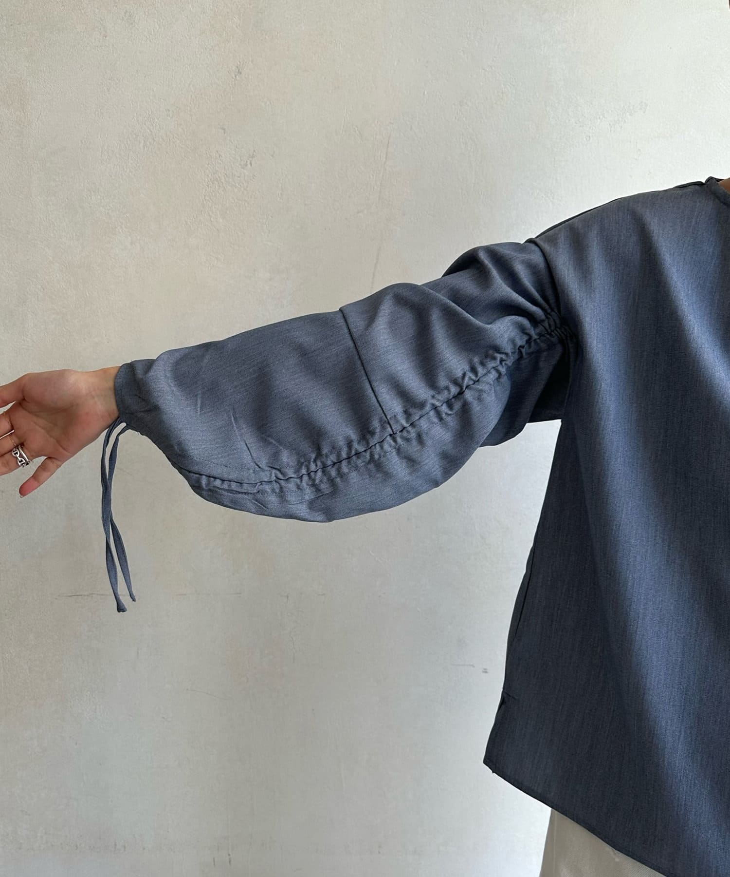 シルエットに変化をつけられるドロストデザインがポイントで、袖のドロストを絞っていただくとふんわりとしたお袖になり、メリハリのあるシルエットに仕上がります。