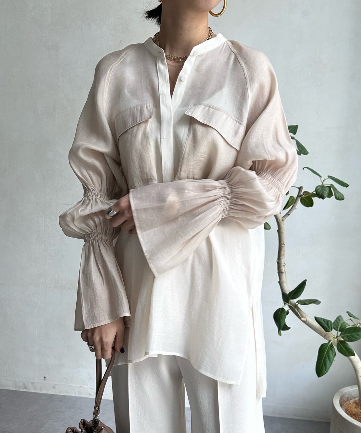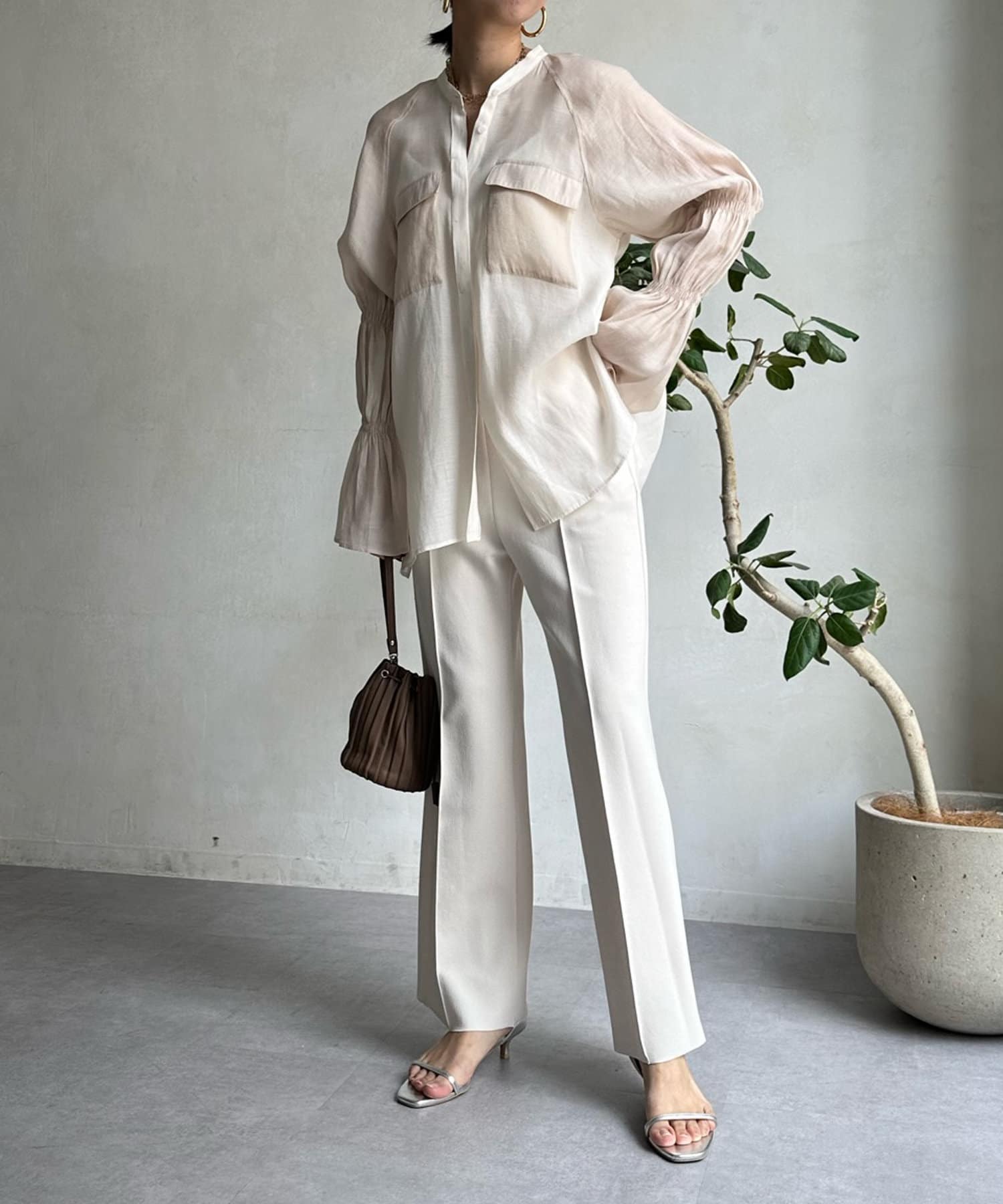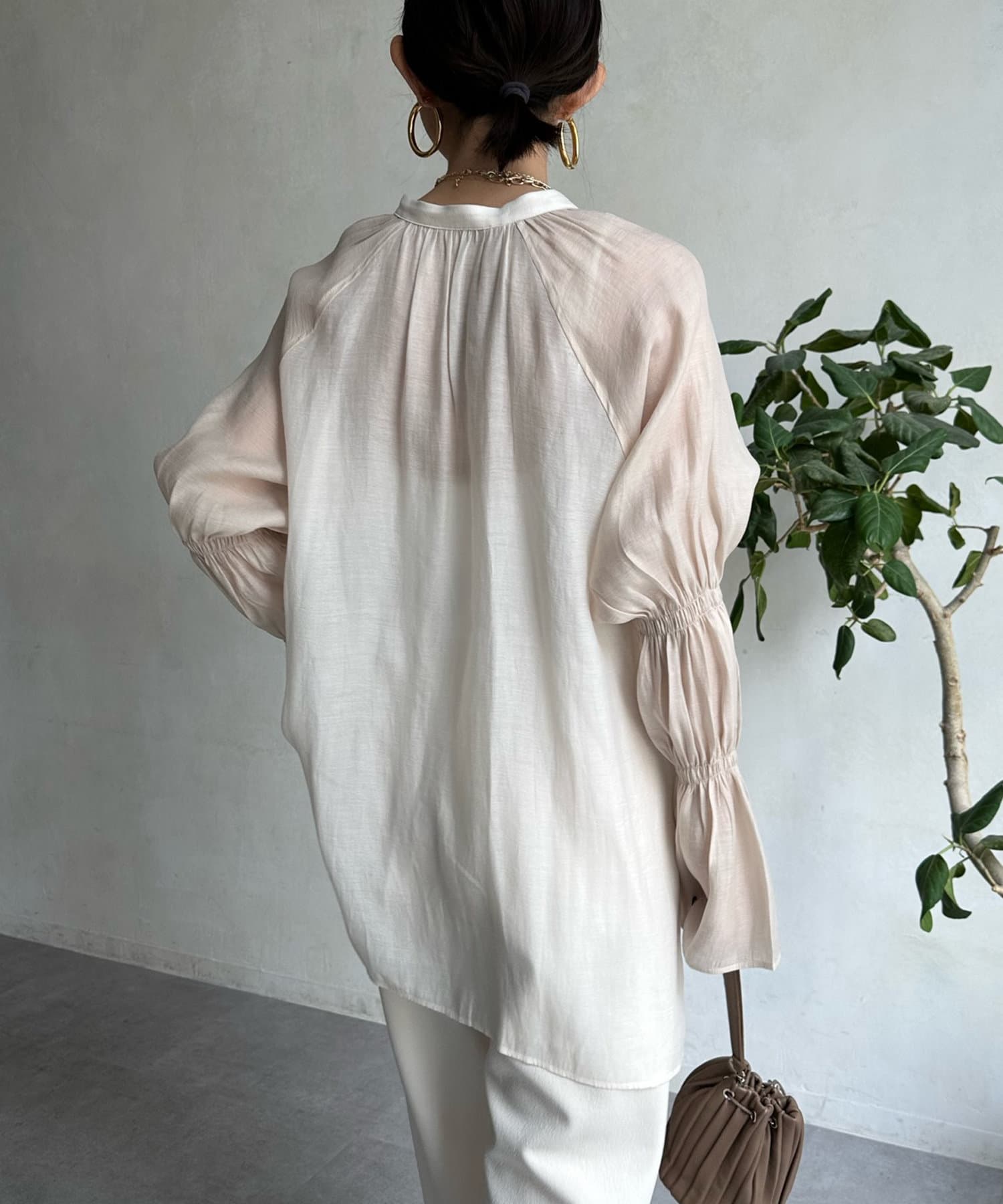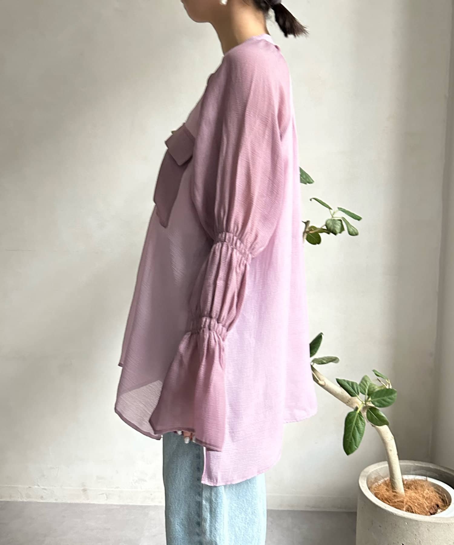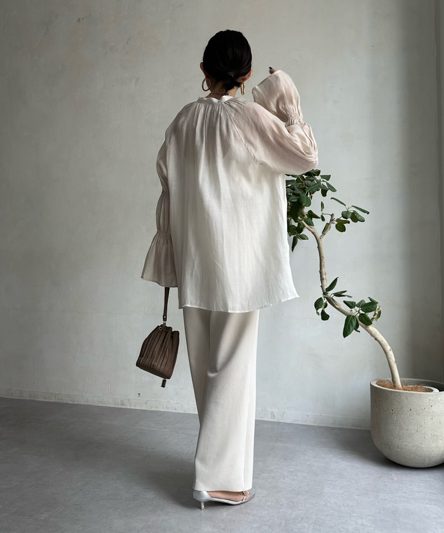ドロストスリーブと、程良い透け感のワッシャー生地で軽やかな印象を与えてくれます◎