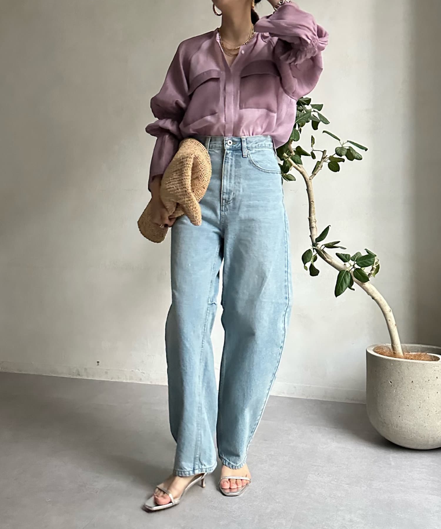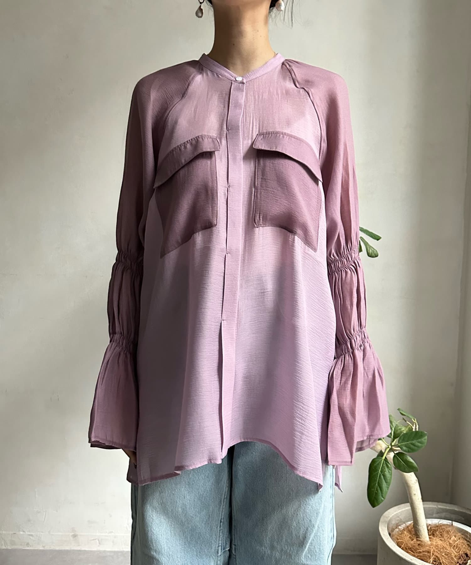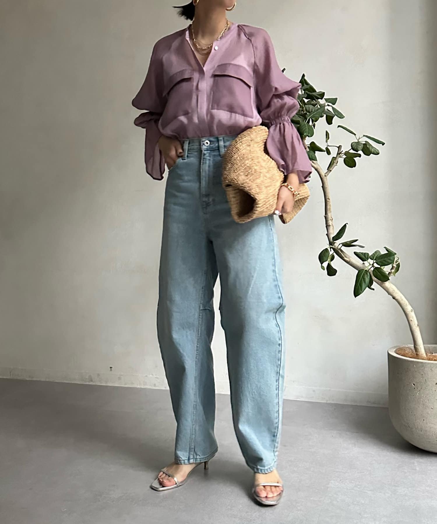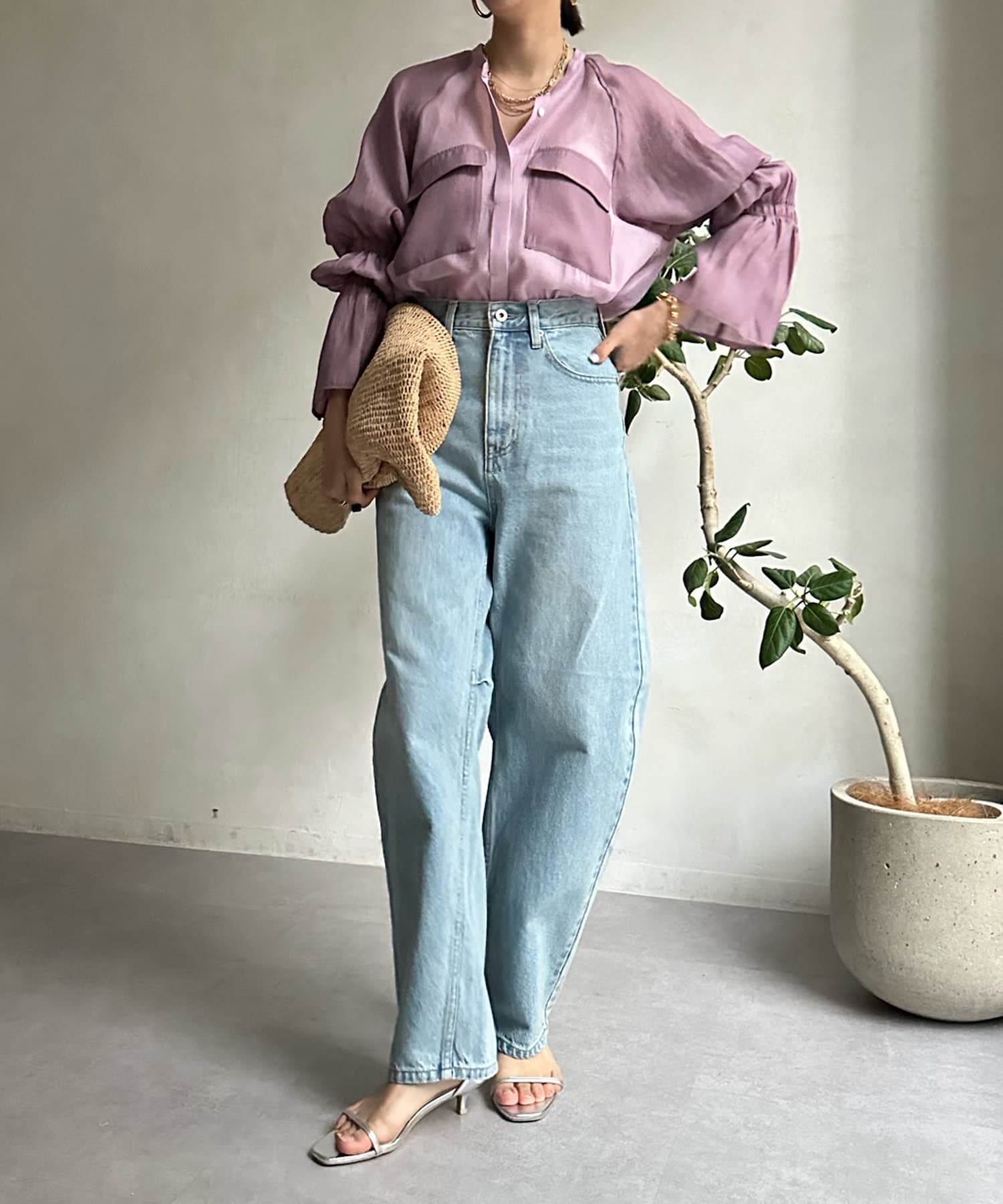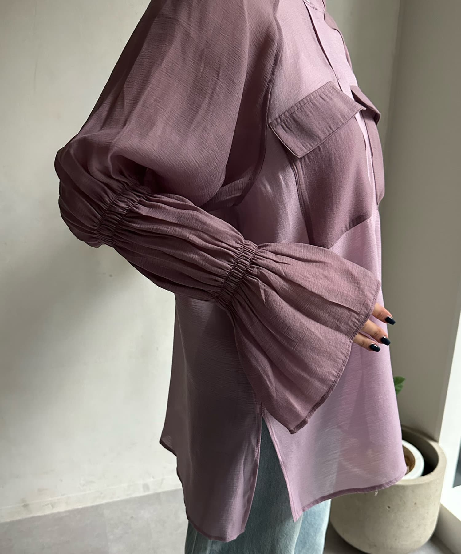 ドロストスリーブと、程良い透け感のワッシャー生地で軽やかな印象を与えてくれます◎