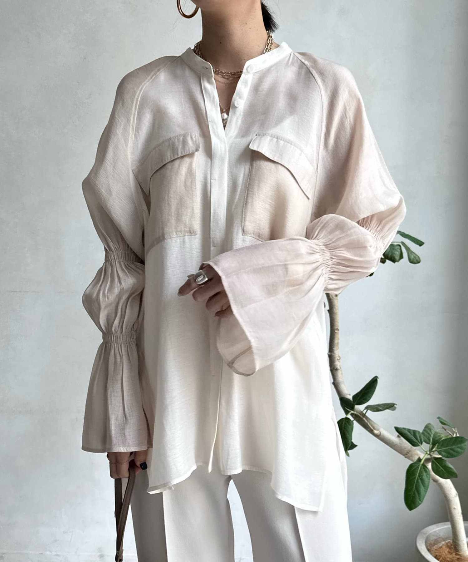 1枚で決まるシアー×バイカラーのトレンド要素が詰まったブラウスが登場しました。