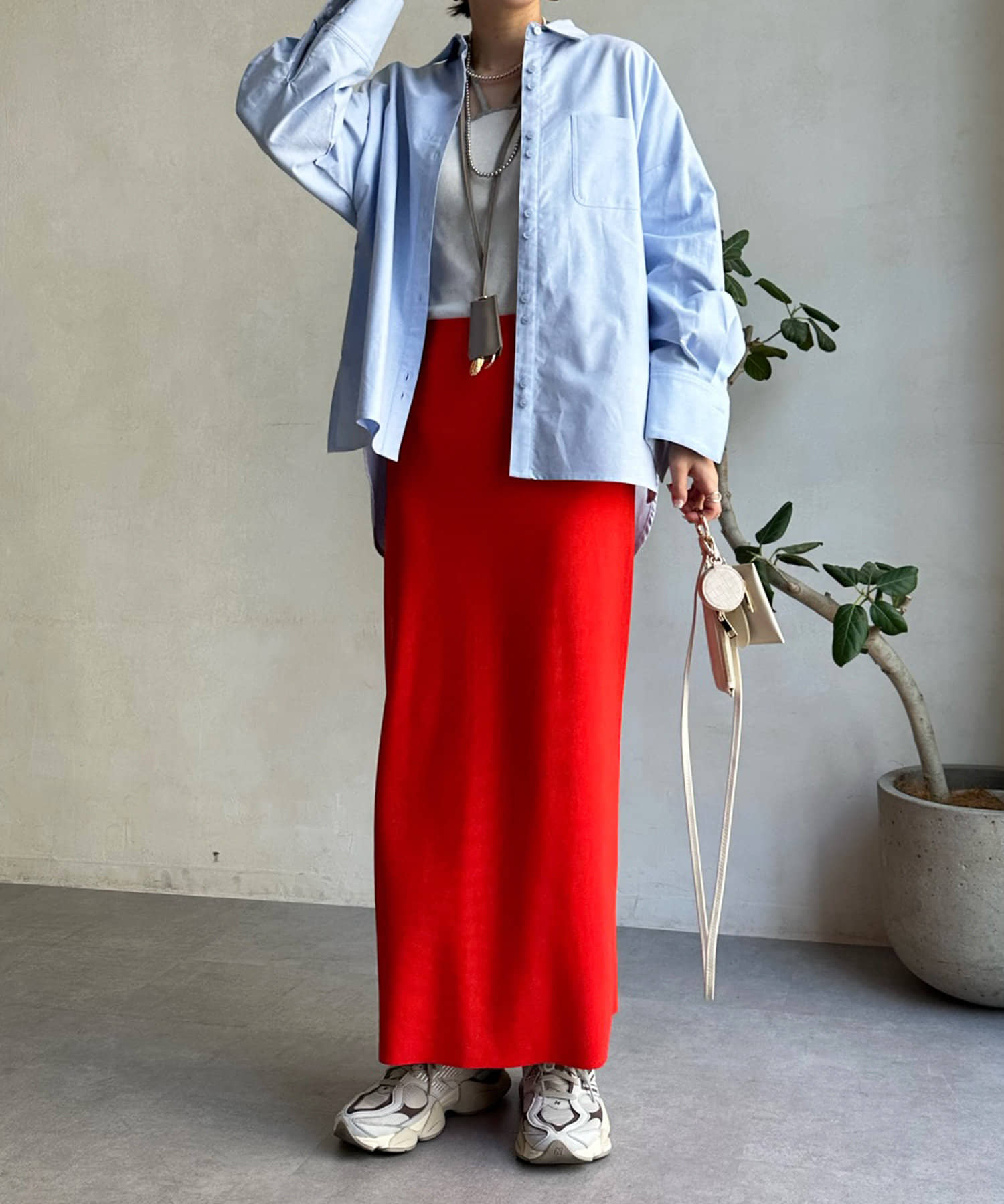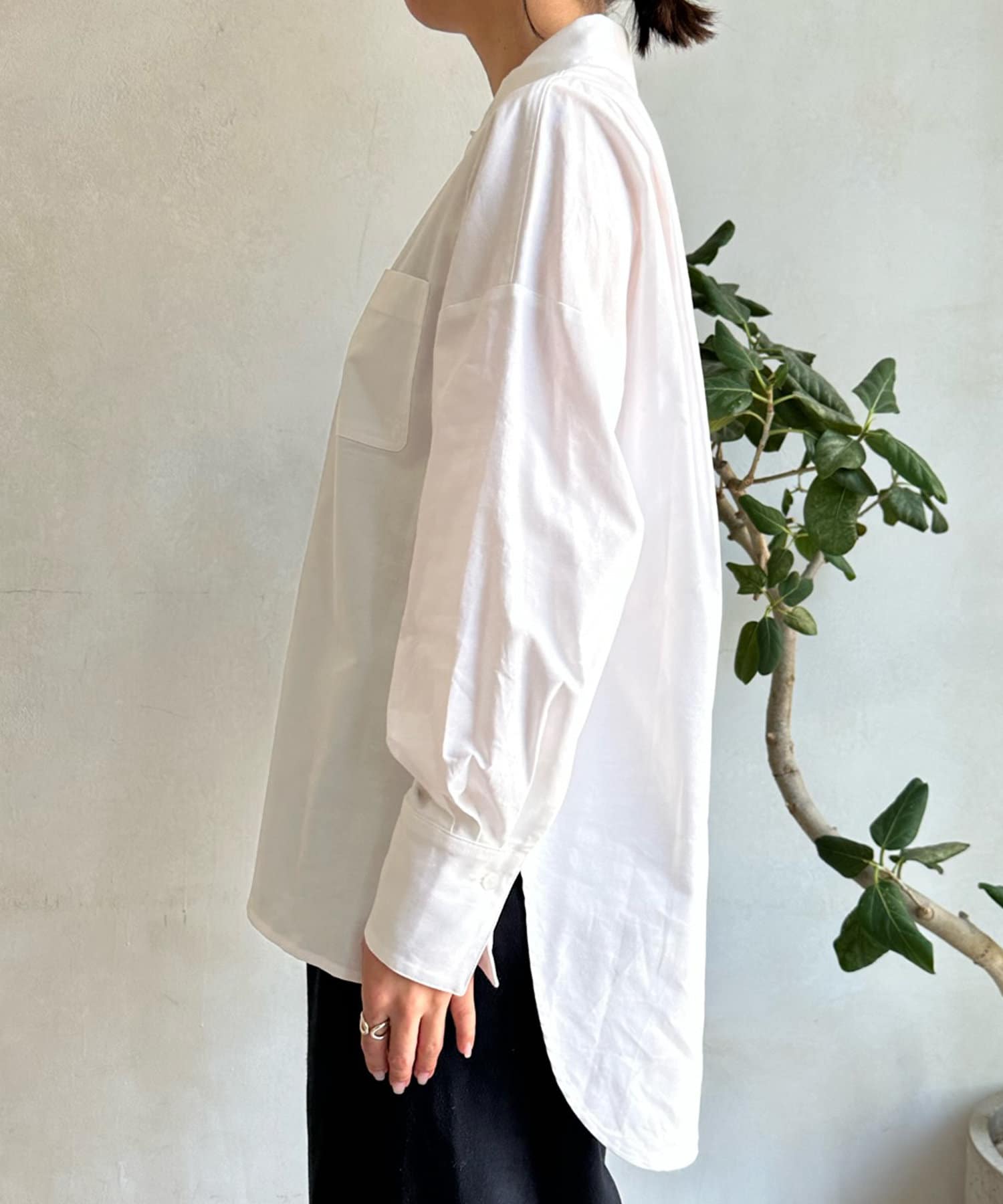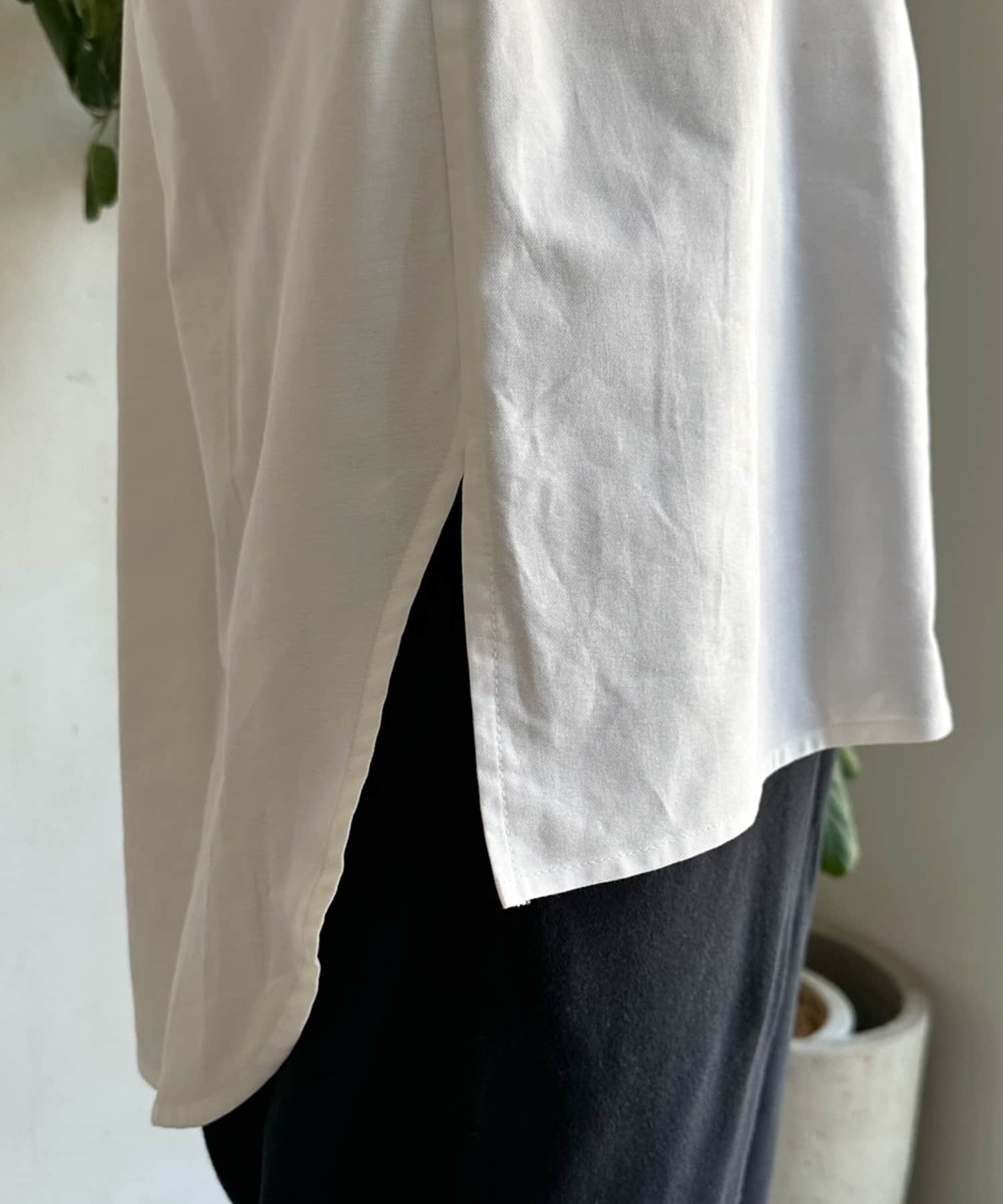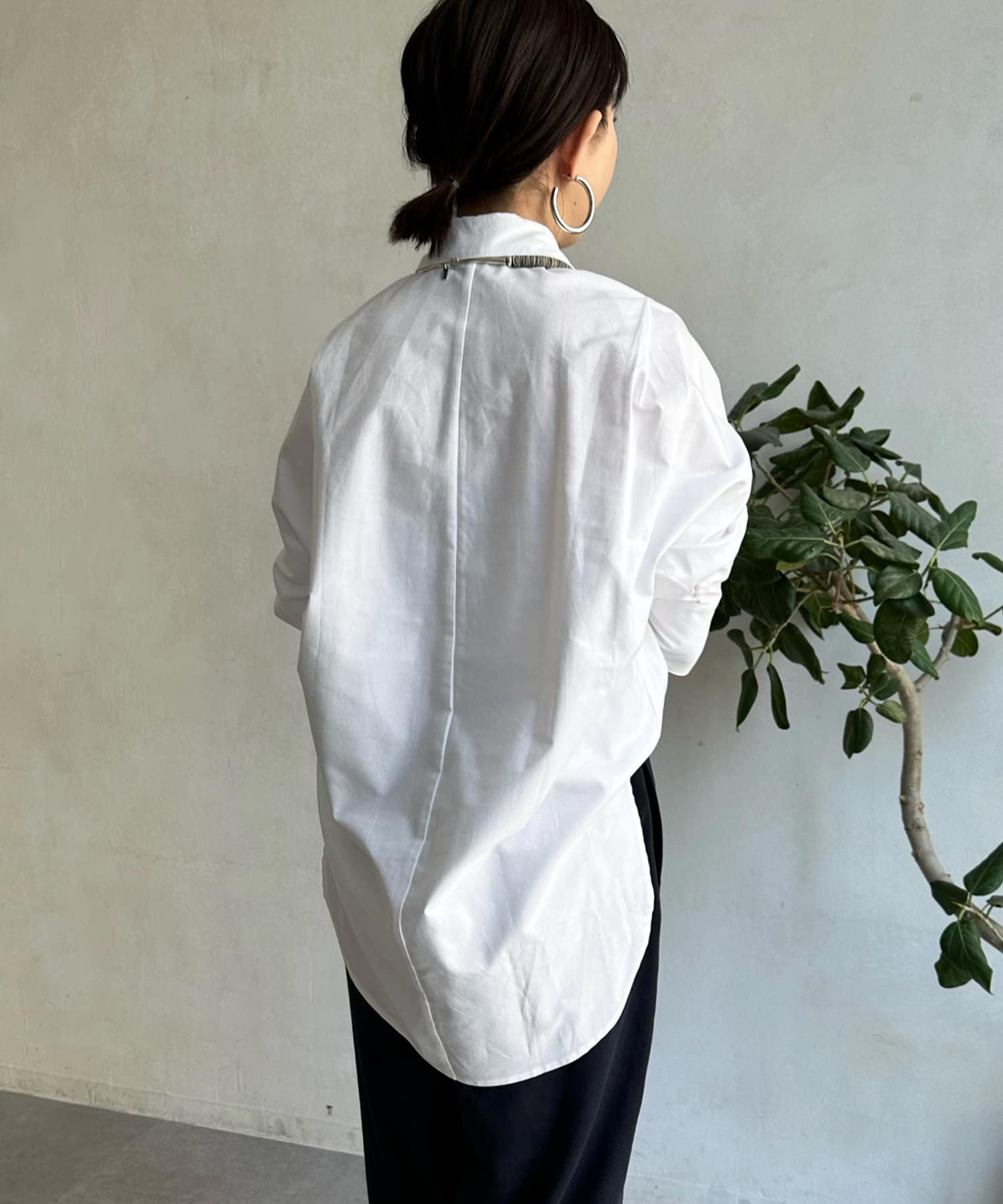 裾のカットを前後で変え、どこから見てもおしゃれ見えするこだわりのシルエットに。