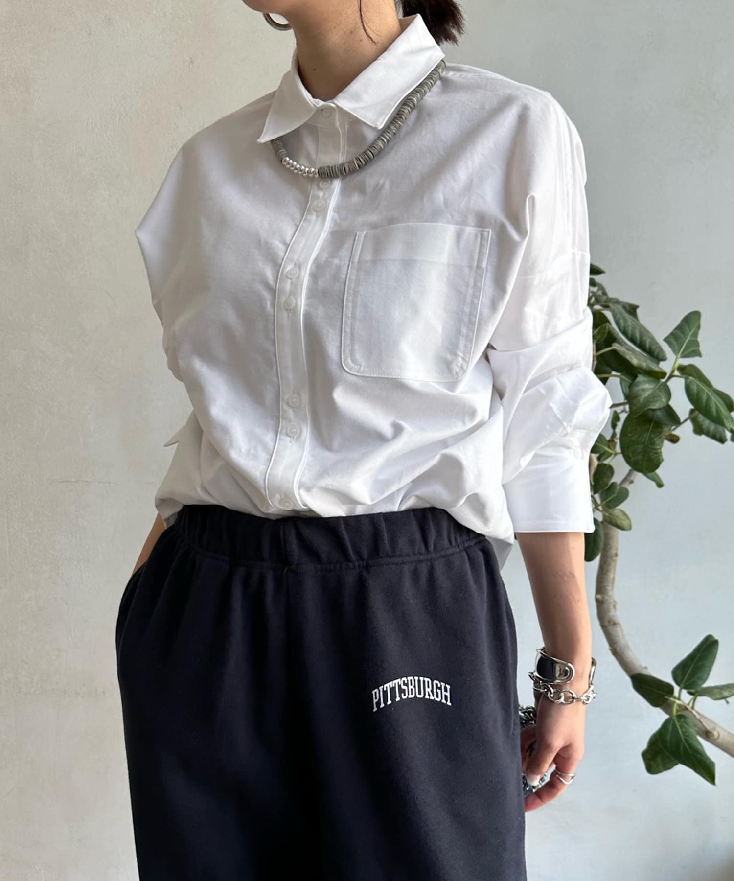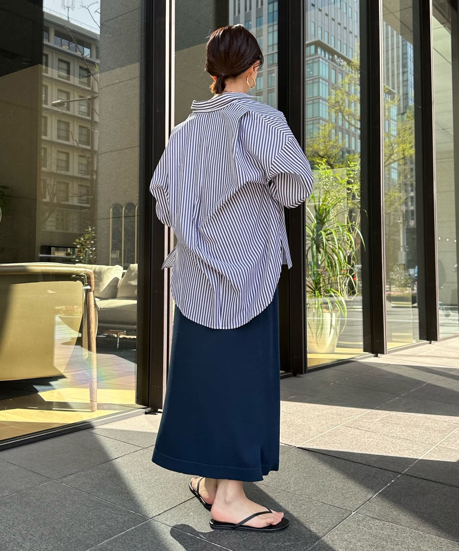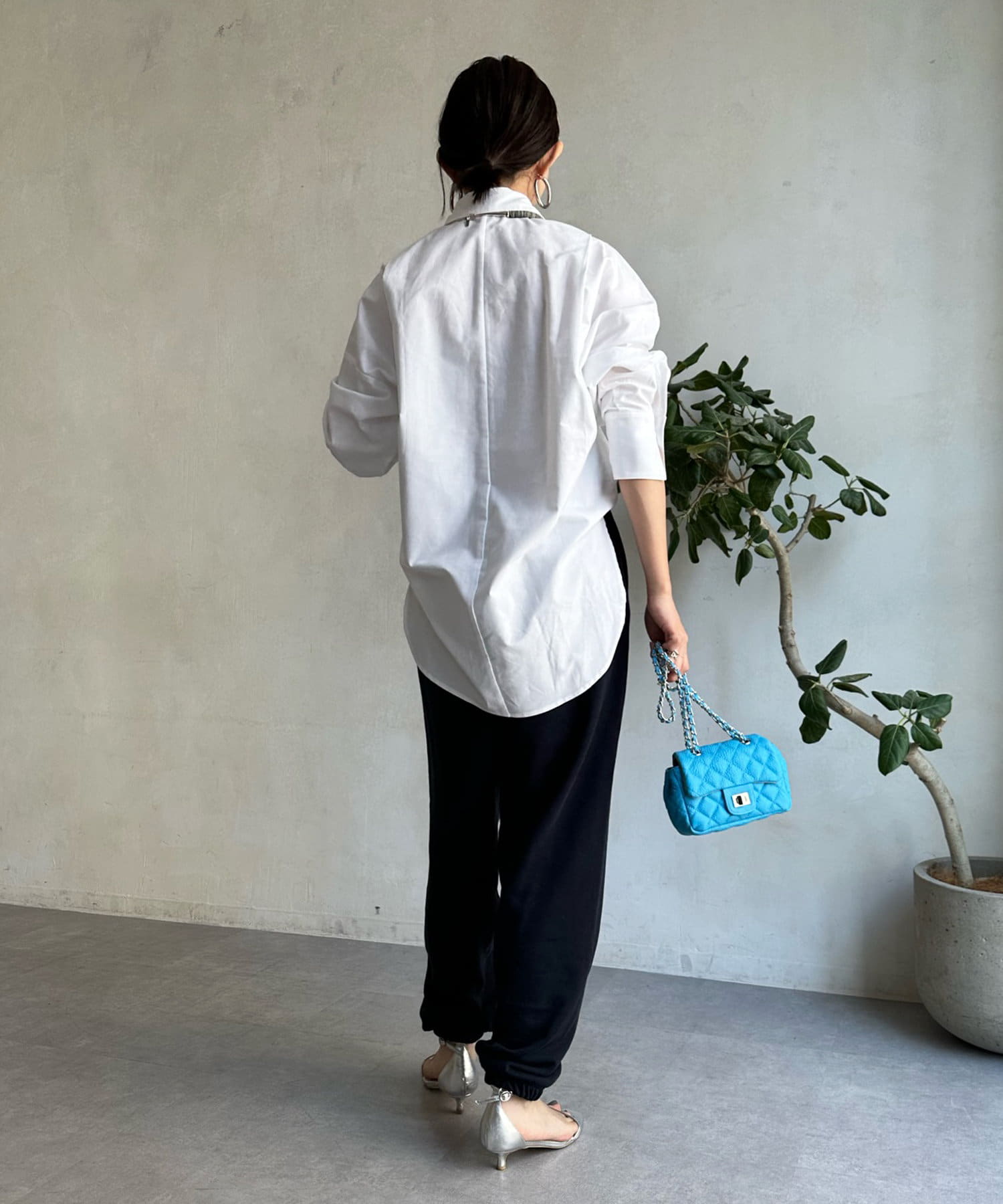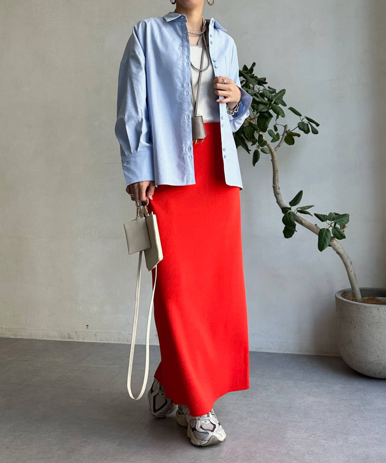 裾のカットを前後で変え、どこから見てもおしゃれ見えするこだわりのシルエットに。