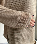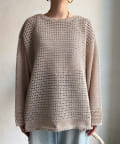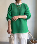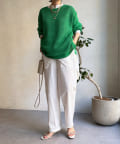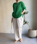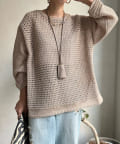 素材は擬痲加工した綿糸を使用し、麻のような清涼感のあるさらりとした肌触りに仕上げました。涼し気でざっくりとした編み地がナチュラルで、夏らしい印象をプラスしてくれます。