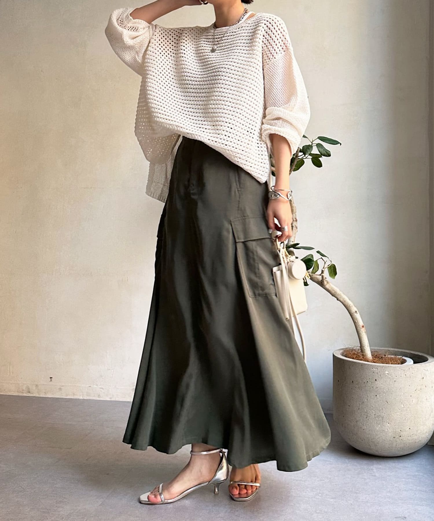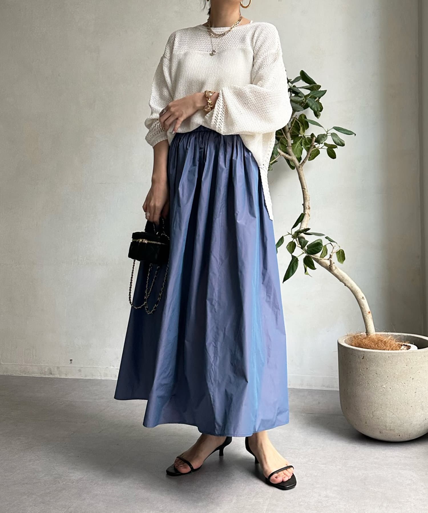 ブラウス、カットソー合わせや、キャミやタンクなどインナー次第でガラッと印象を変えられるので、春から夏にかけてロングシーズン大活躍間違いなし!◎