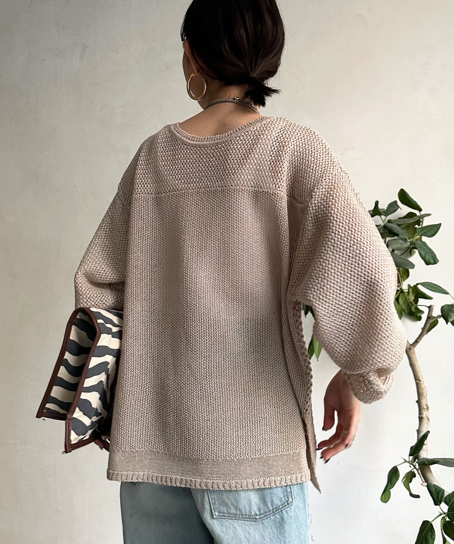 編み地切り替えを所々に施し、表情感のある印象に。