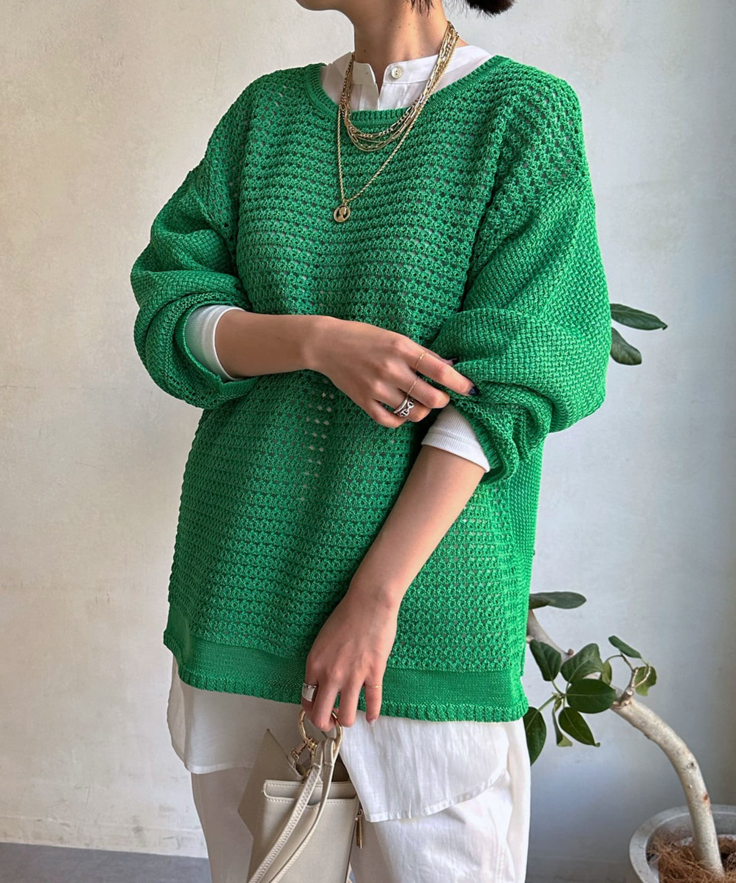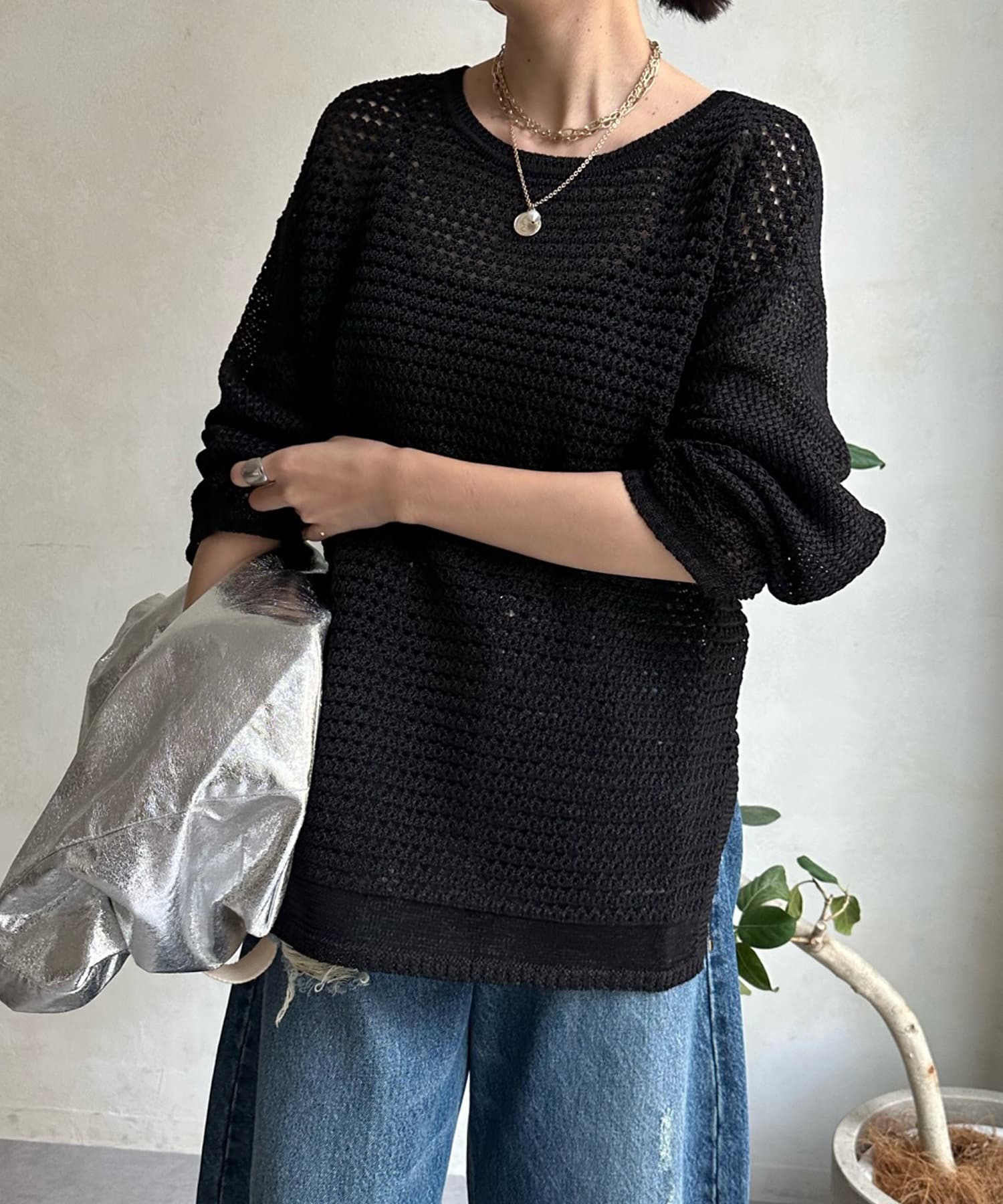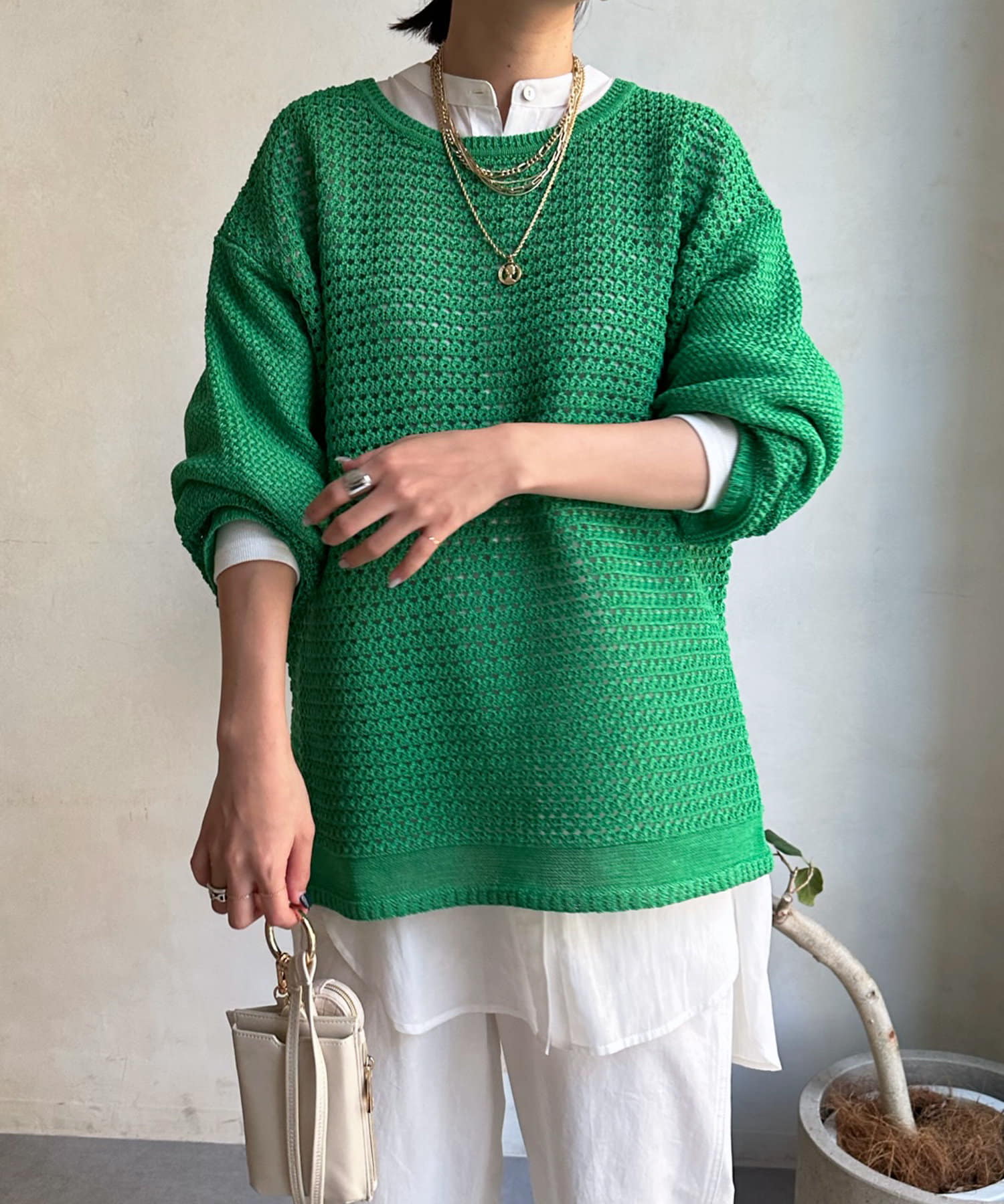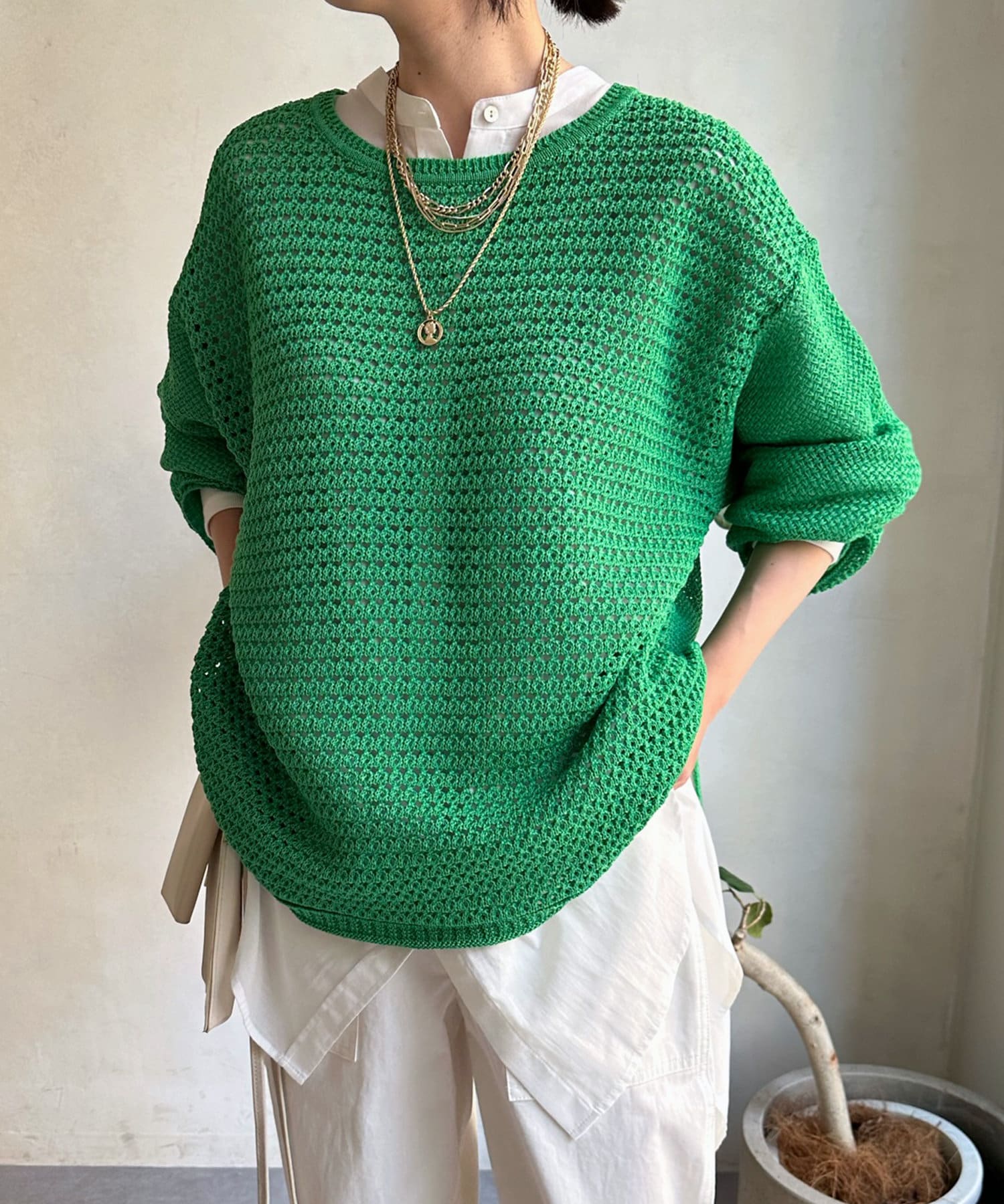 レイヤードが楽しいメッシュ素材のプルオーバー。