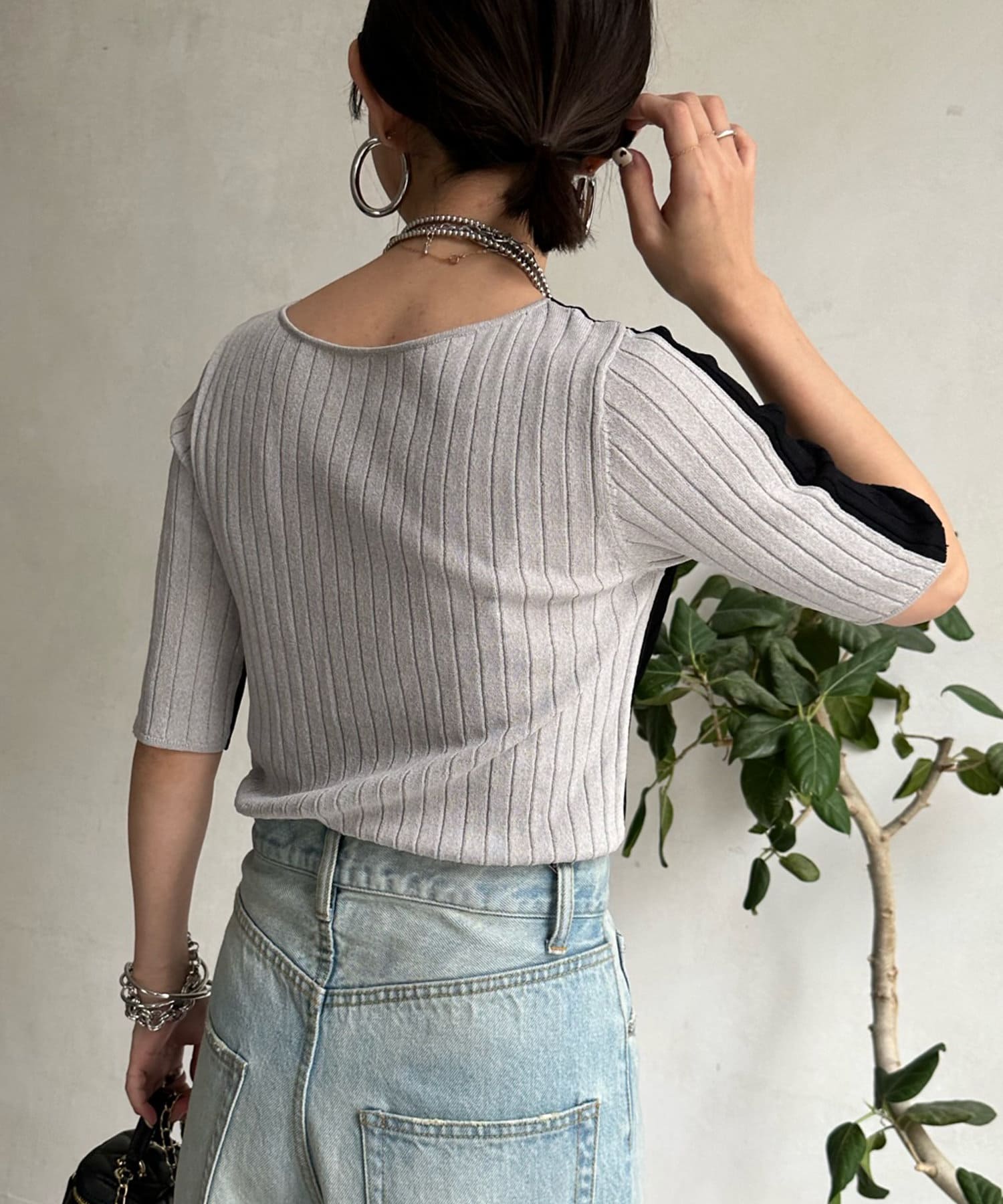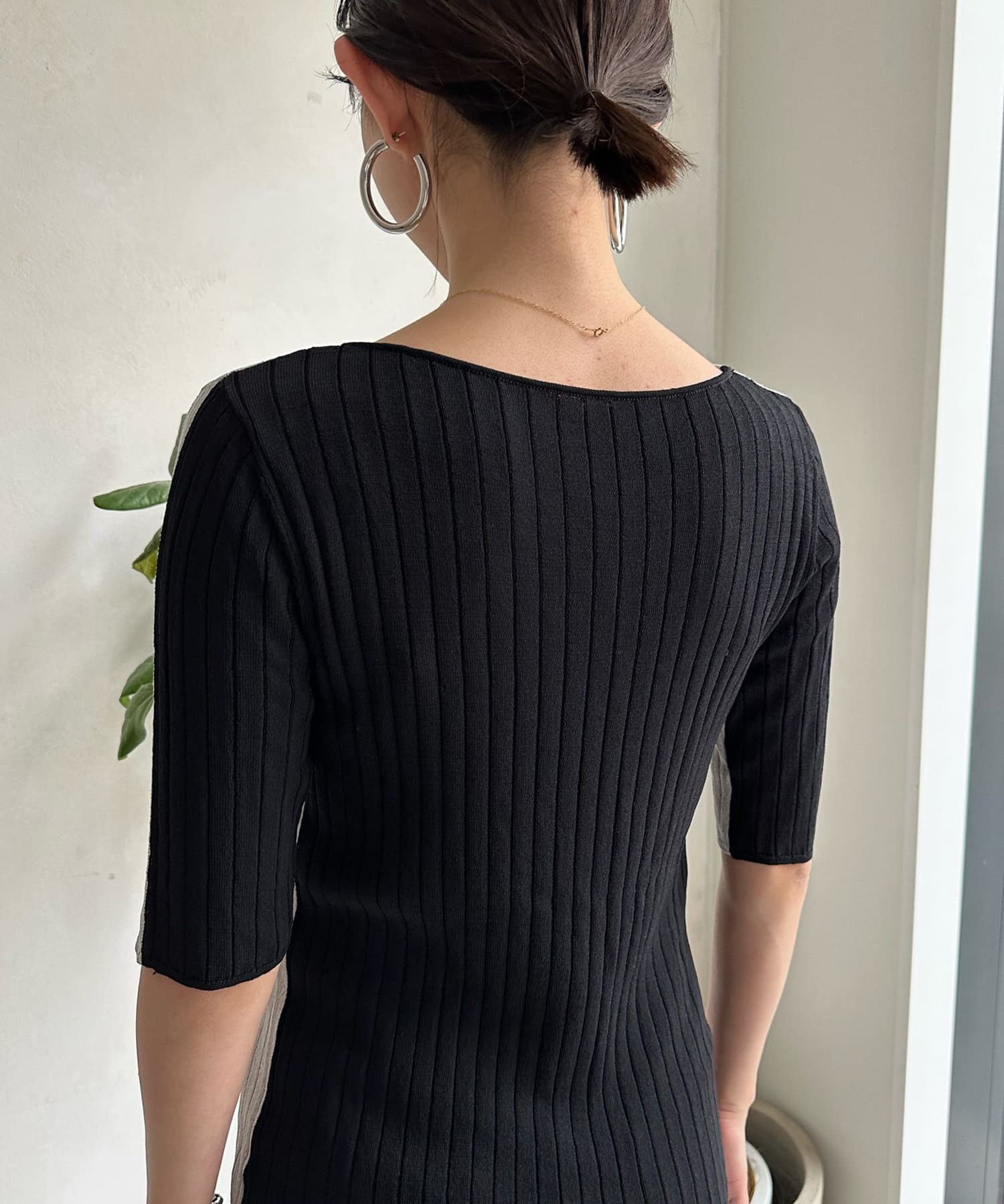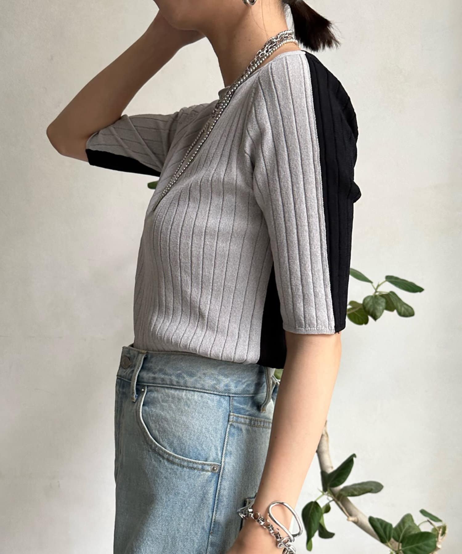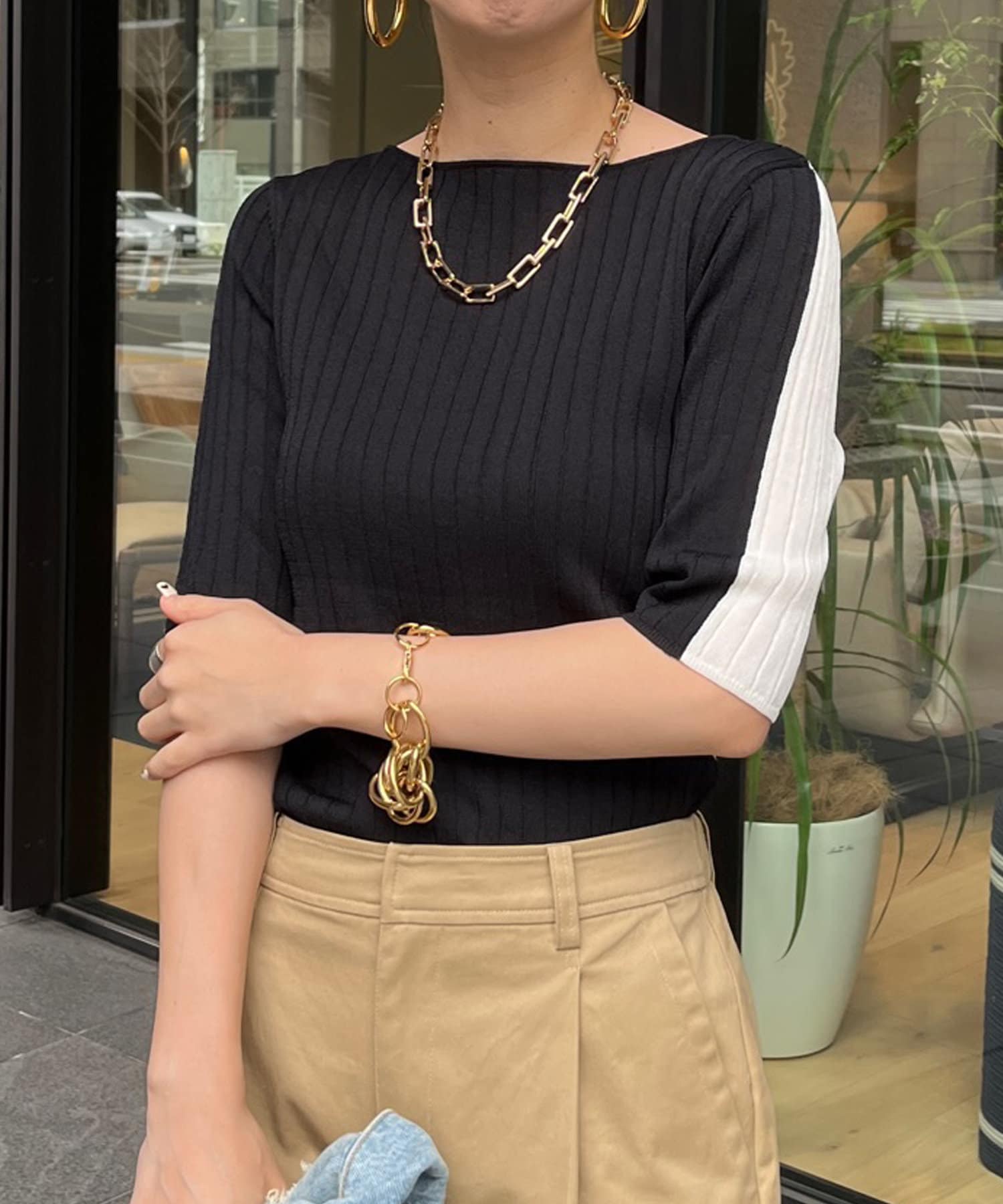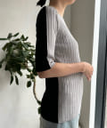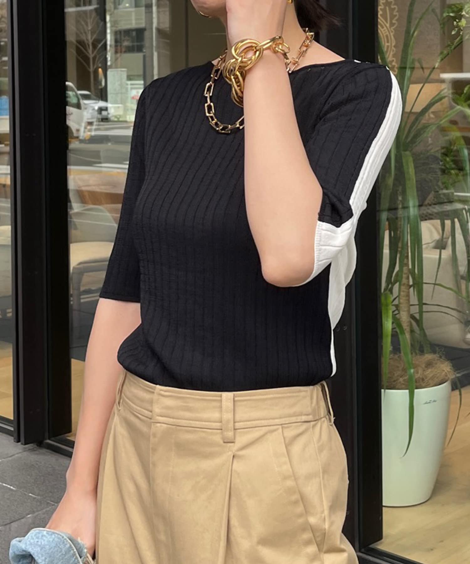 配色デザインがアクセントのデイリー使いにおすすめの5分袖リブニット。