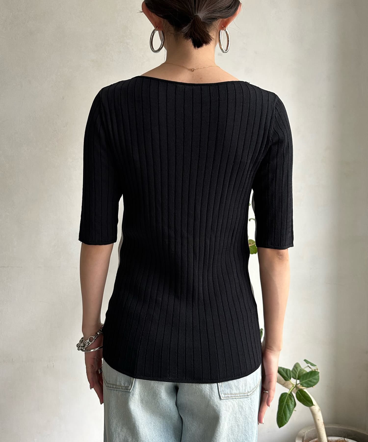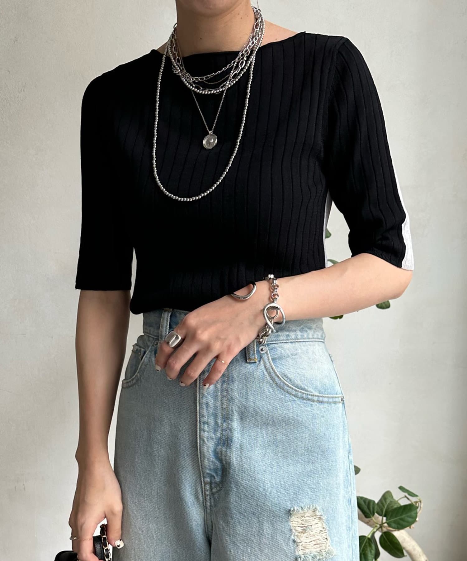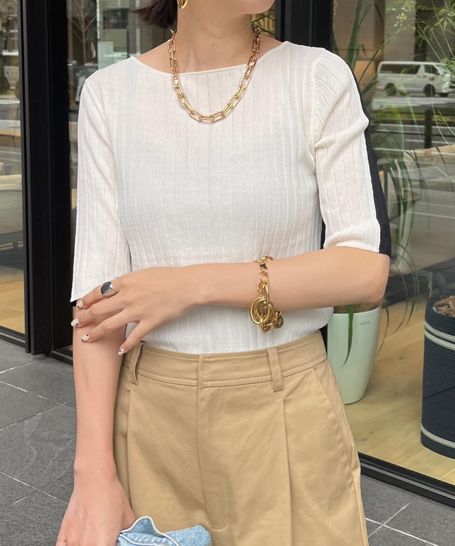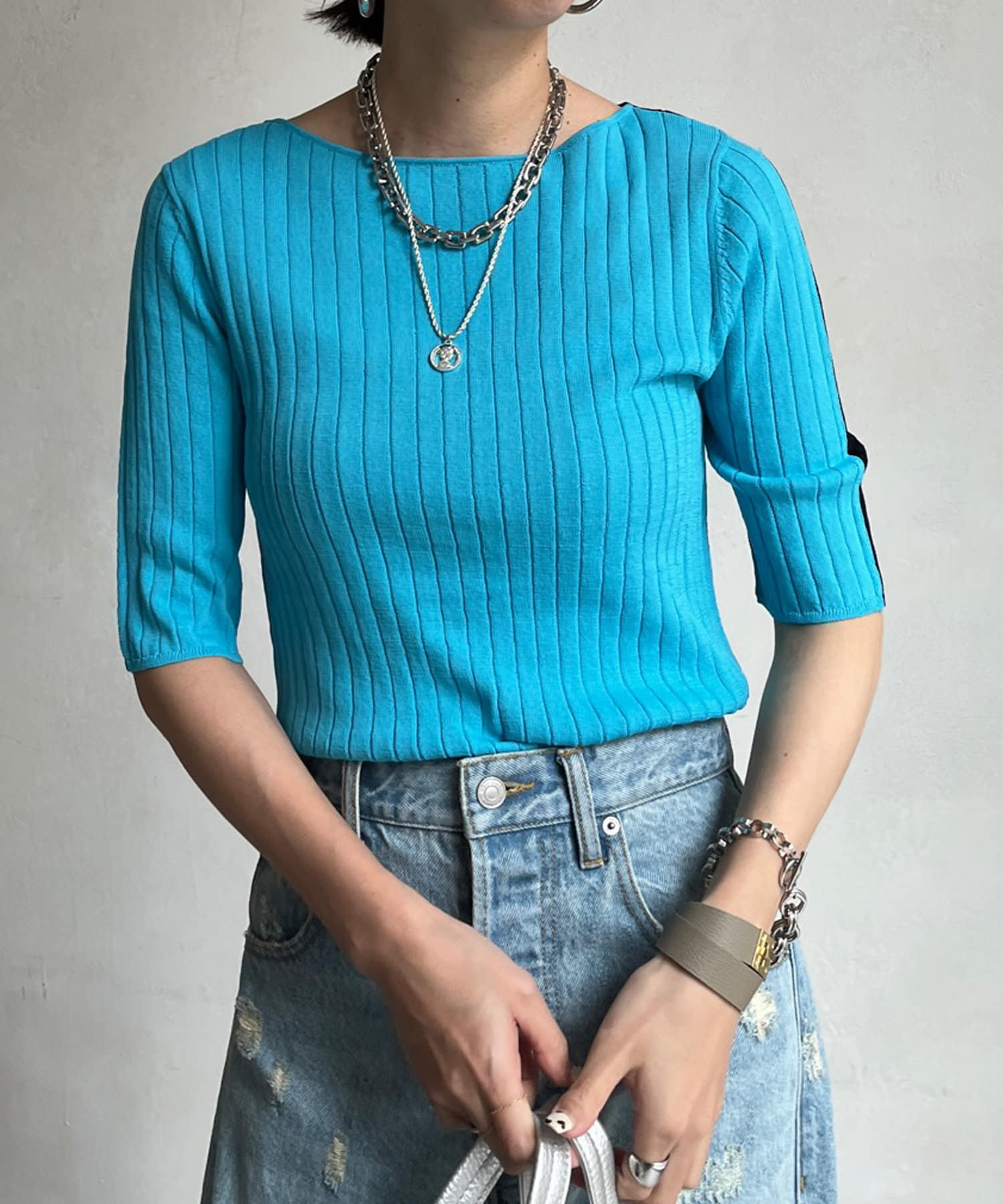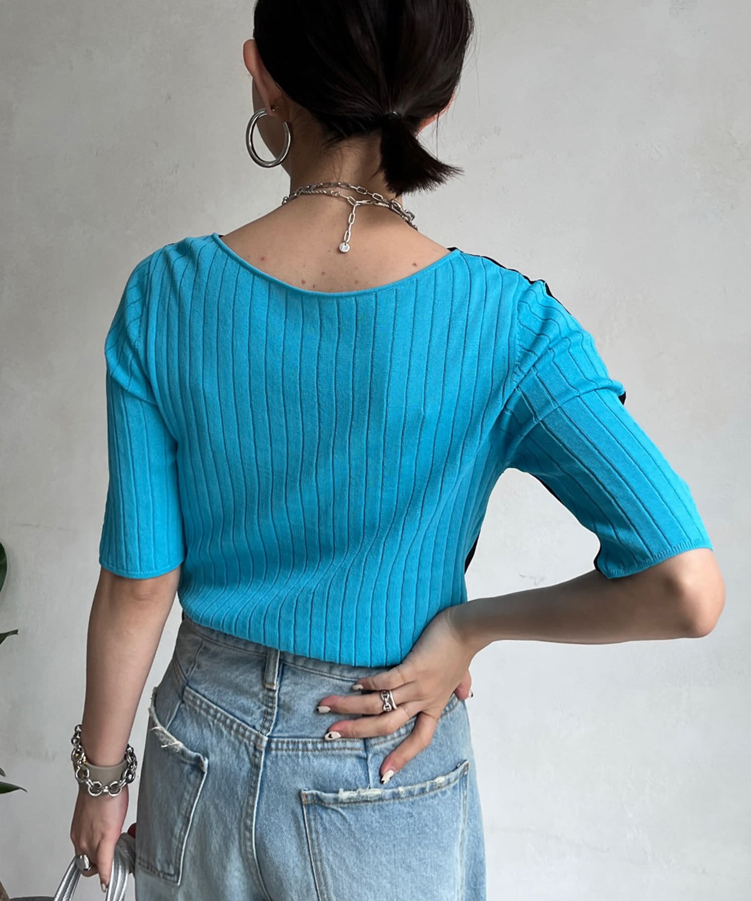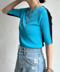 配色デザインがアクセントのデイリー使いにおすすめの5分袖リブニット。