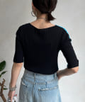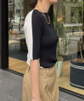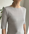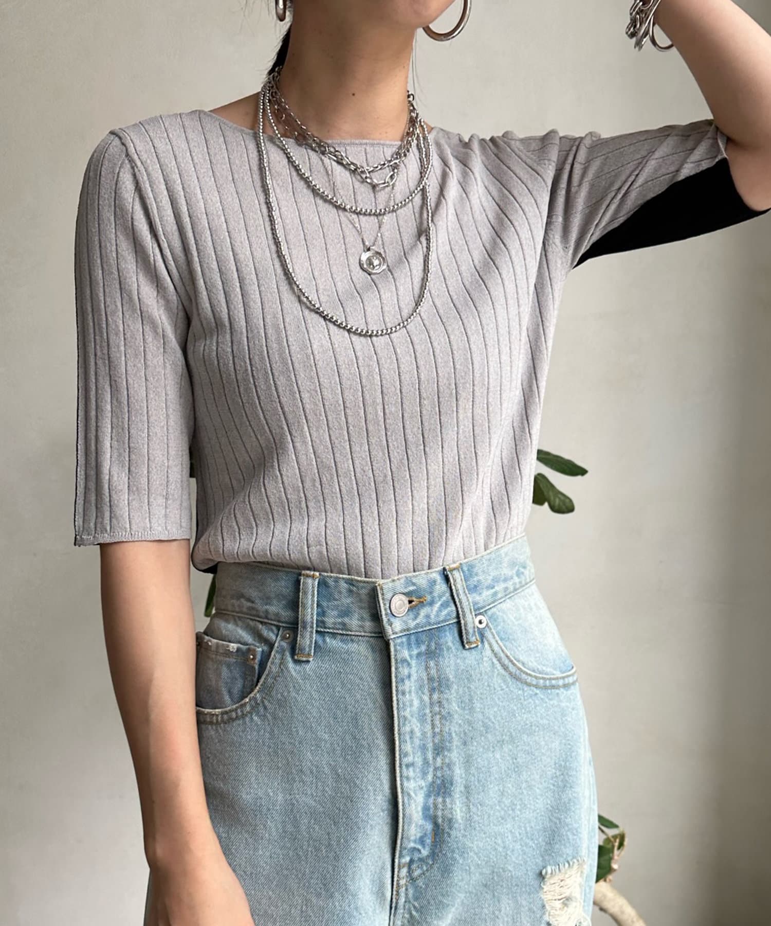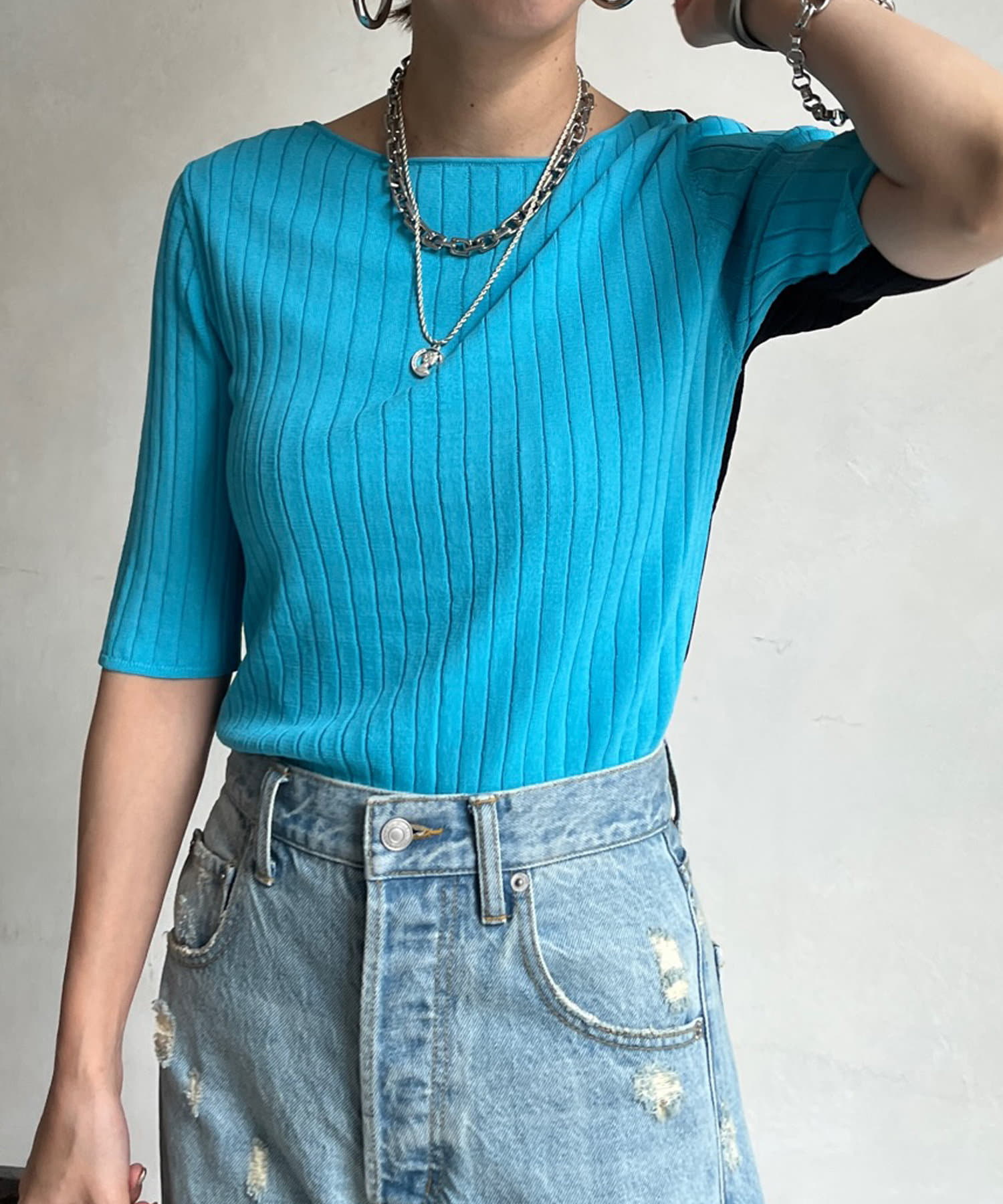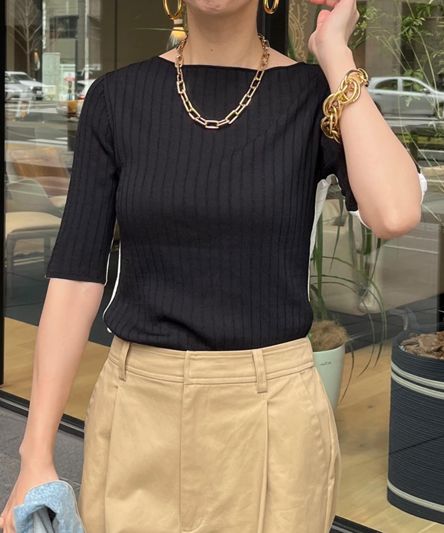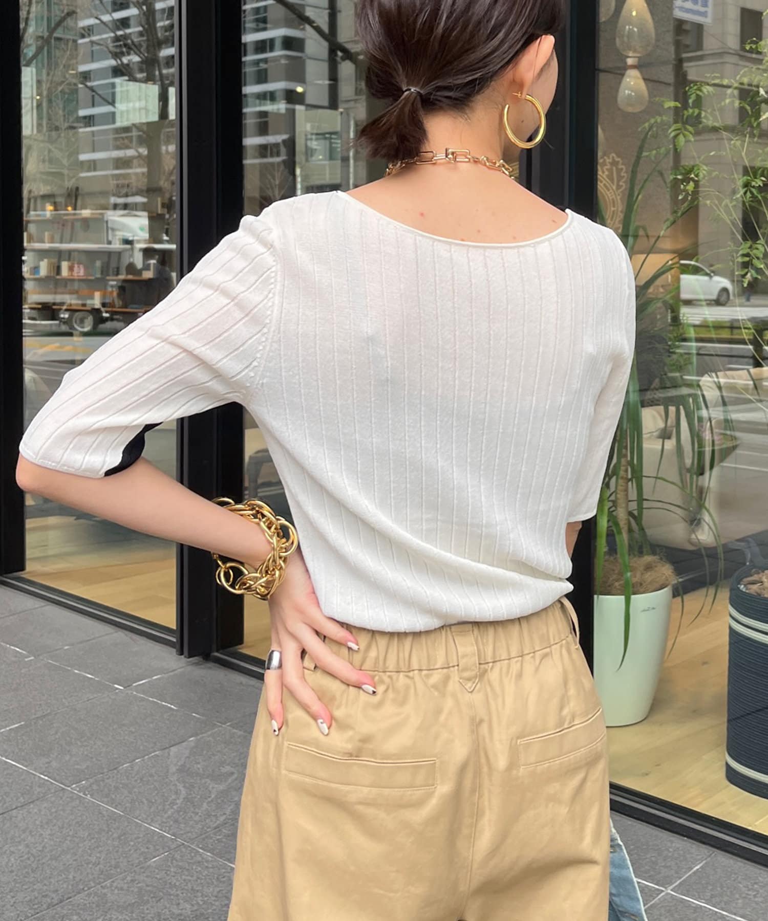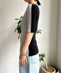 配色デザインがアクセントのデイリー使いにおすすめの5分袖リブニット。