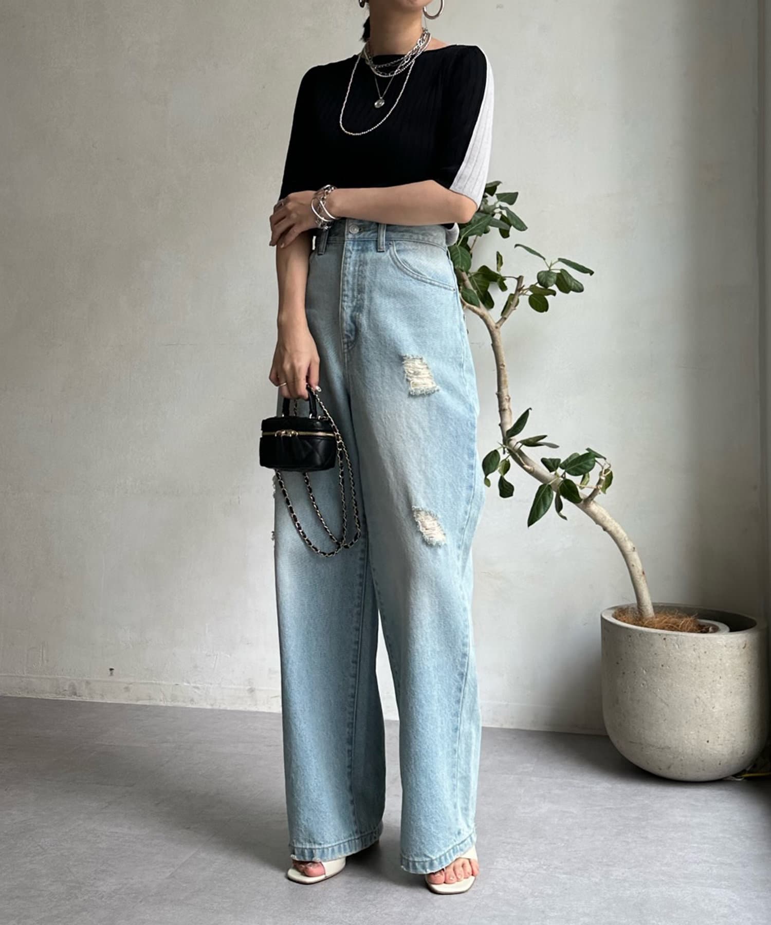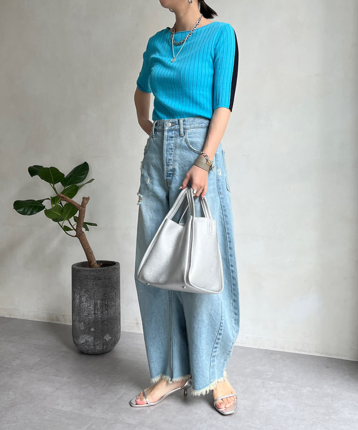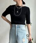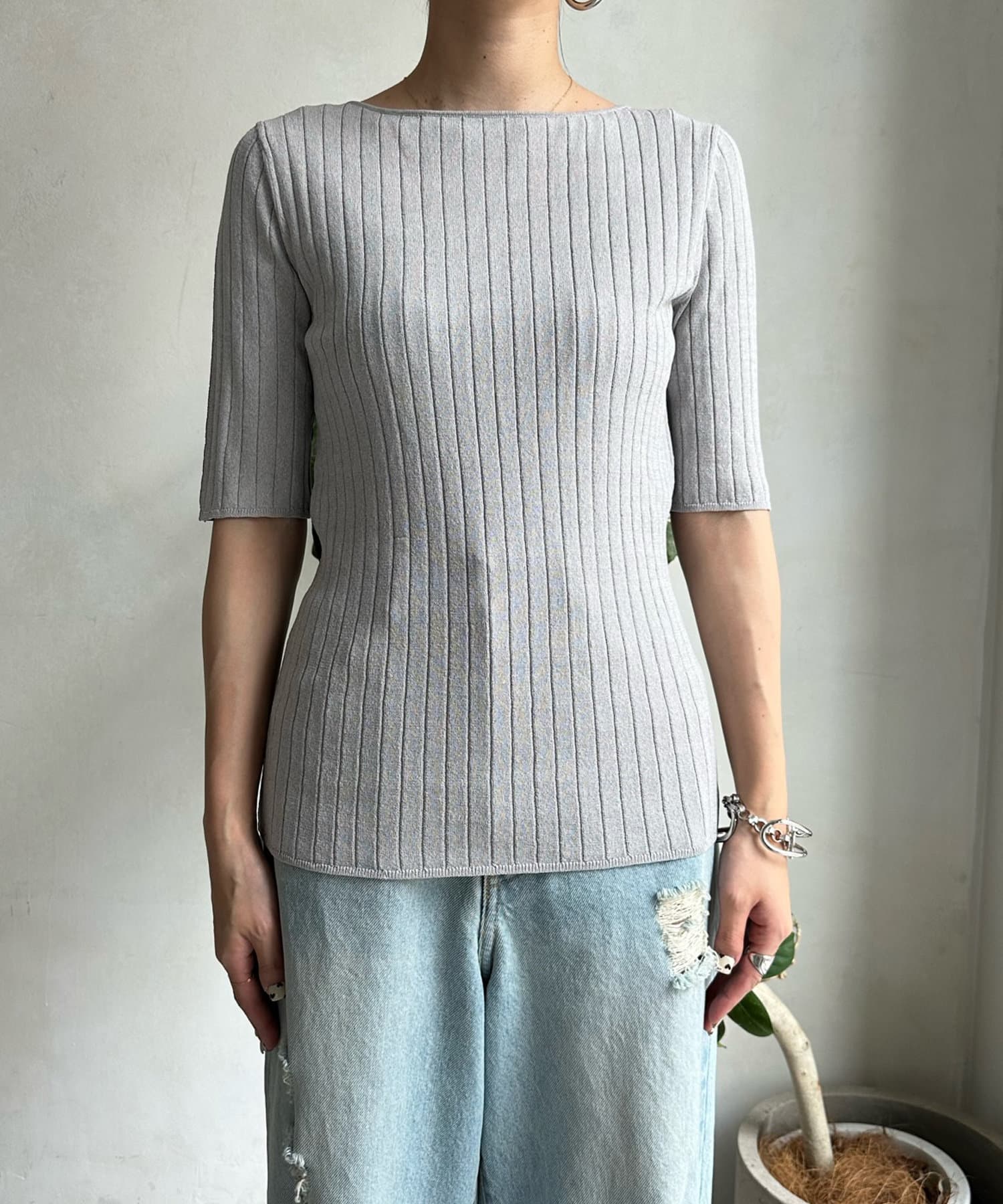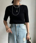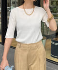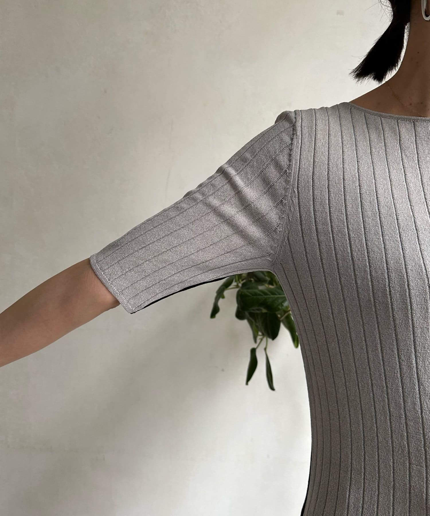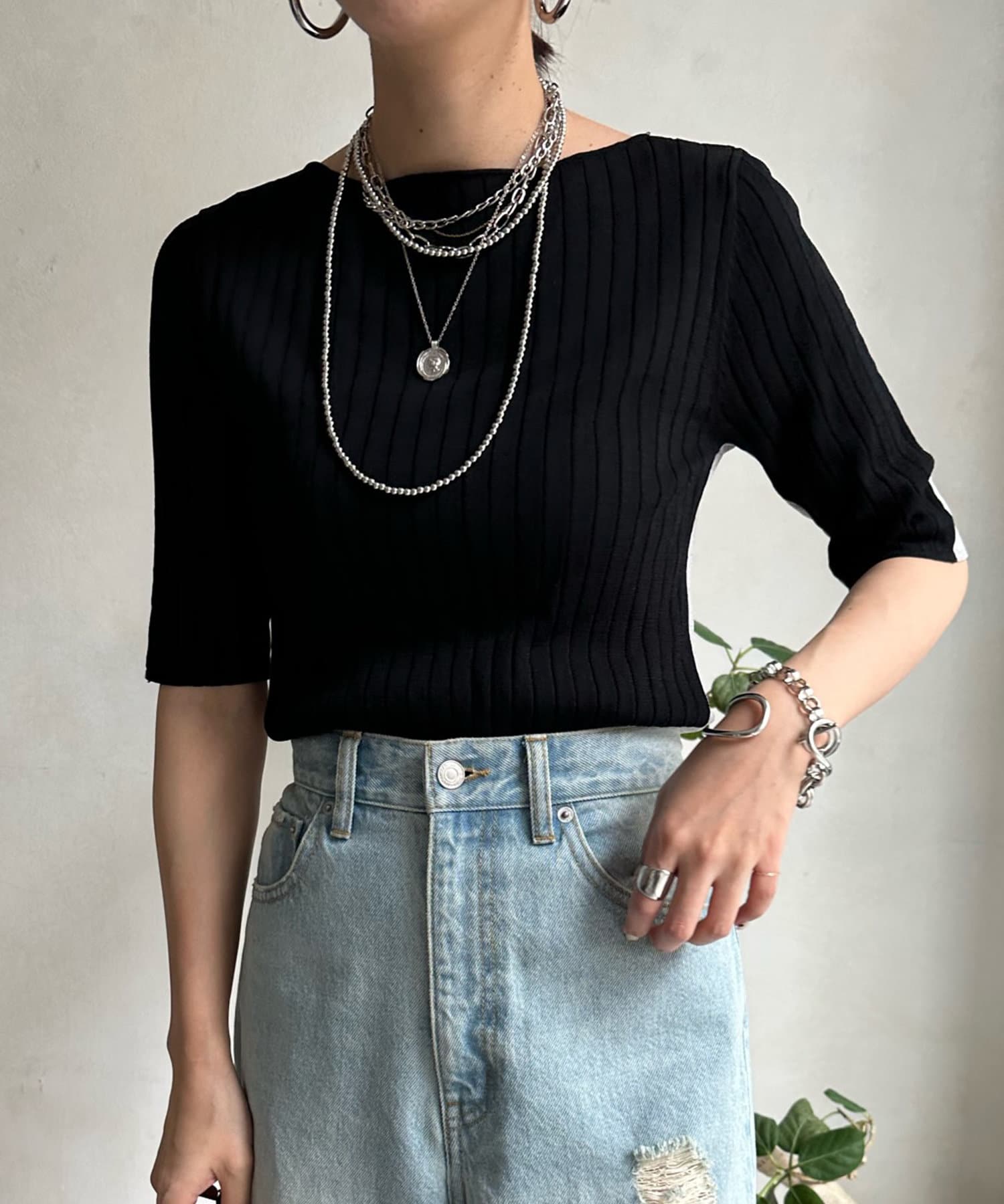 配色デザインがアクセントのデイリー使いにおすすめの5分袖リブニット。