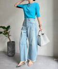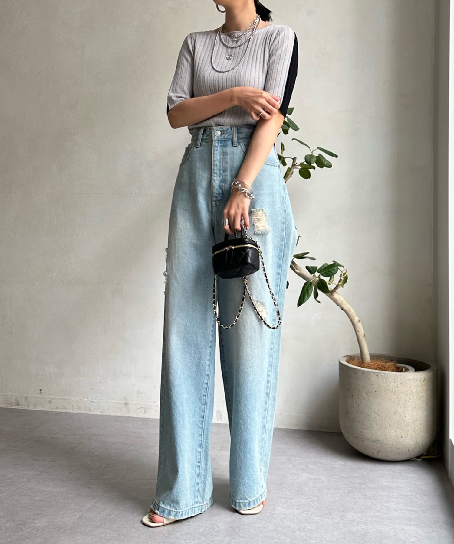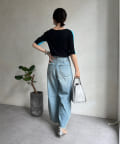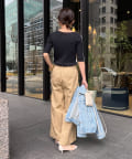 カラーによって違う配色でメリハリをつけており、透け感のない生地感ながら程よくボディラインにフィットする細身のシルエットで着心地ばっちりです〇