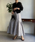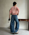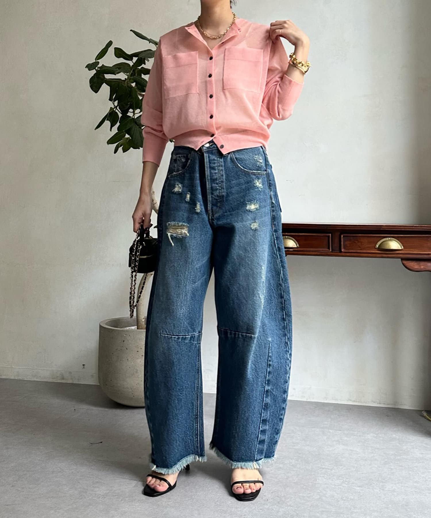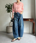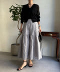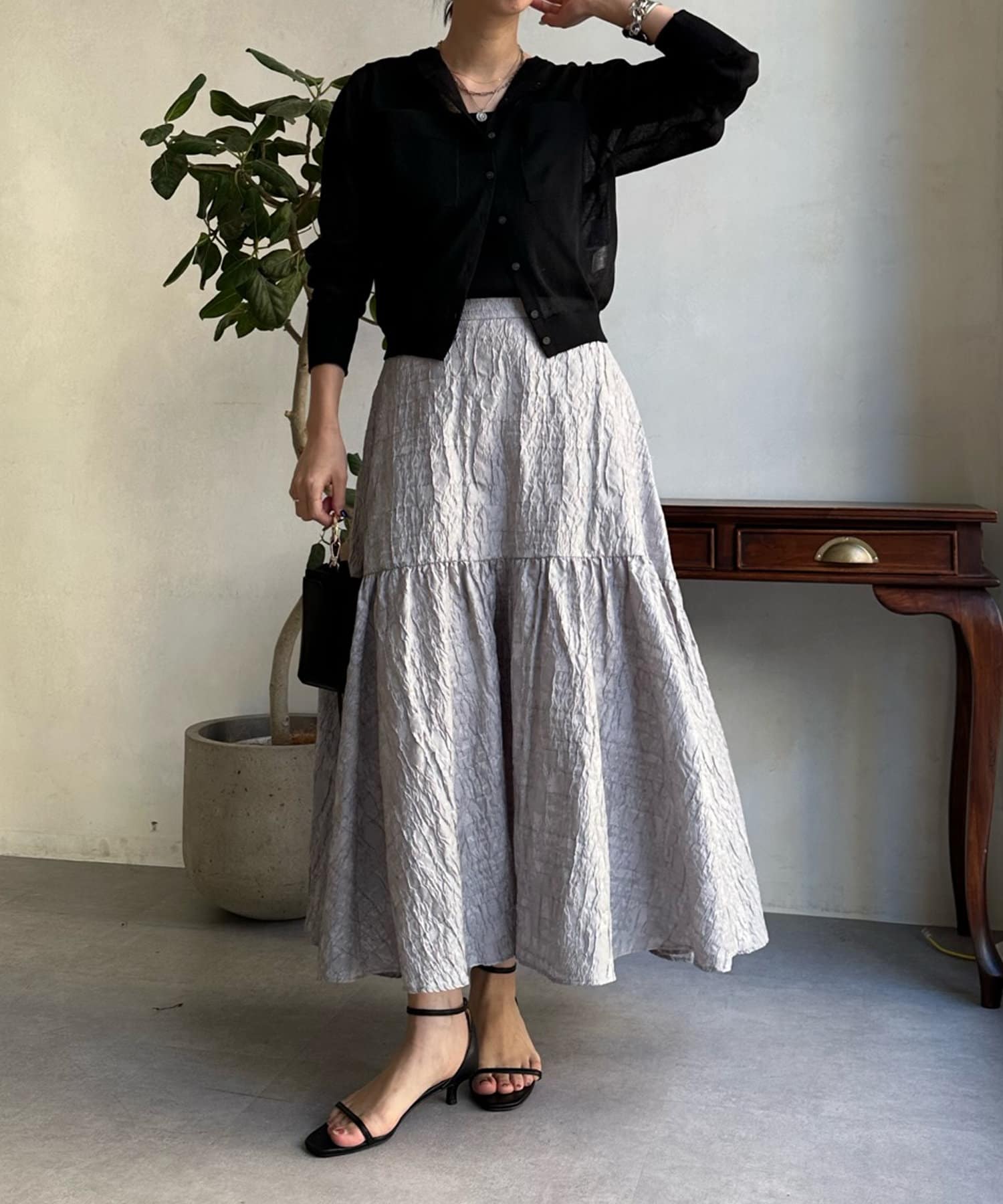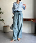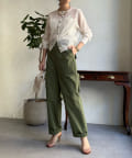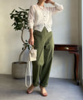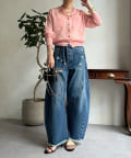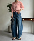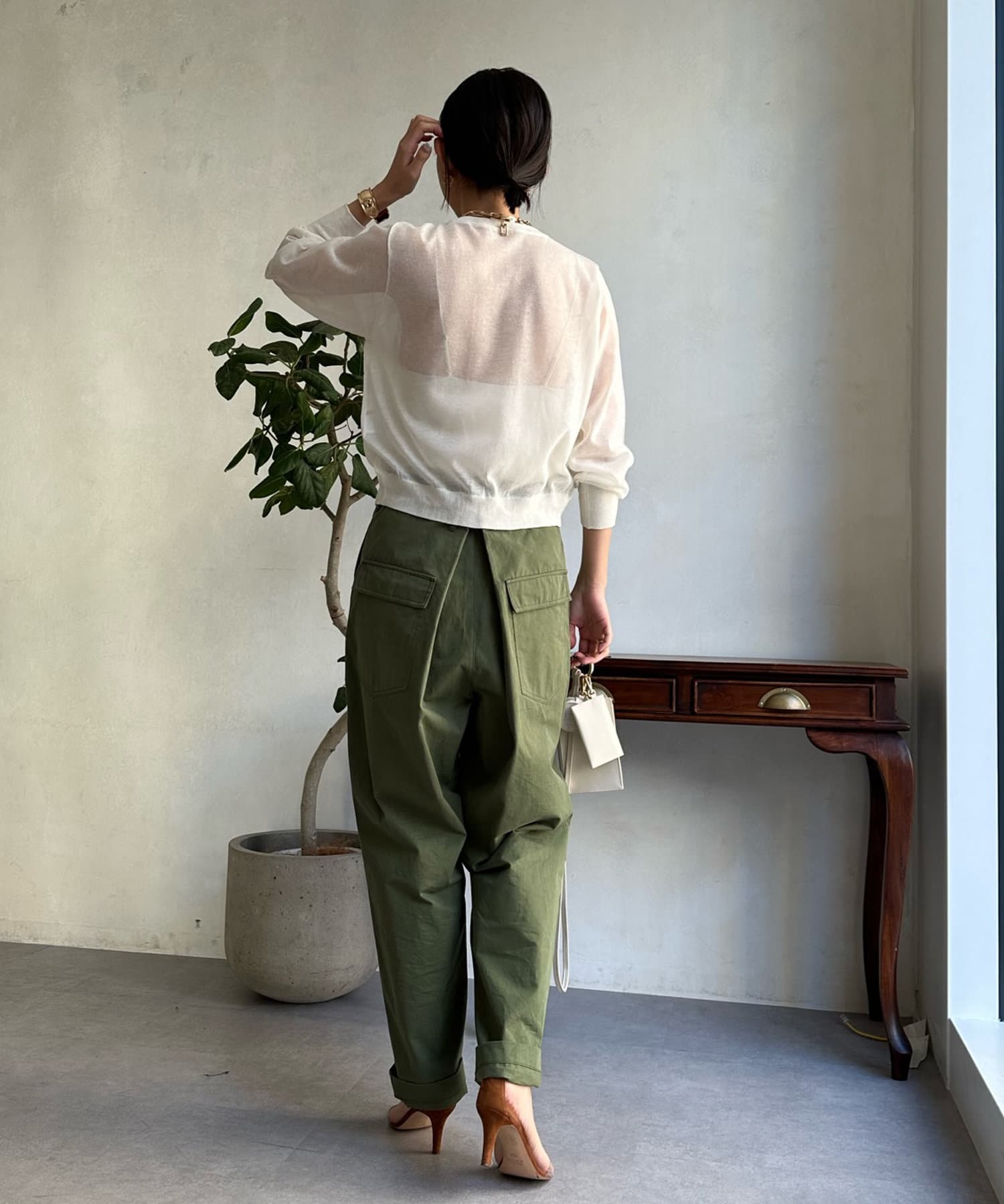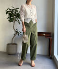 丈が短めなので、ボトムスは組み合わせ自在です。パンツスタイルでカジュアルに、フレアスカートでフェミニンにも〇