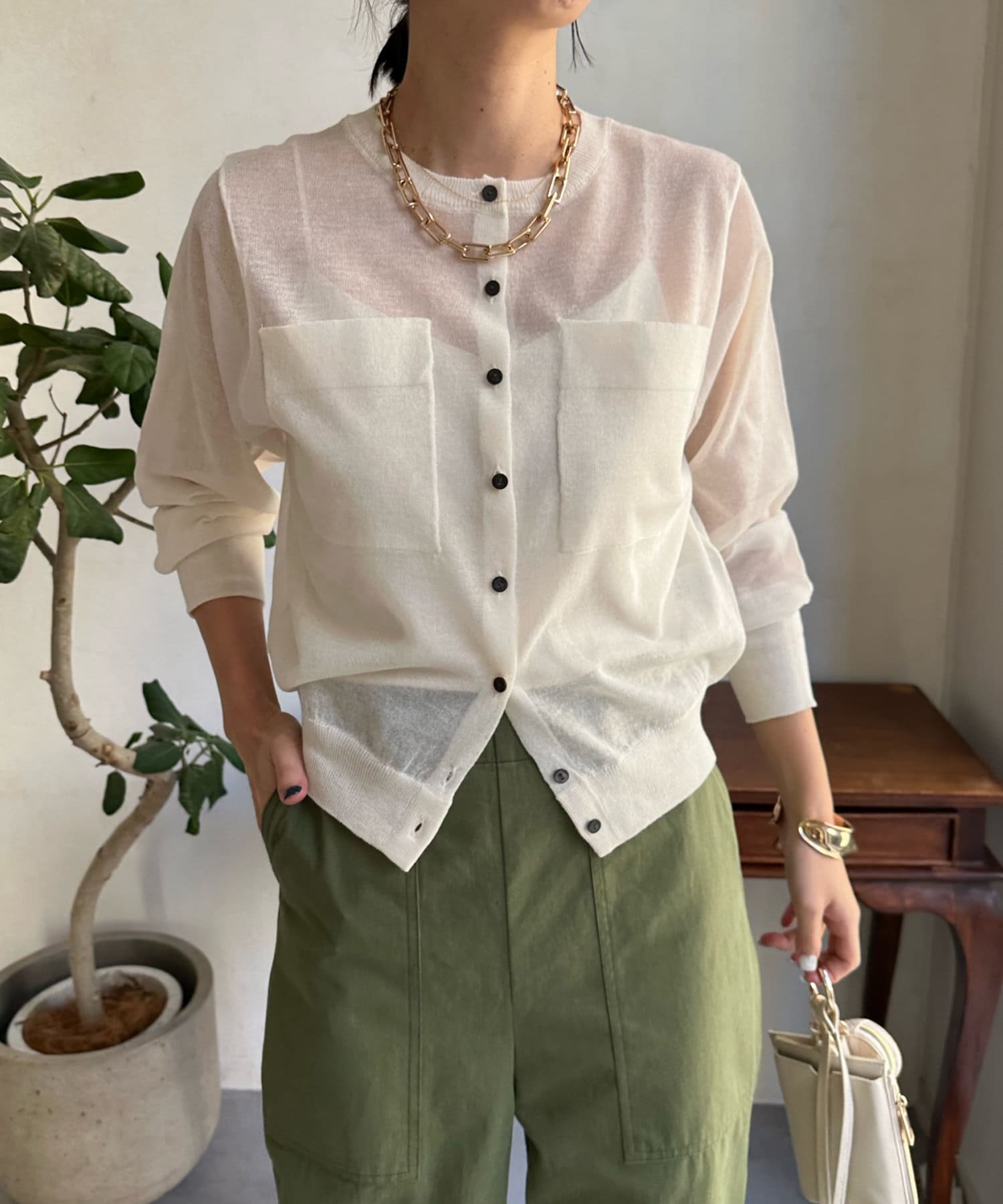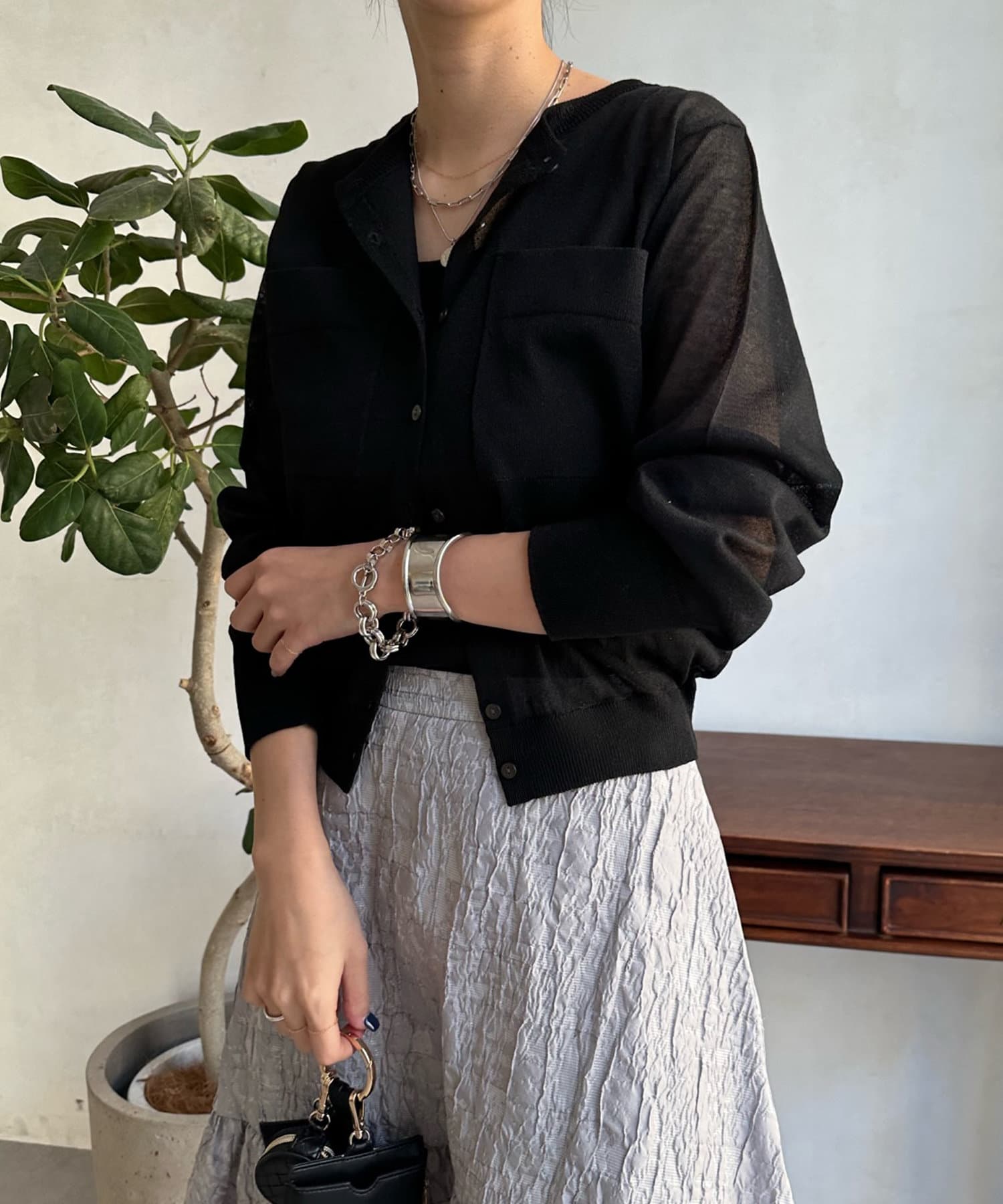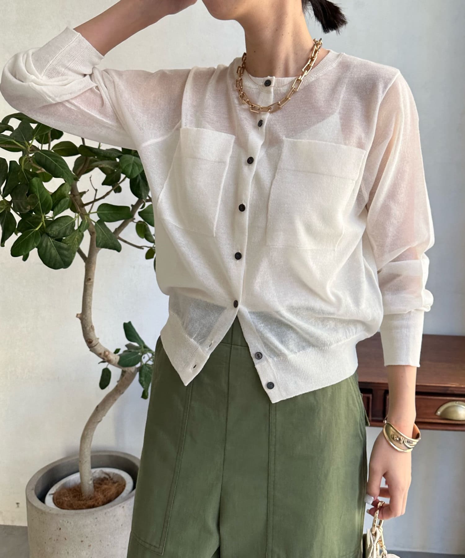 【一部WEB限定カラー】シアーコンパクトポケットカーディガン