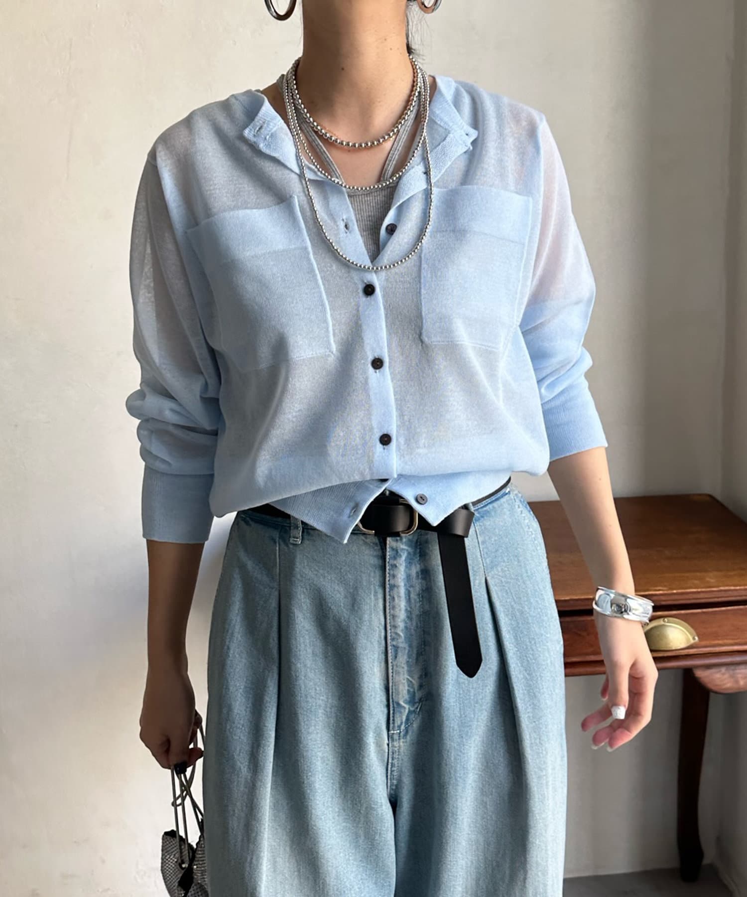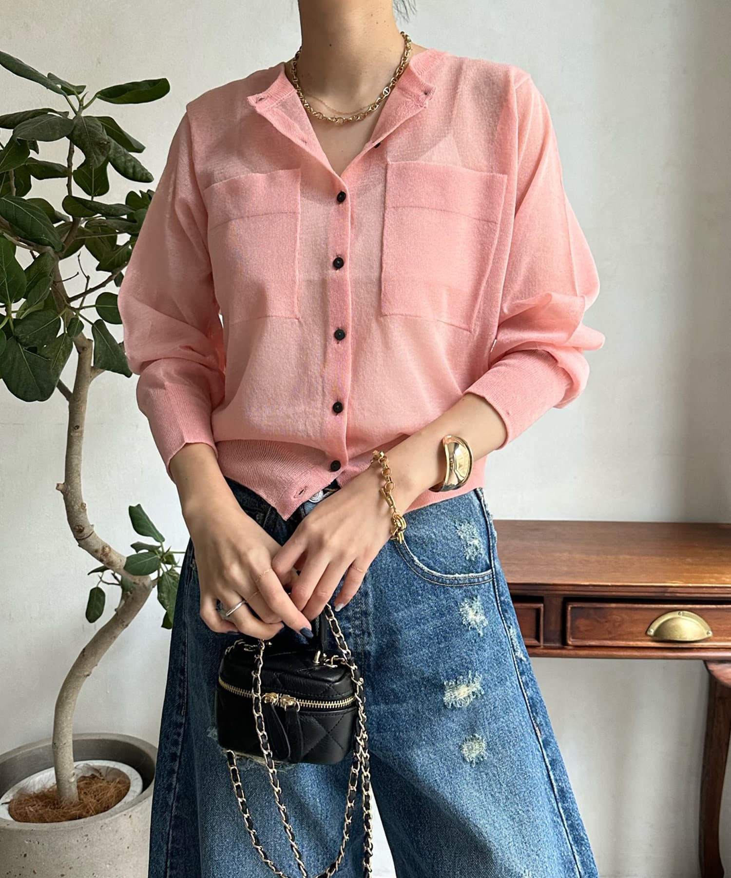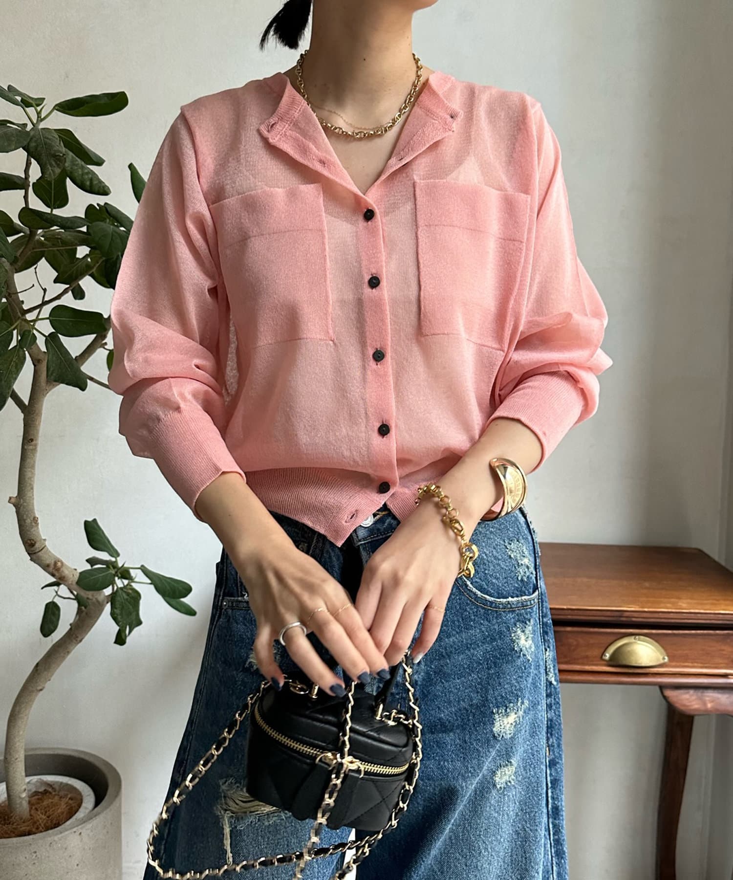 【一部WEB限定カラー】シアーコンパクトポケットカーディガン
