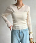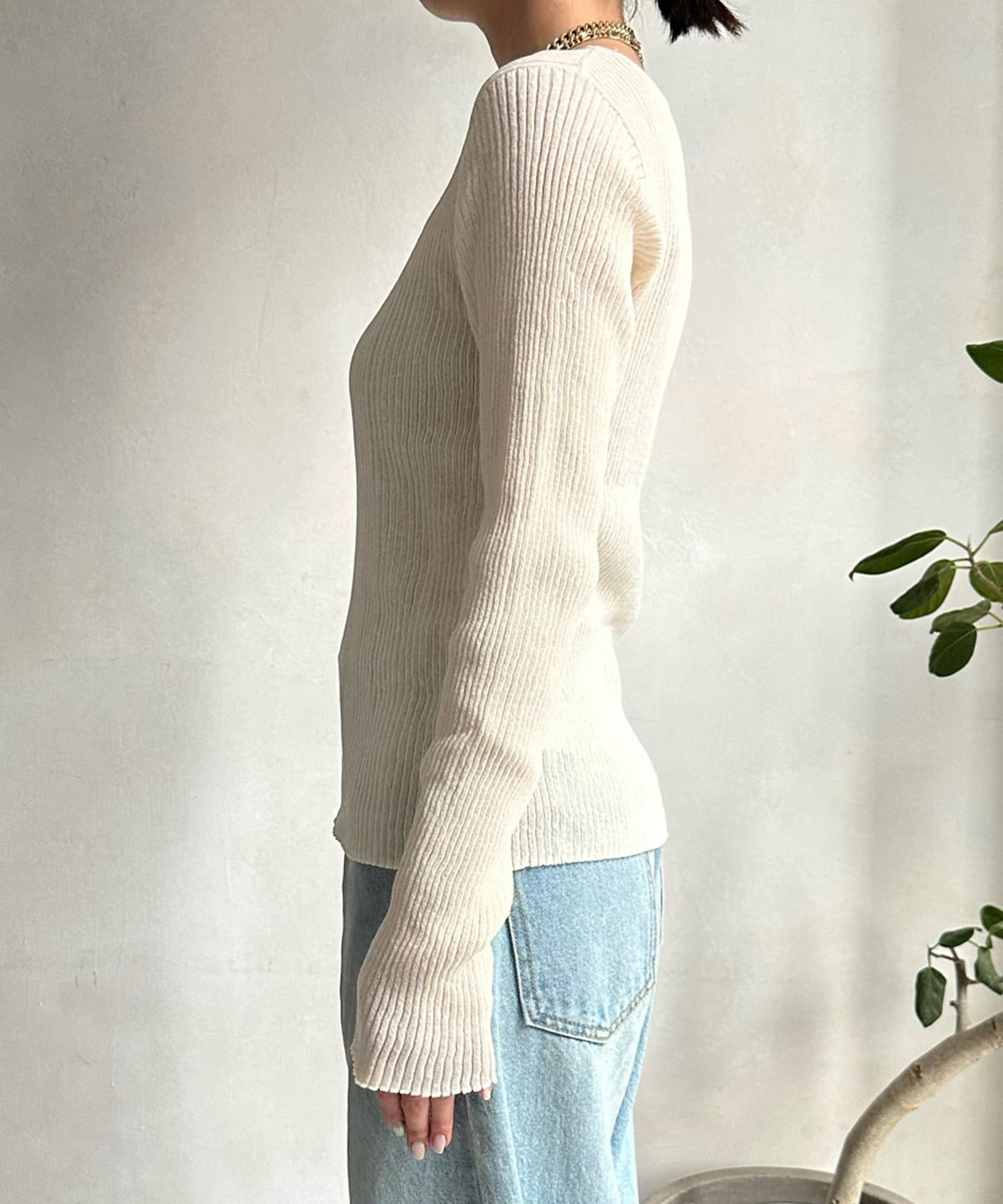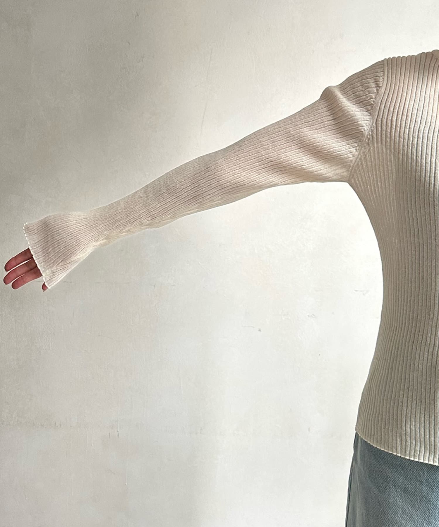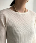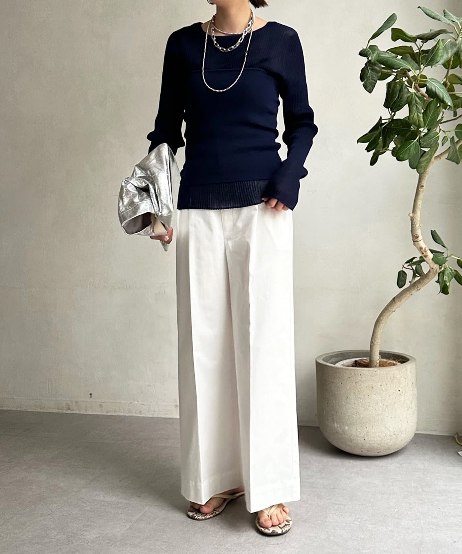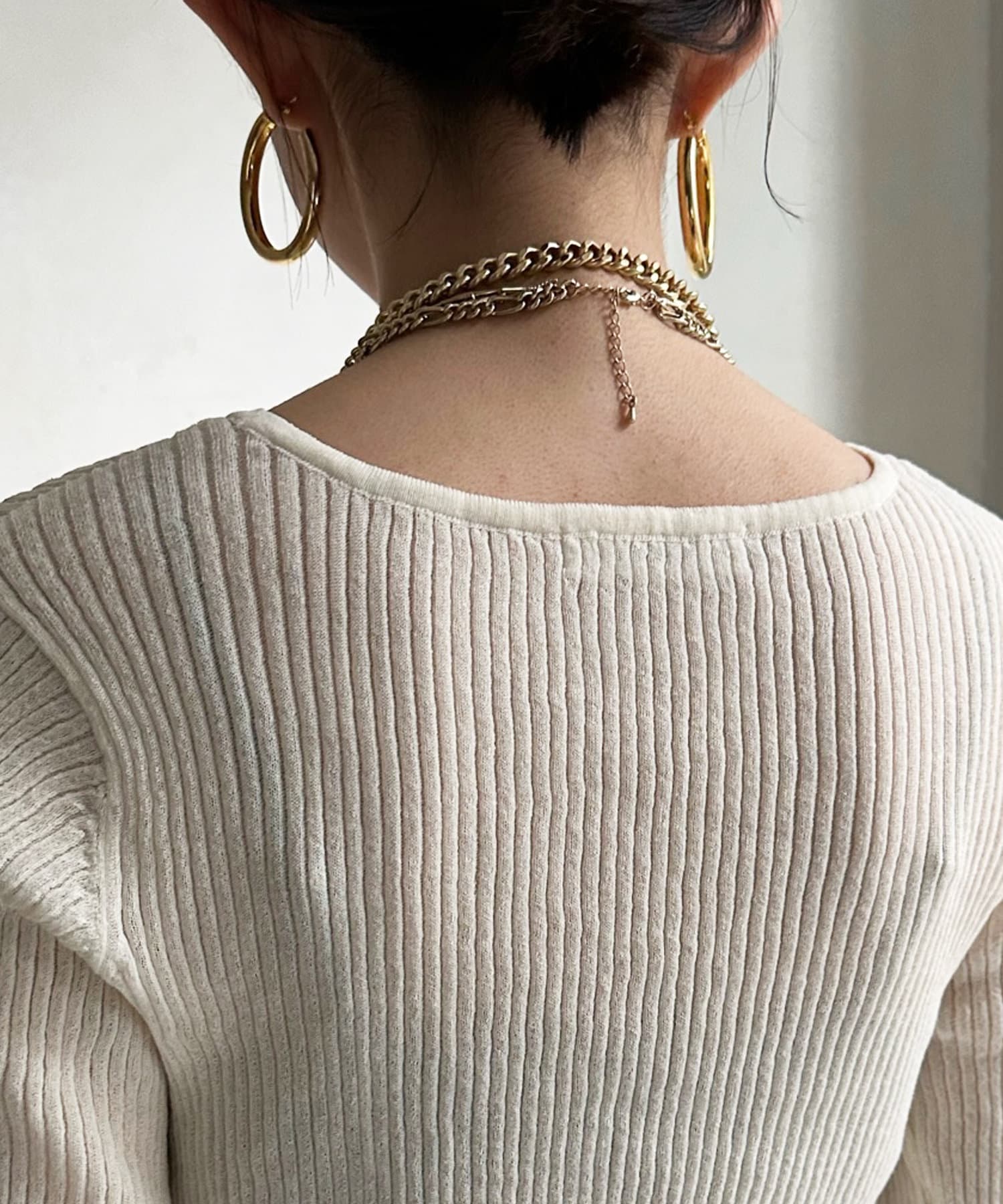 シアー感のあるリブニットプルオーバーとニットビスチェがセットになった1着。