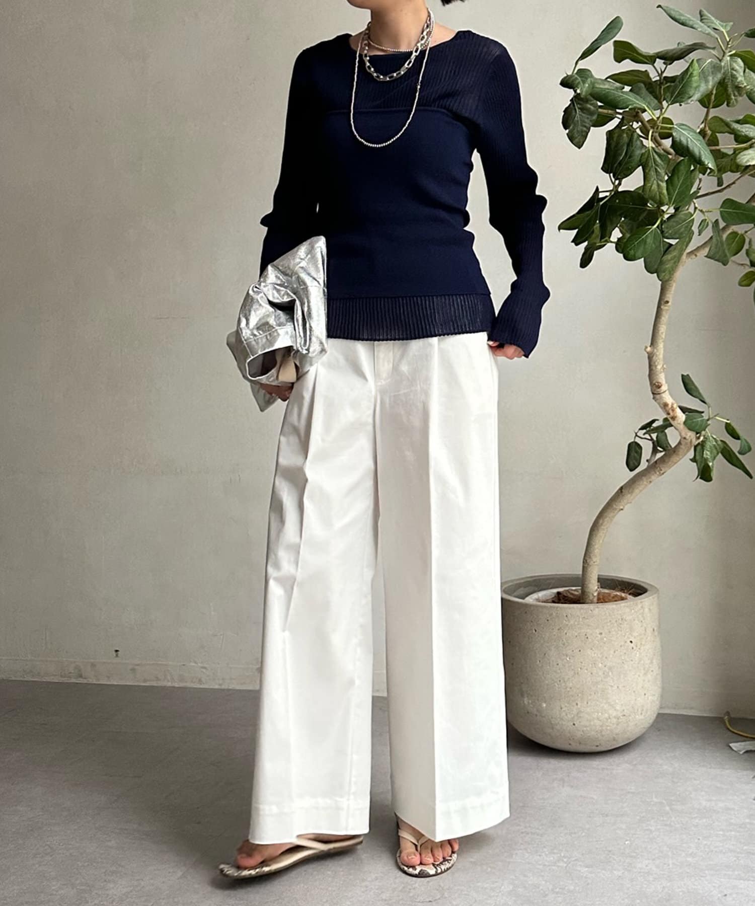 プルオーバーは薄手のニットなのでこれからの時期に大活躍。伸びのいい素材感でリラクシーに着ていただけます。