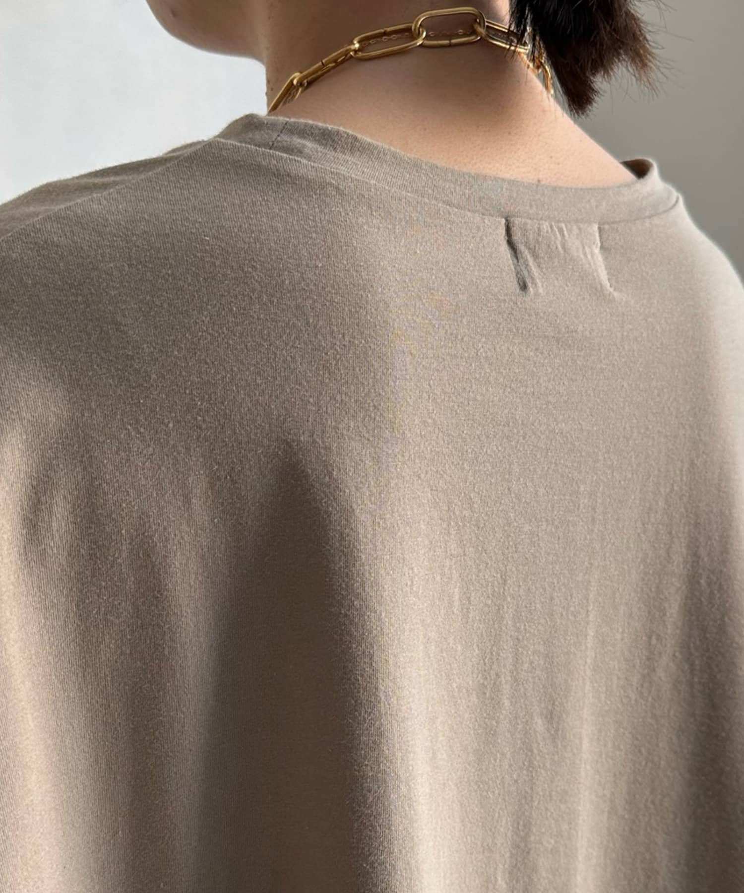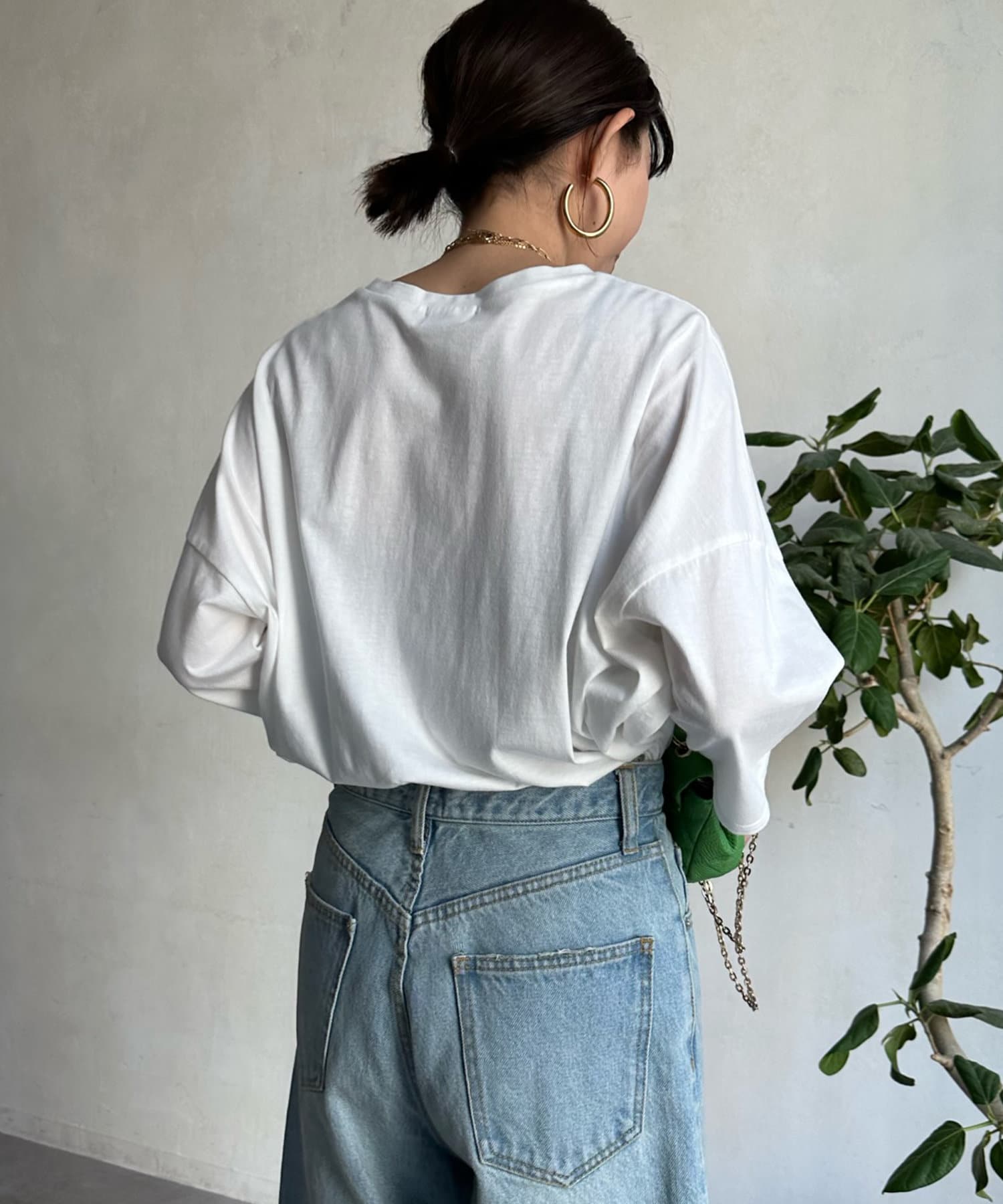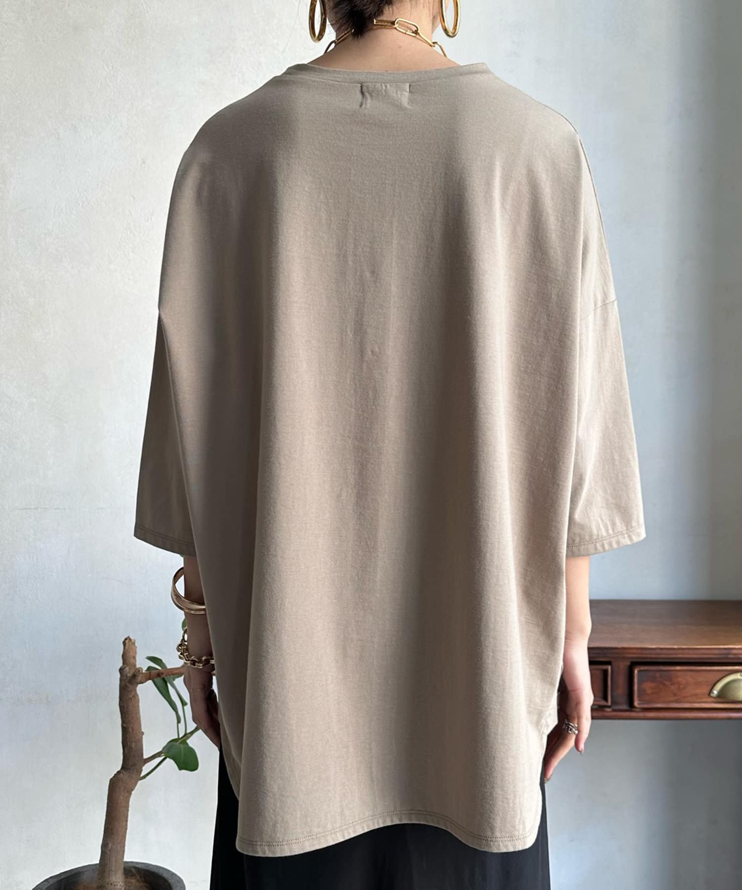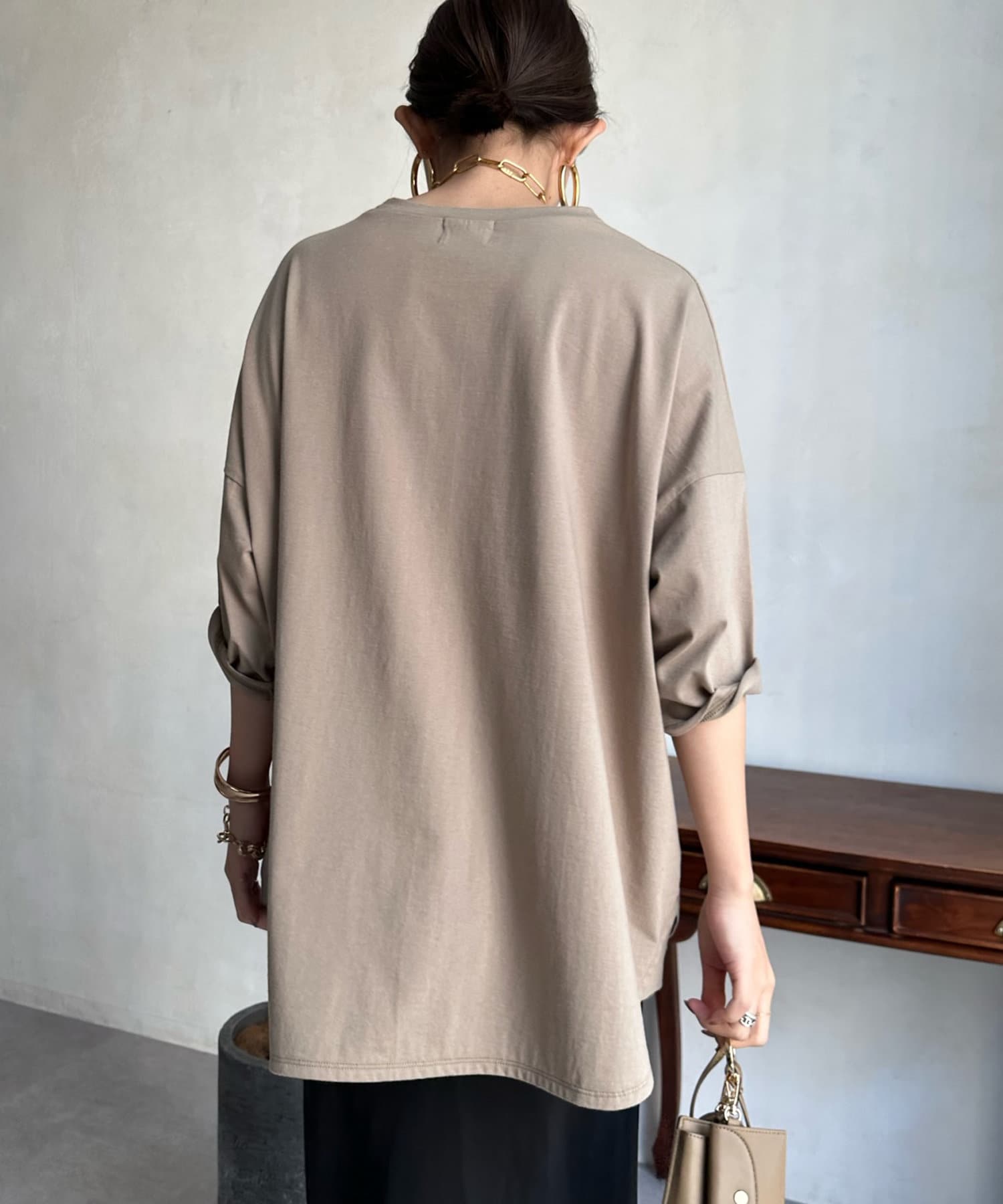 ゆるっと5分袖よりも少し長い袖丈に、身幅もゆとり感があり、リラクシーな着心地に。