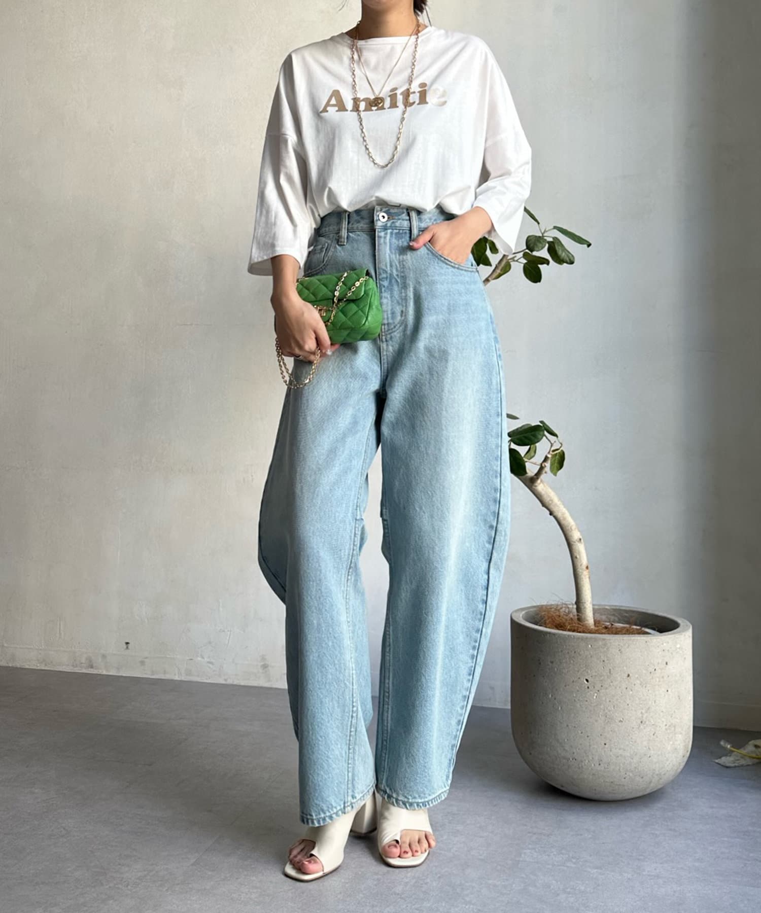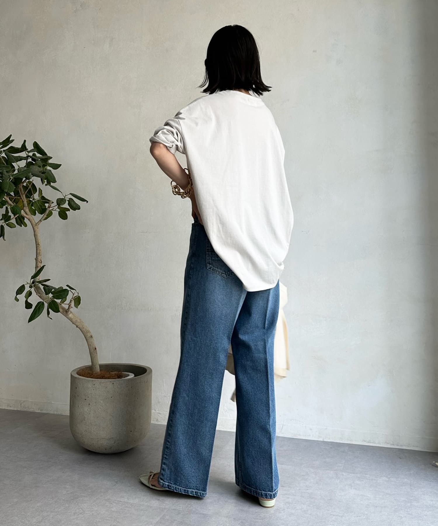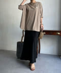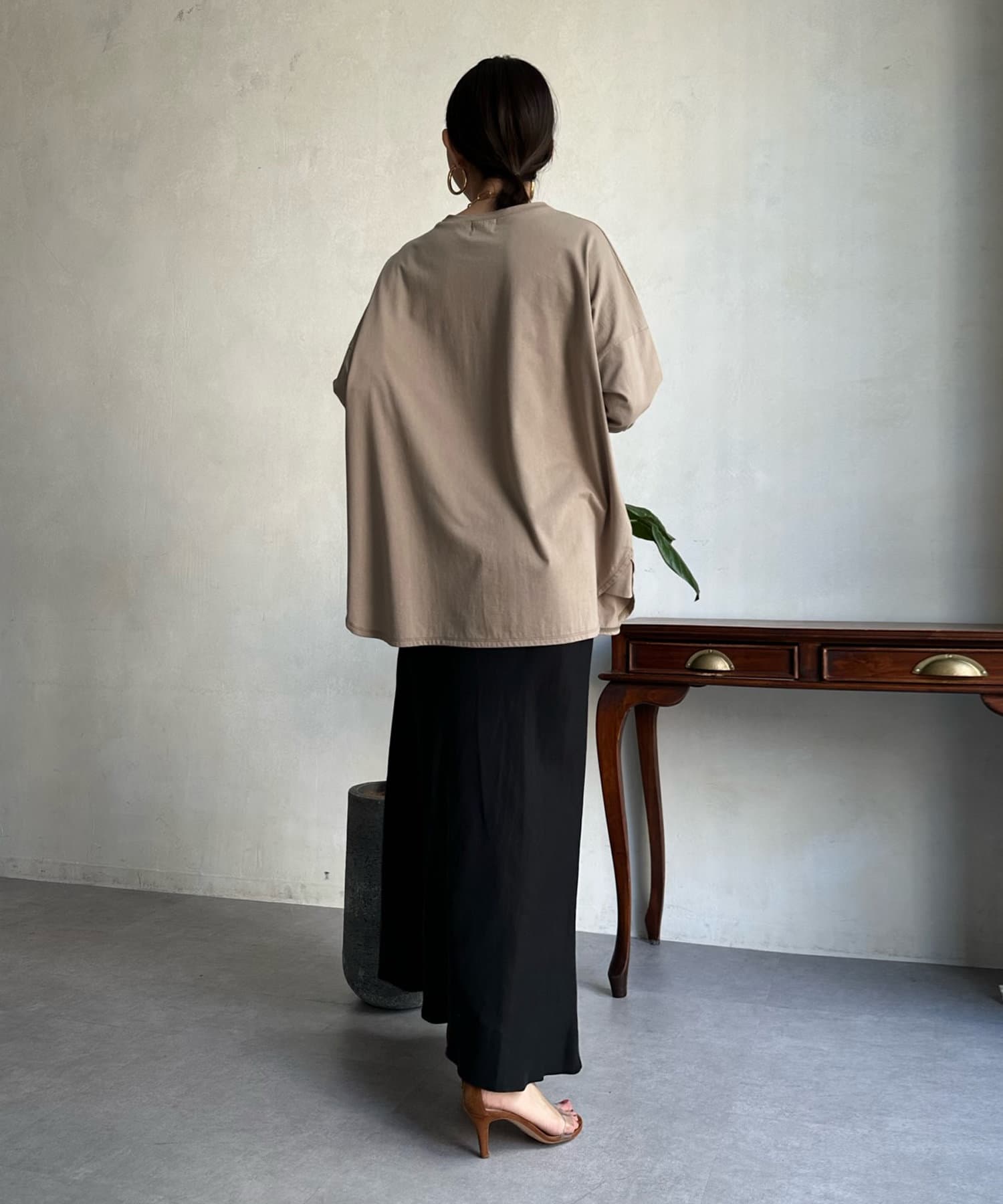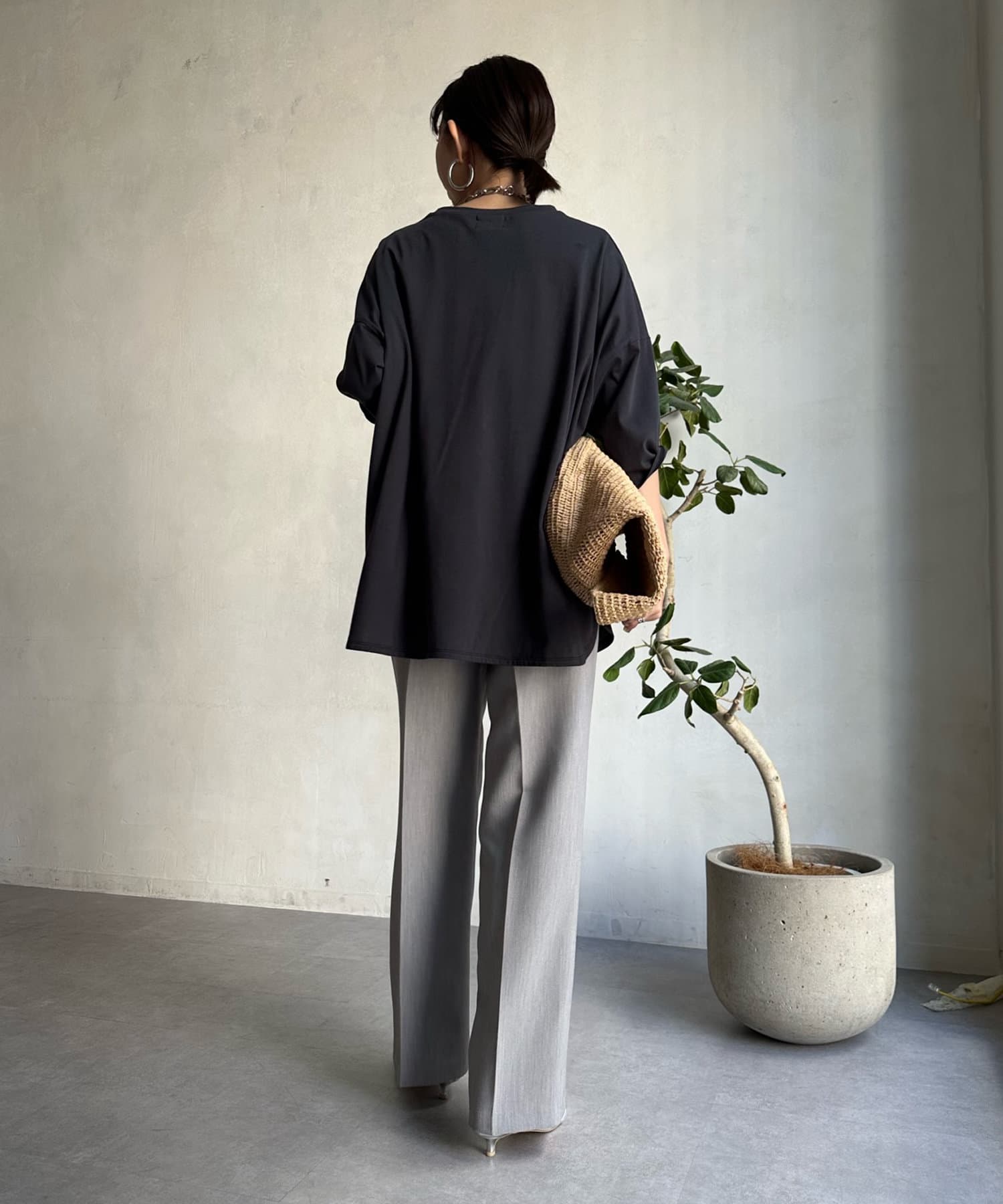 ゆるっと5分袖よりも少し長い袖丈に、身幅もゆとり感があり、リラクシーな着心地に。