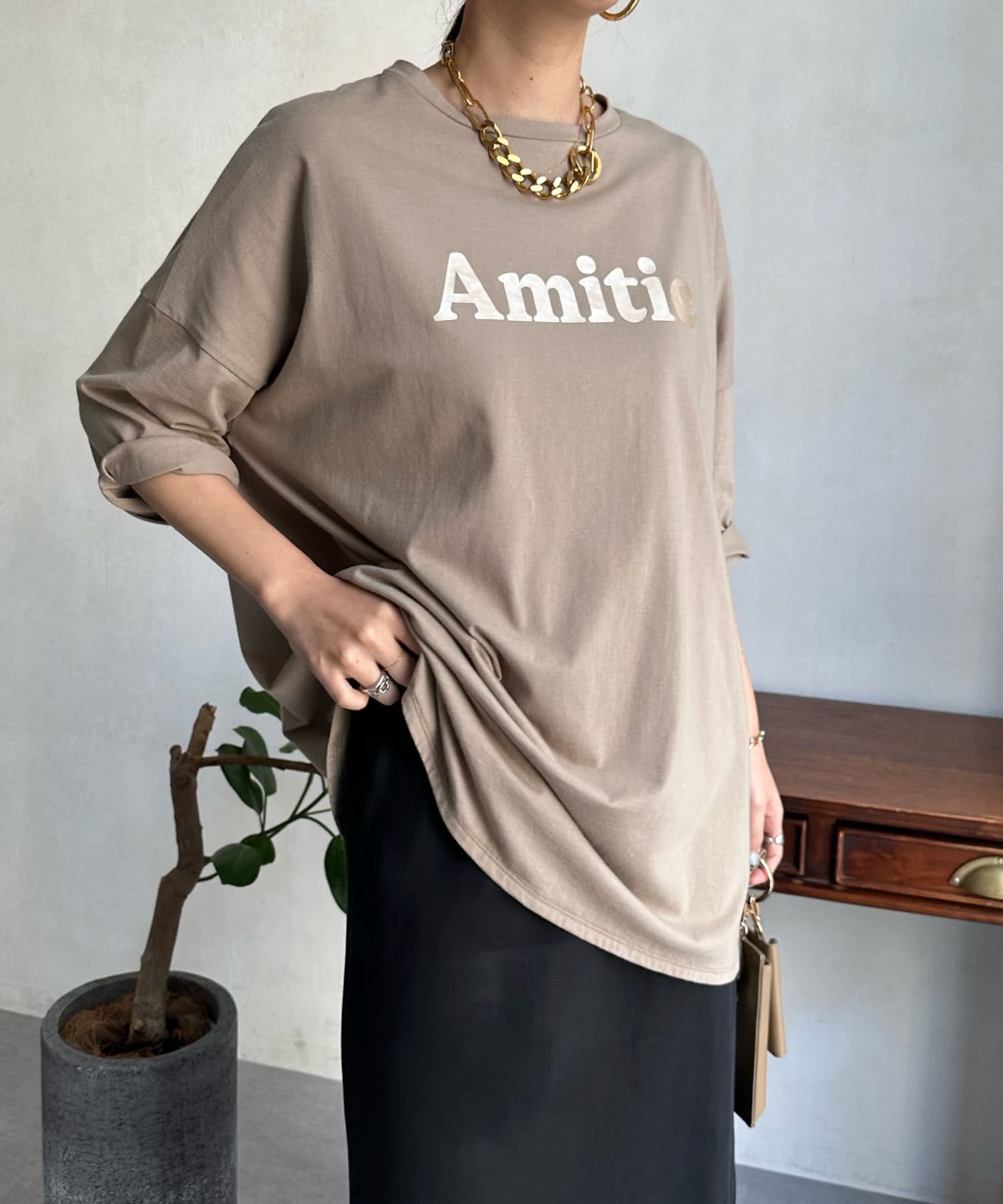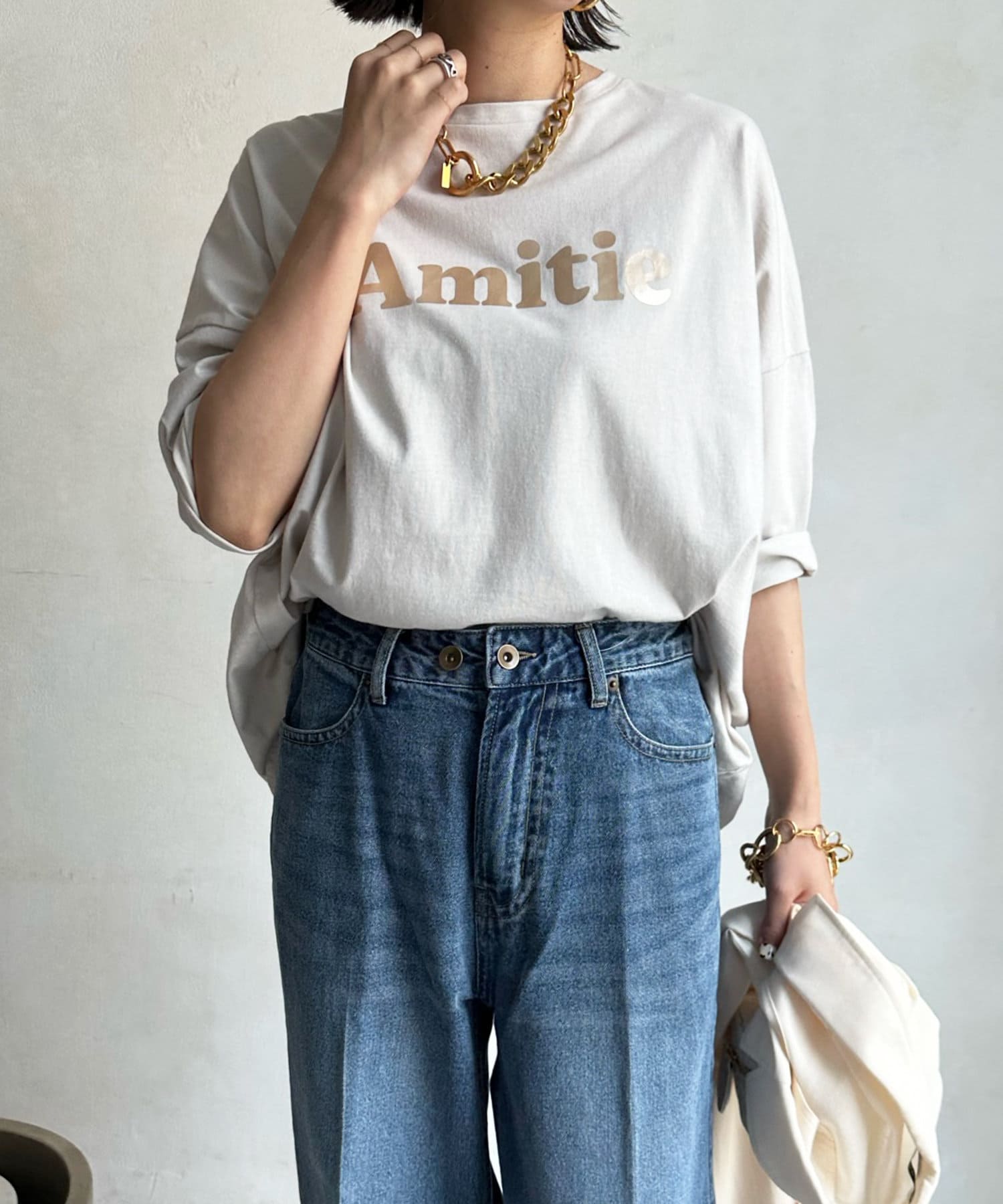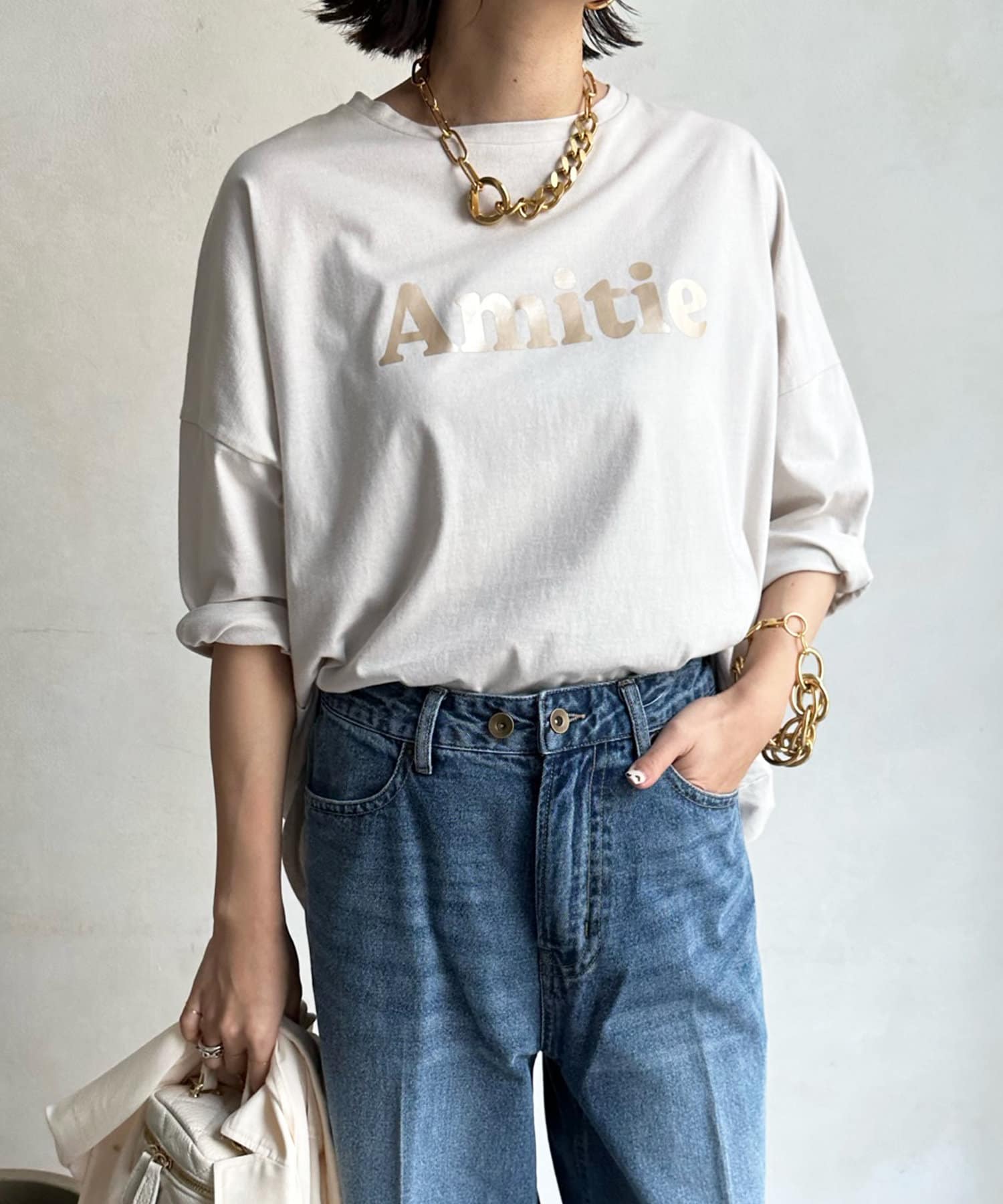 TOP > DOUDOU > レディース > トップス > Tシャツ/カットソー > 【新色追加】Amitie フォイルプリントTEE